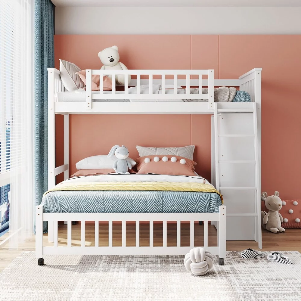 Nestfair Stairway Twin Over Full Bunk Bed with Twin size Trundle Grey