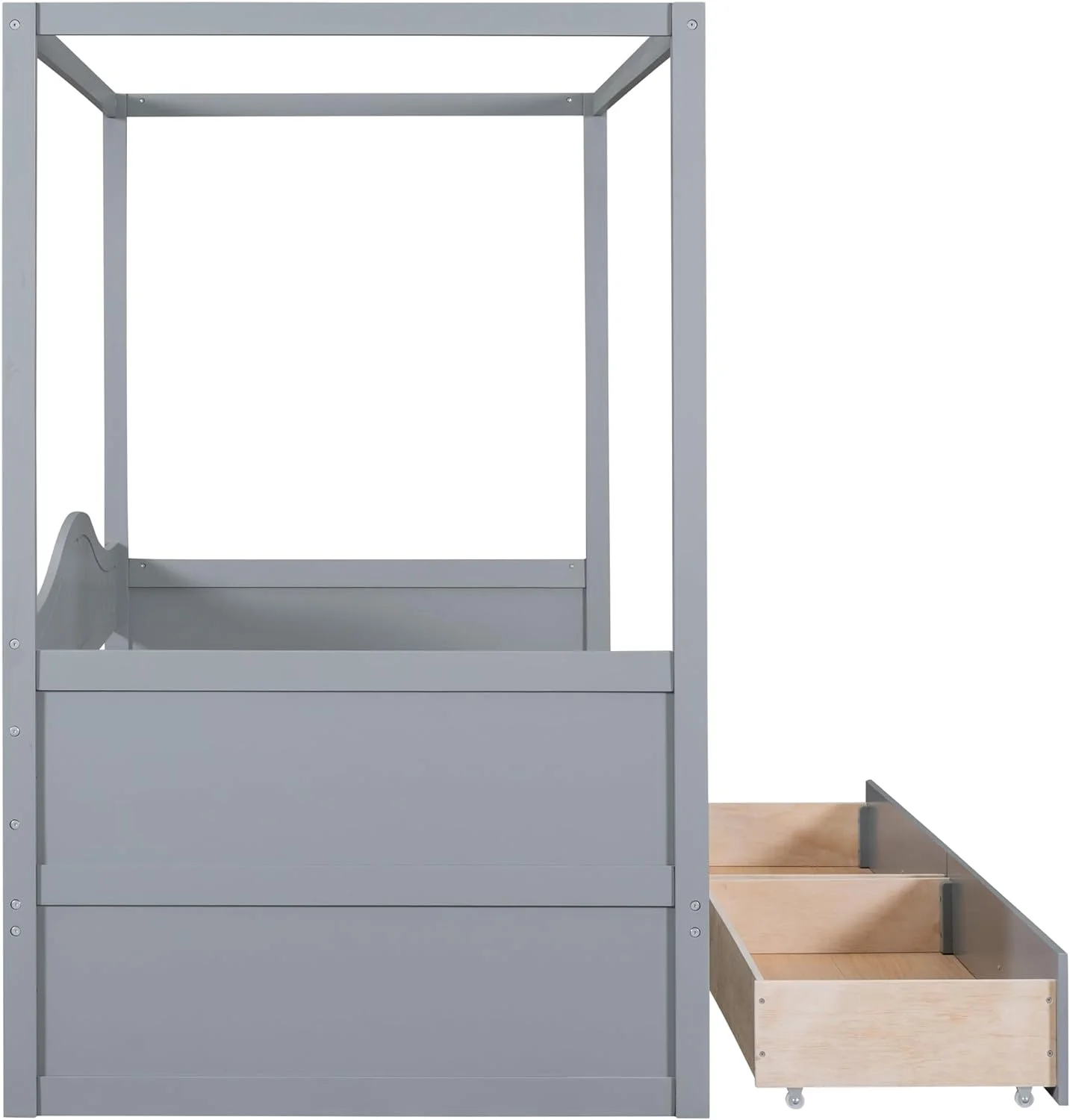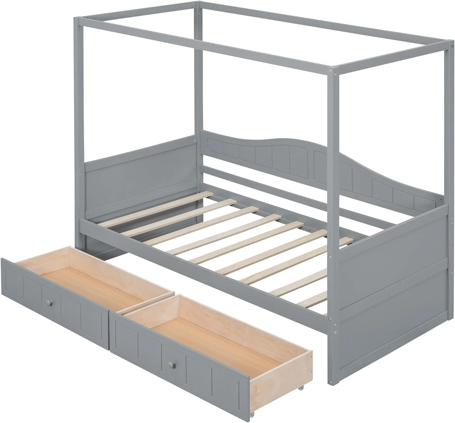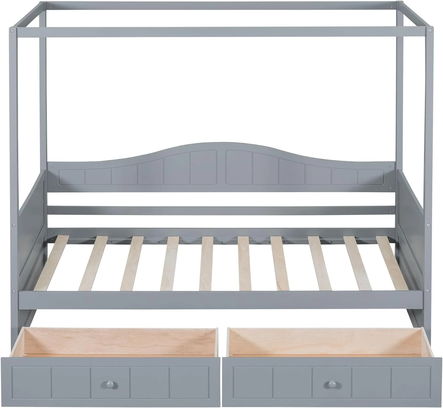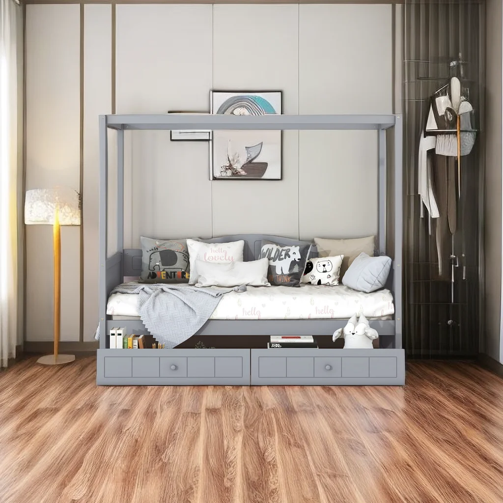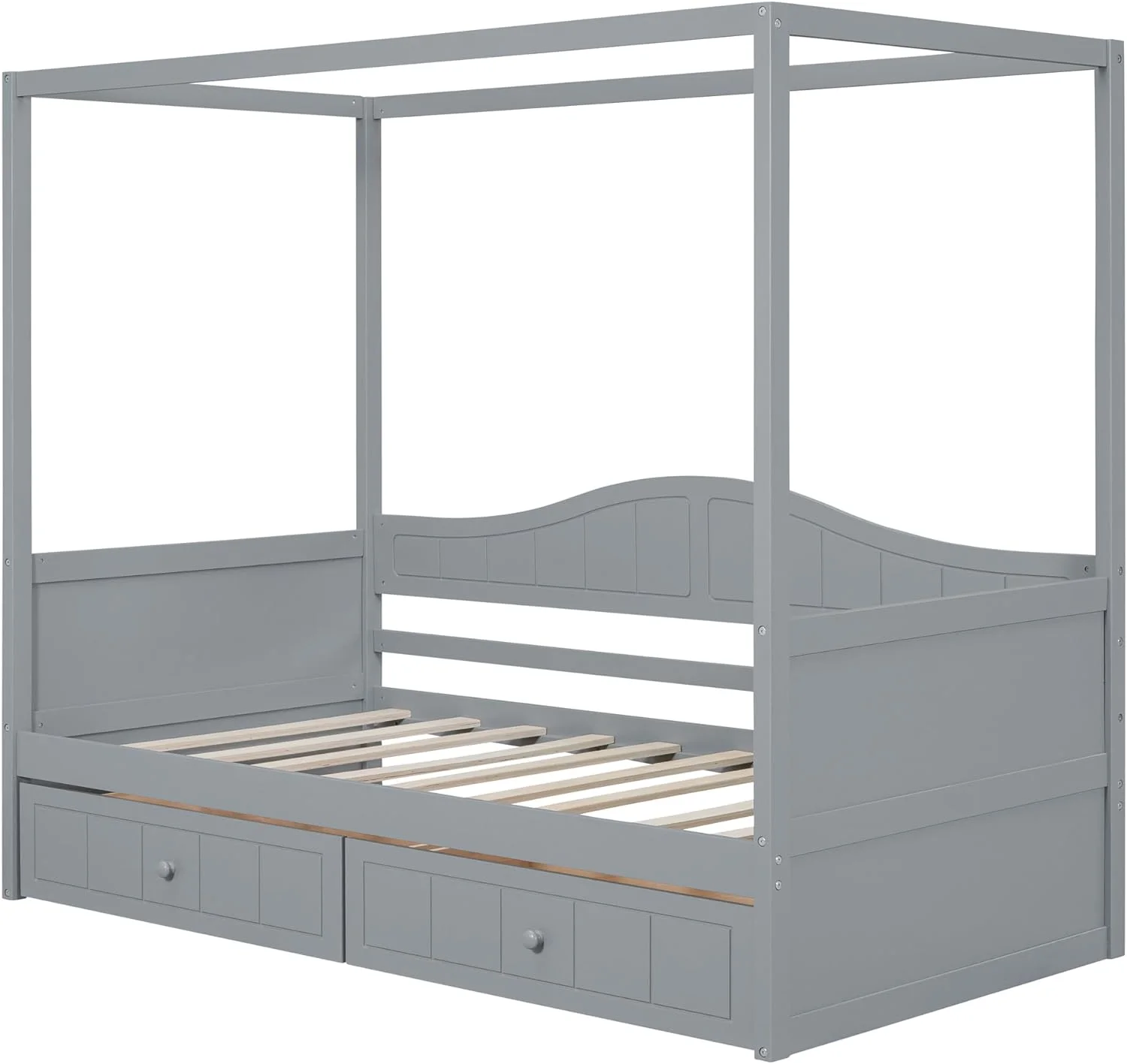 Size Daybed, Wood Daybed With Drawers, Shelves And Built-In Charging Station, Gray