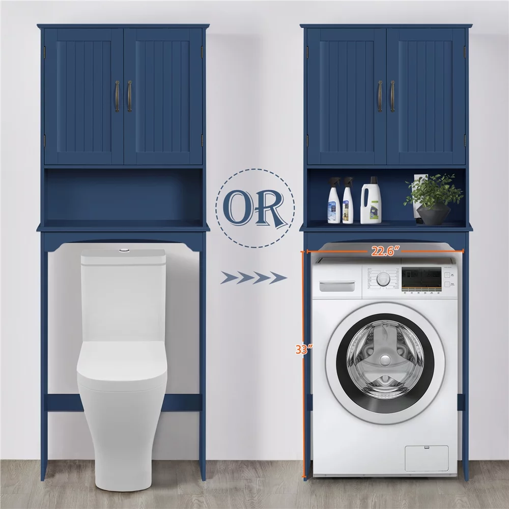 SMILE MART Wooden Over-the-Toilet Bathroom Storage Cabinet for Bathroom, Navy Blue