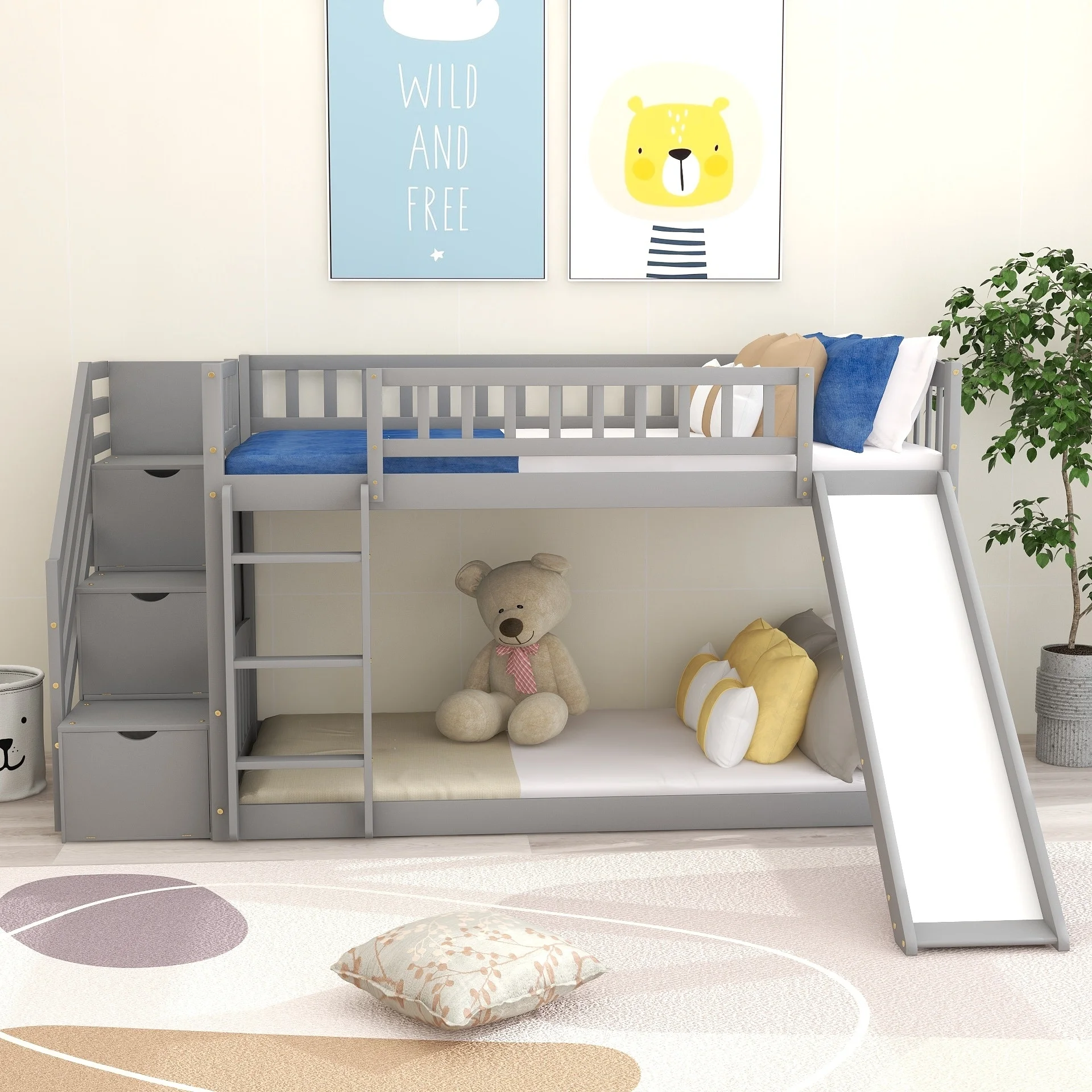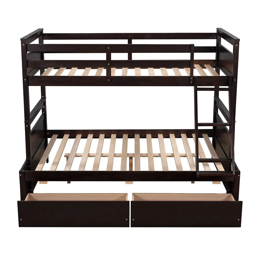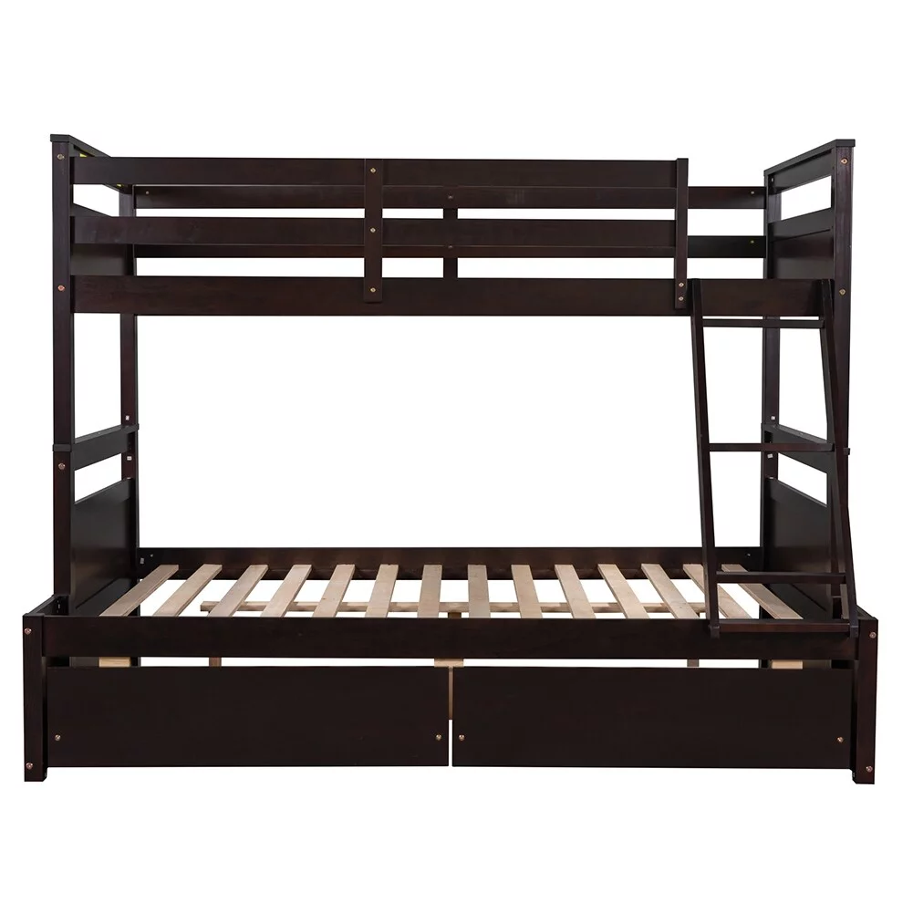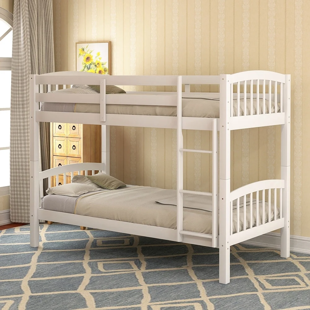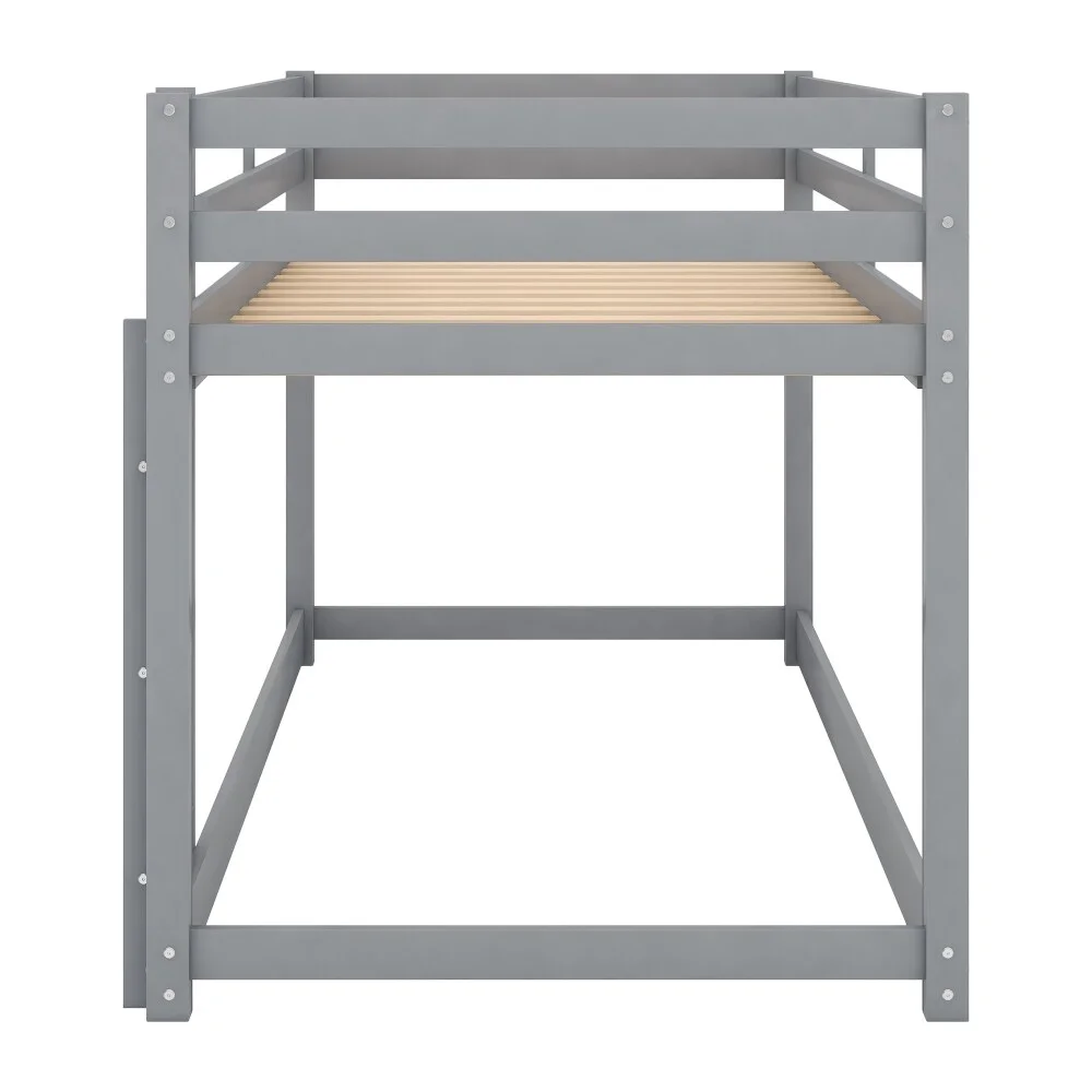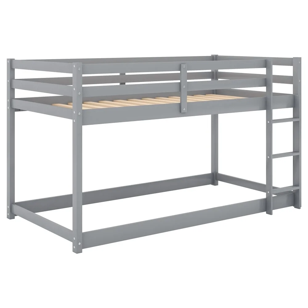 Nestfair Twin Over Full Bunk Bed with Ladder and Safety Guardrail Grey