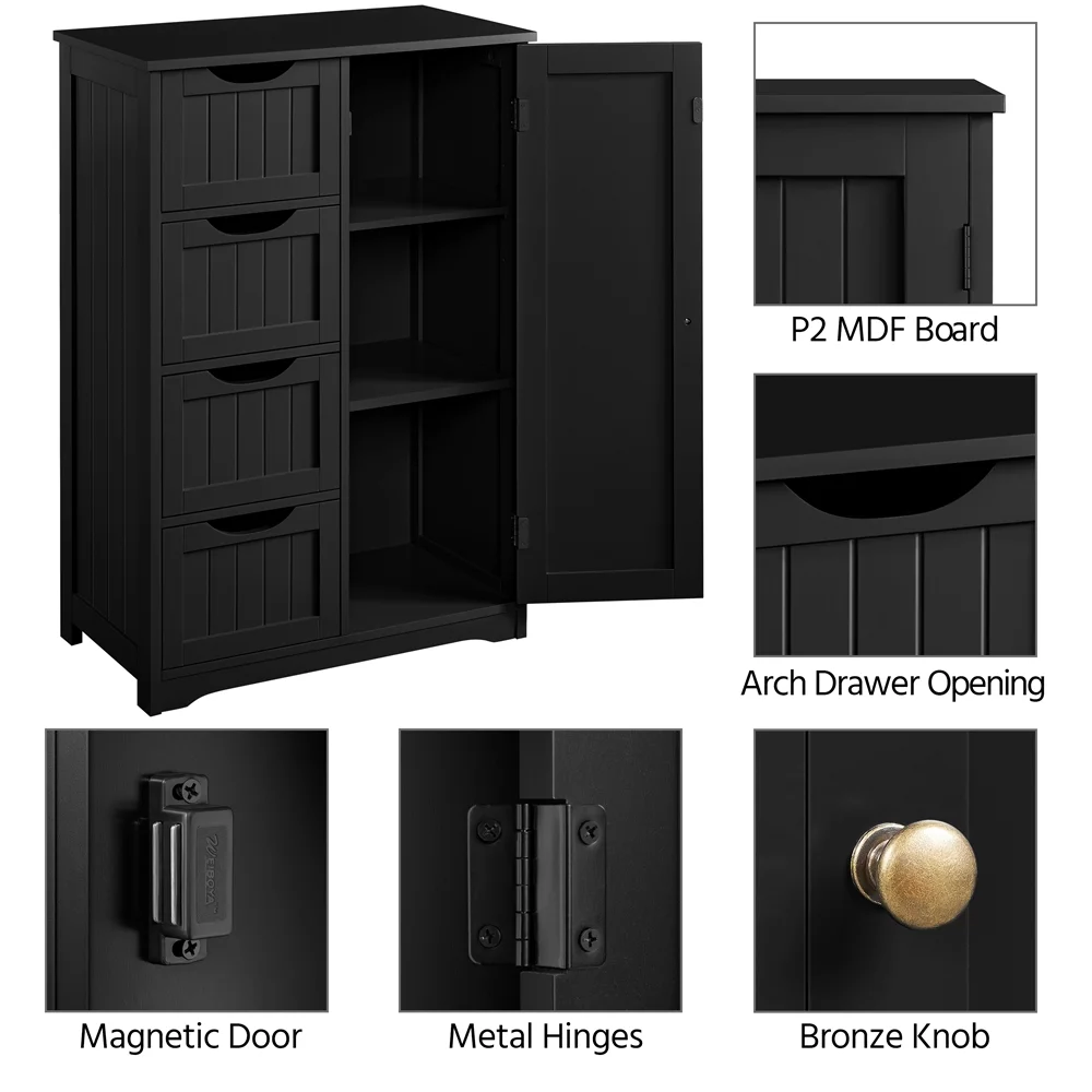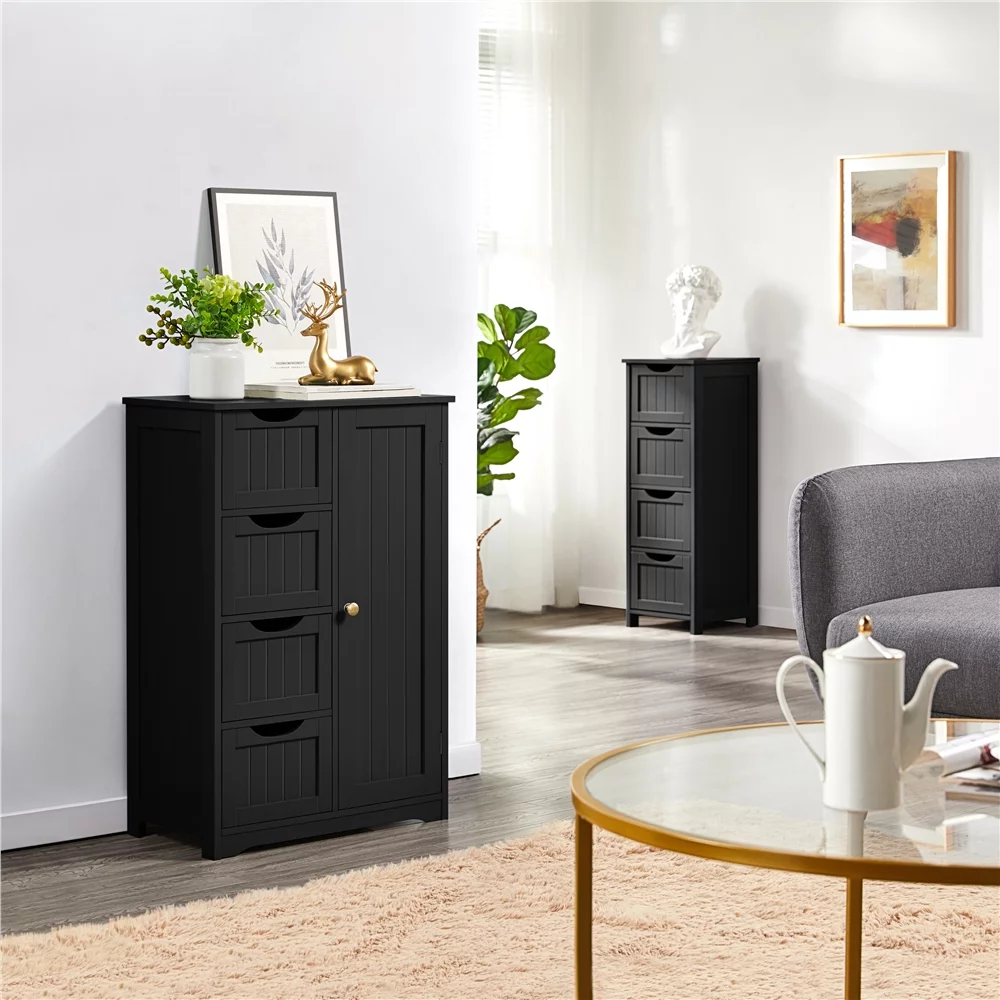 Topeakmart Wooden Cabinet 4 Drawers & Cupboard Storage Unit Hallway/Floor Cabinet, Black