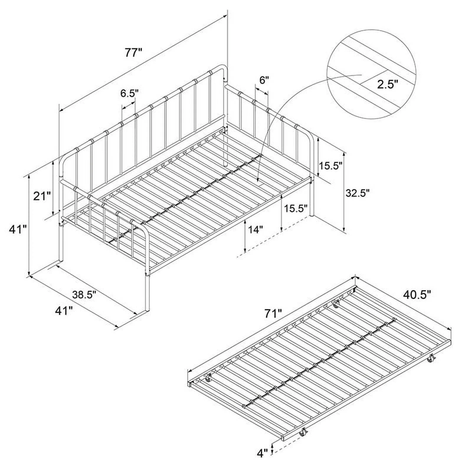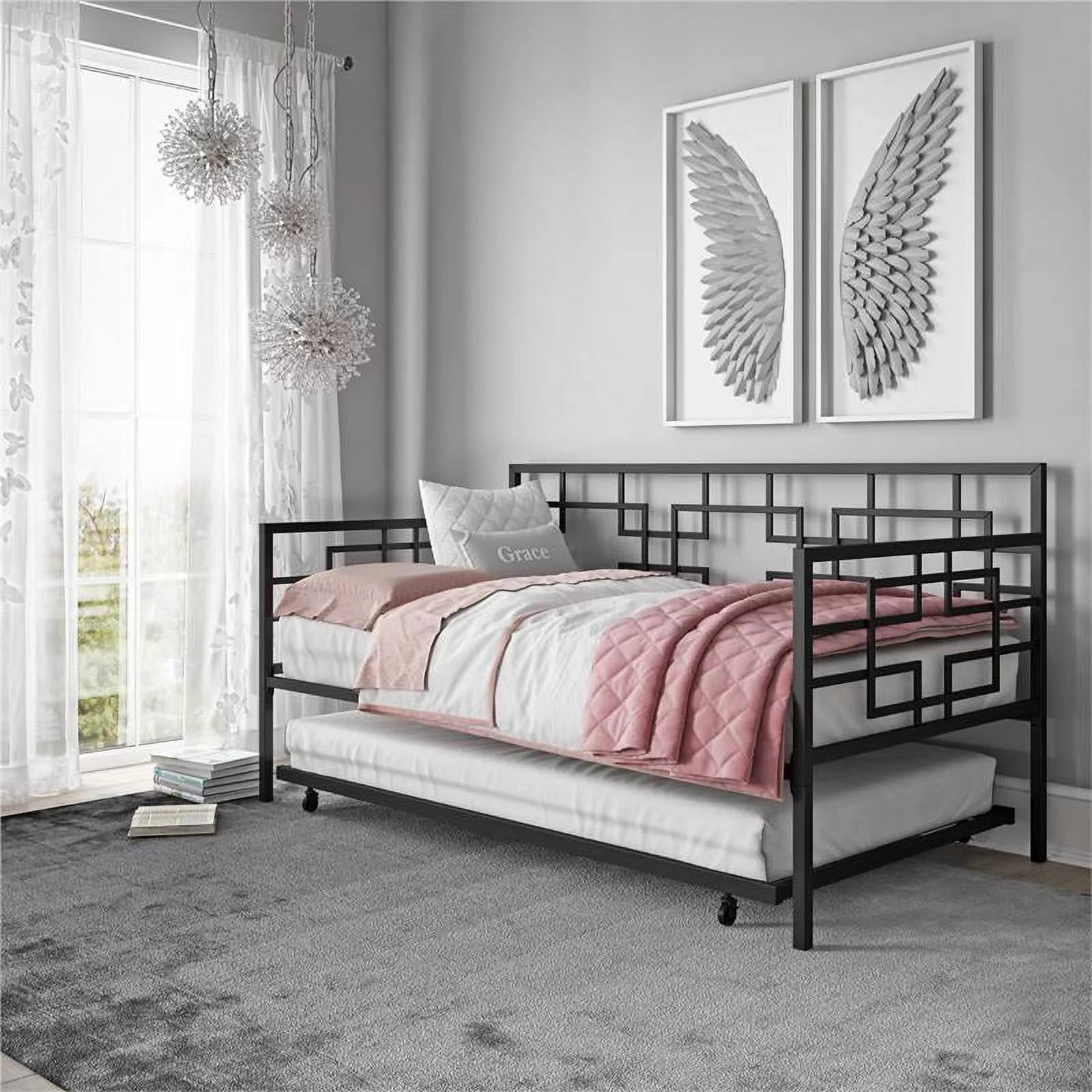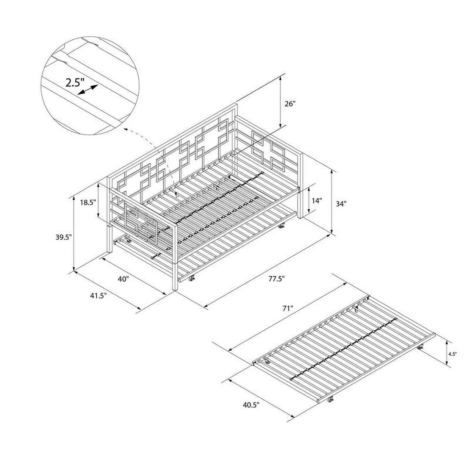 Hillsdale Furniture Midland Metal Backless Sleigh Twin Daybed, Black Sparkle