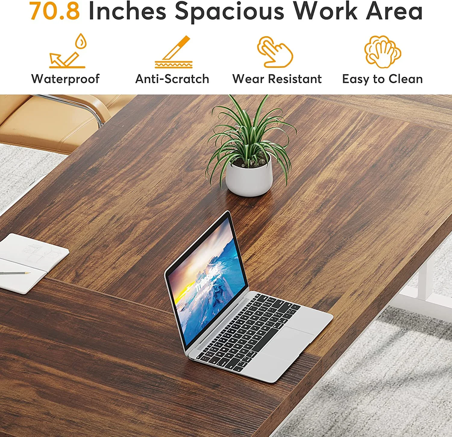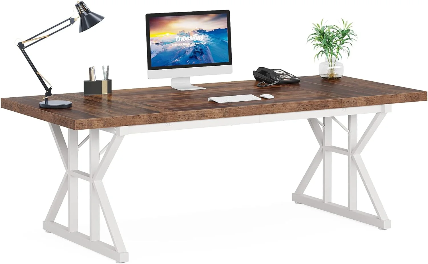 Tribesigns 71" Executive Desk, Large Computer Desk Study Writing Table for Home Office (Brown/White)