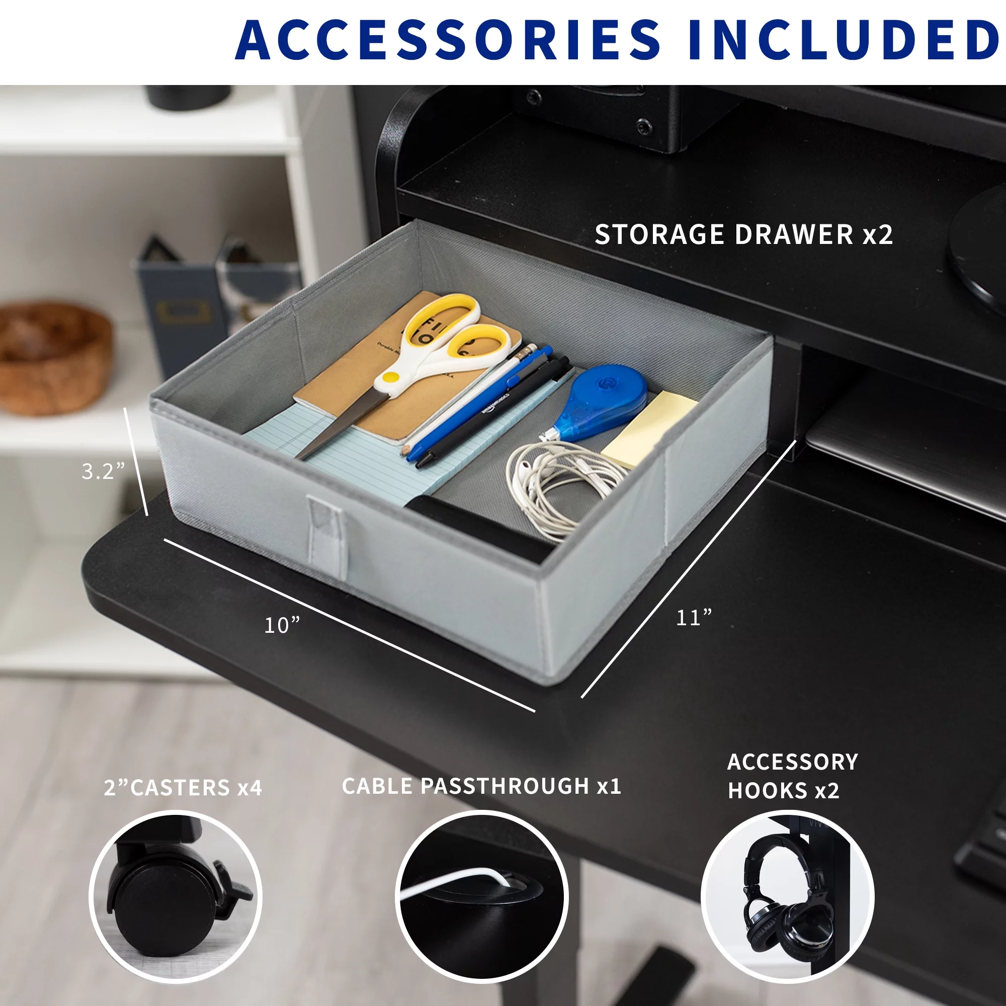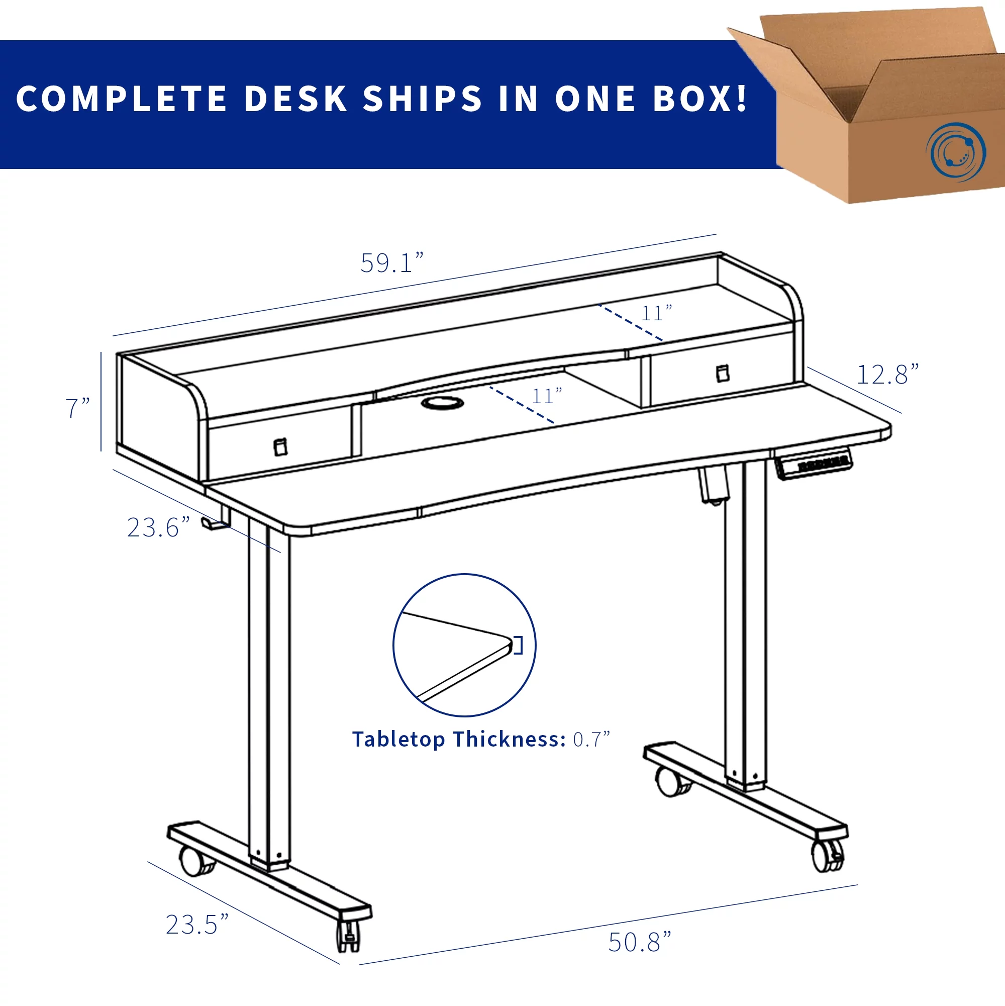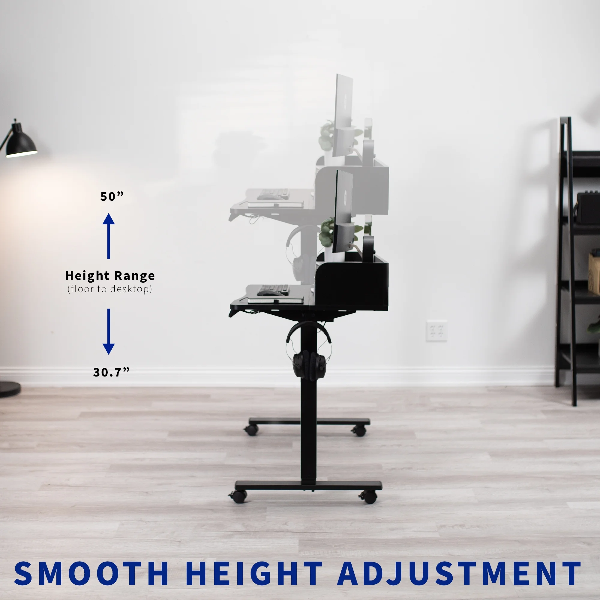 VIVO Black 2 Tier Electric 60" x 24" Height Adjustable Mobile Sit Stand Desk