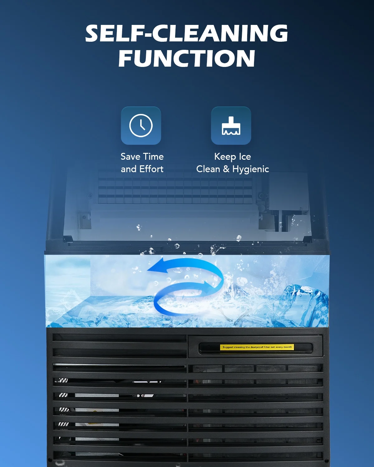WILPREP Commercial Ice Maker 175lb Daily Production with 90pc Yield 78lb Storage