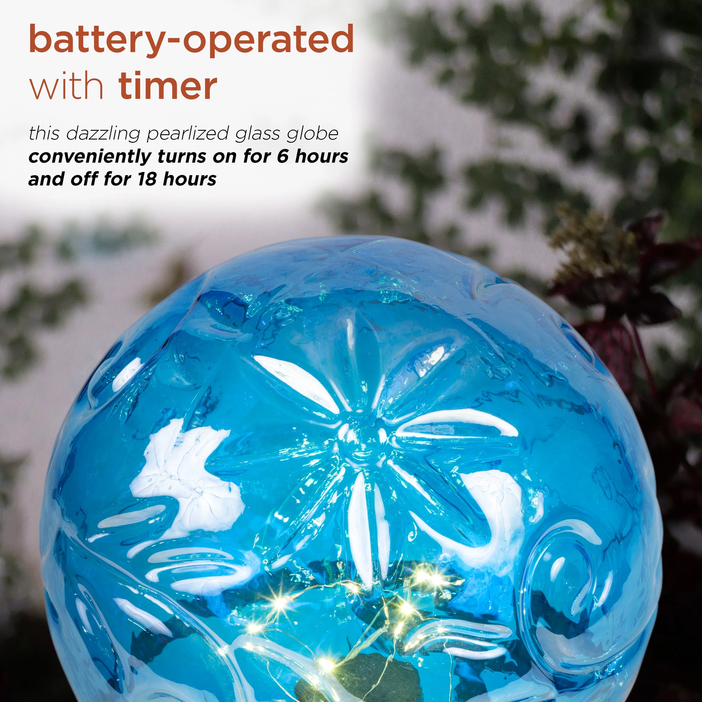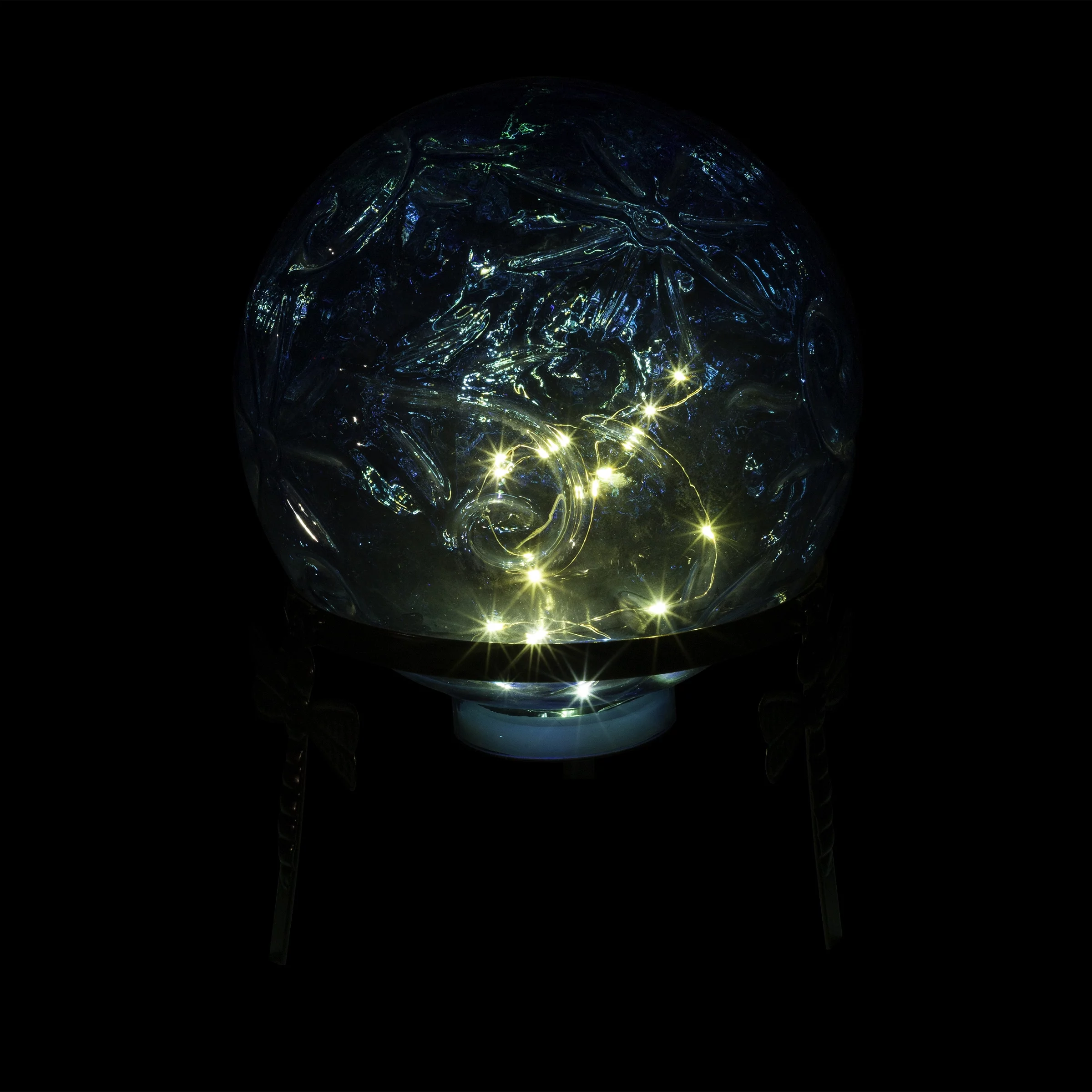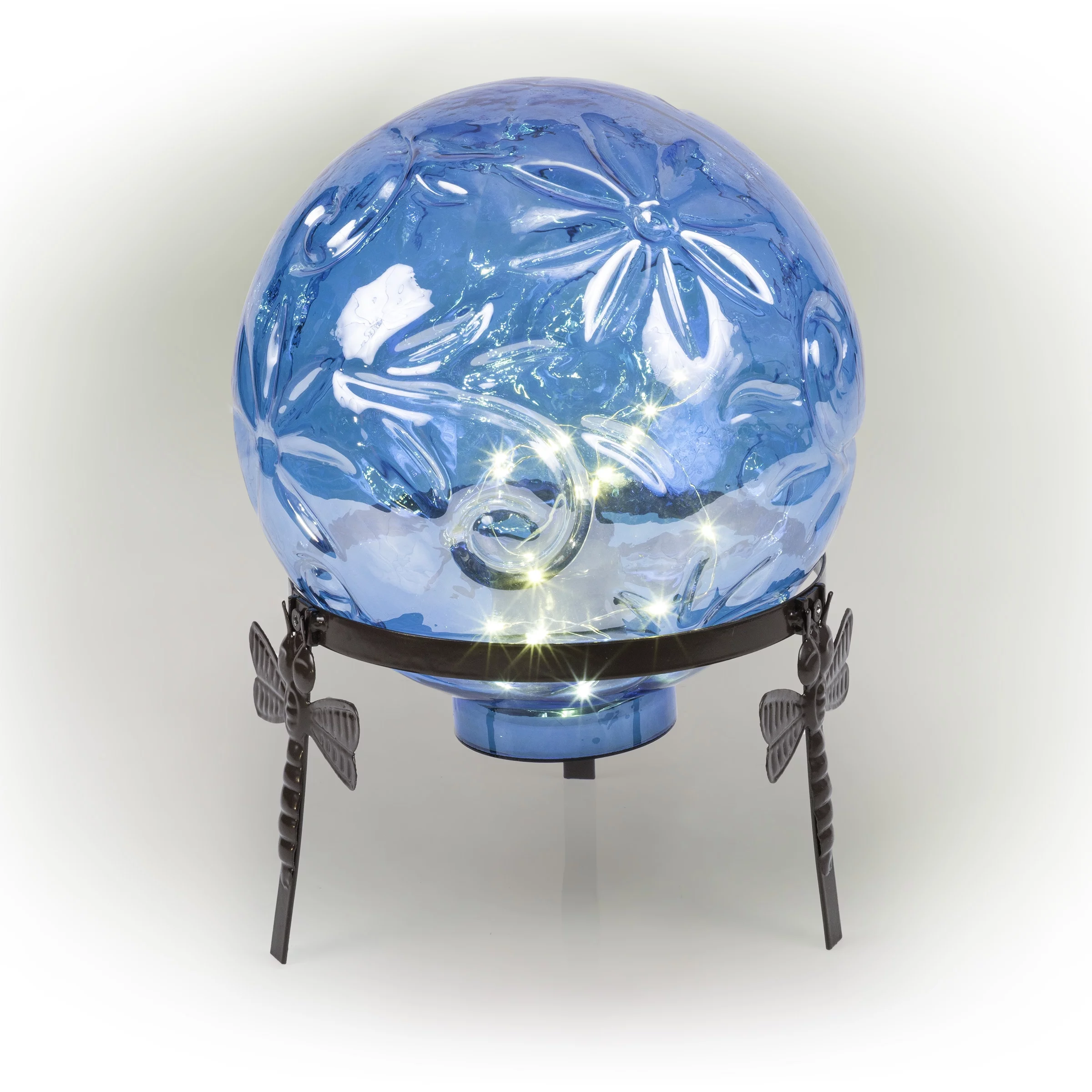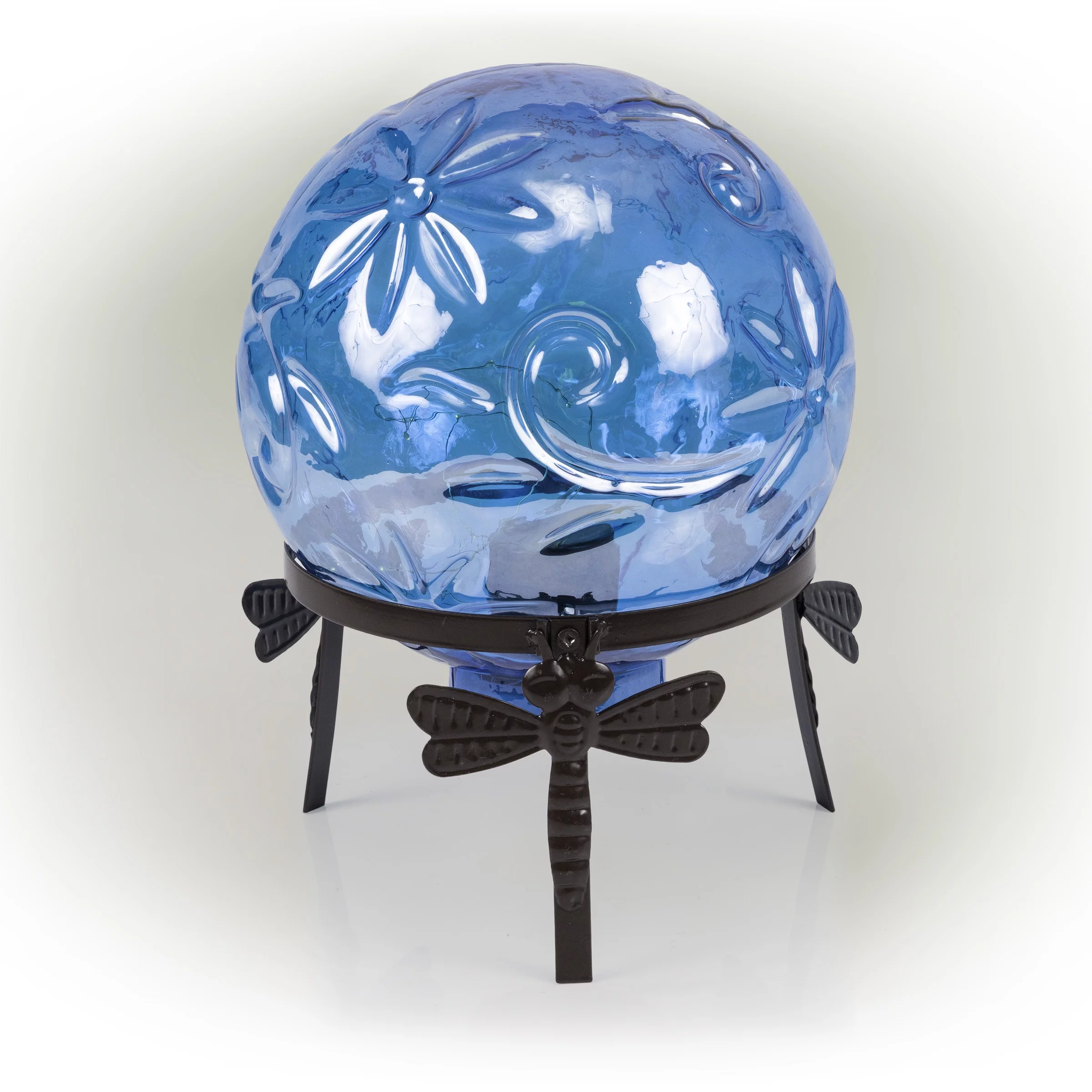 Alpine Corporation 10" W x 10" L x 13" H Embossed Glass Light-up Gazing Globe, Blue