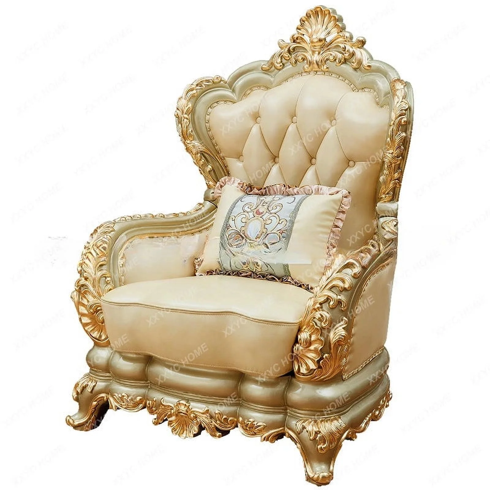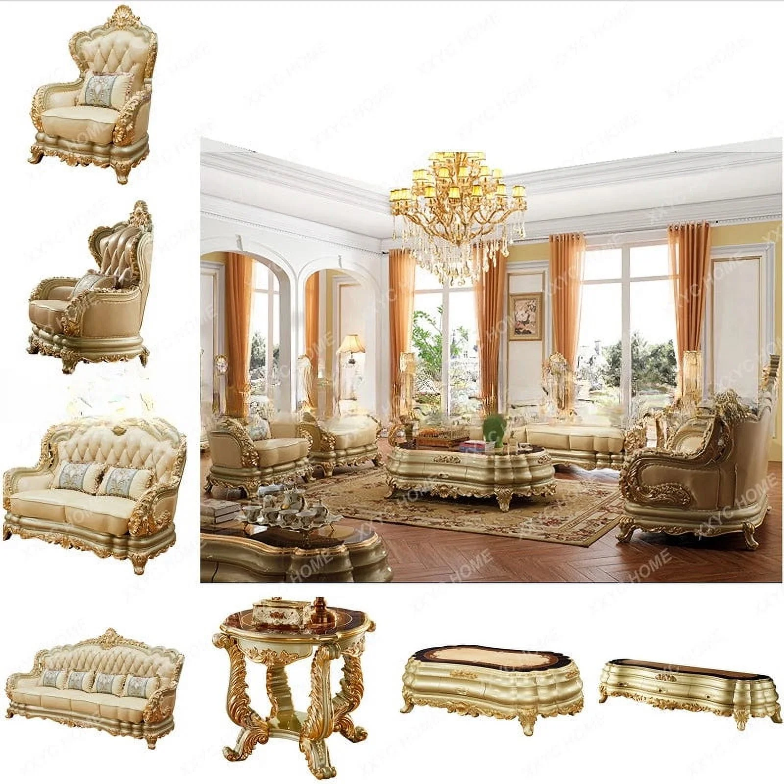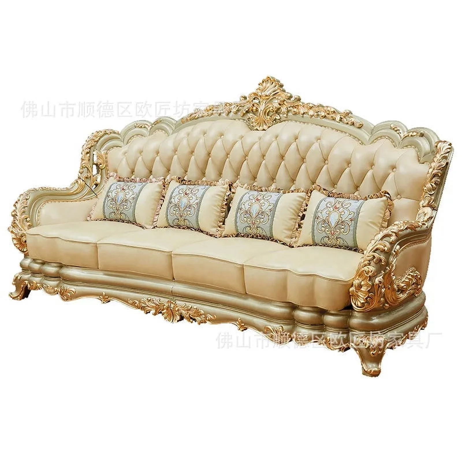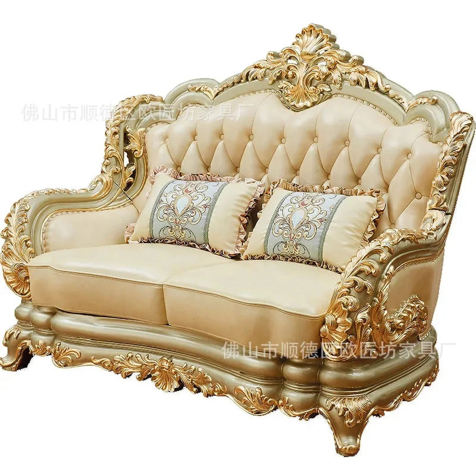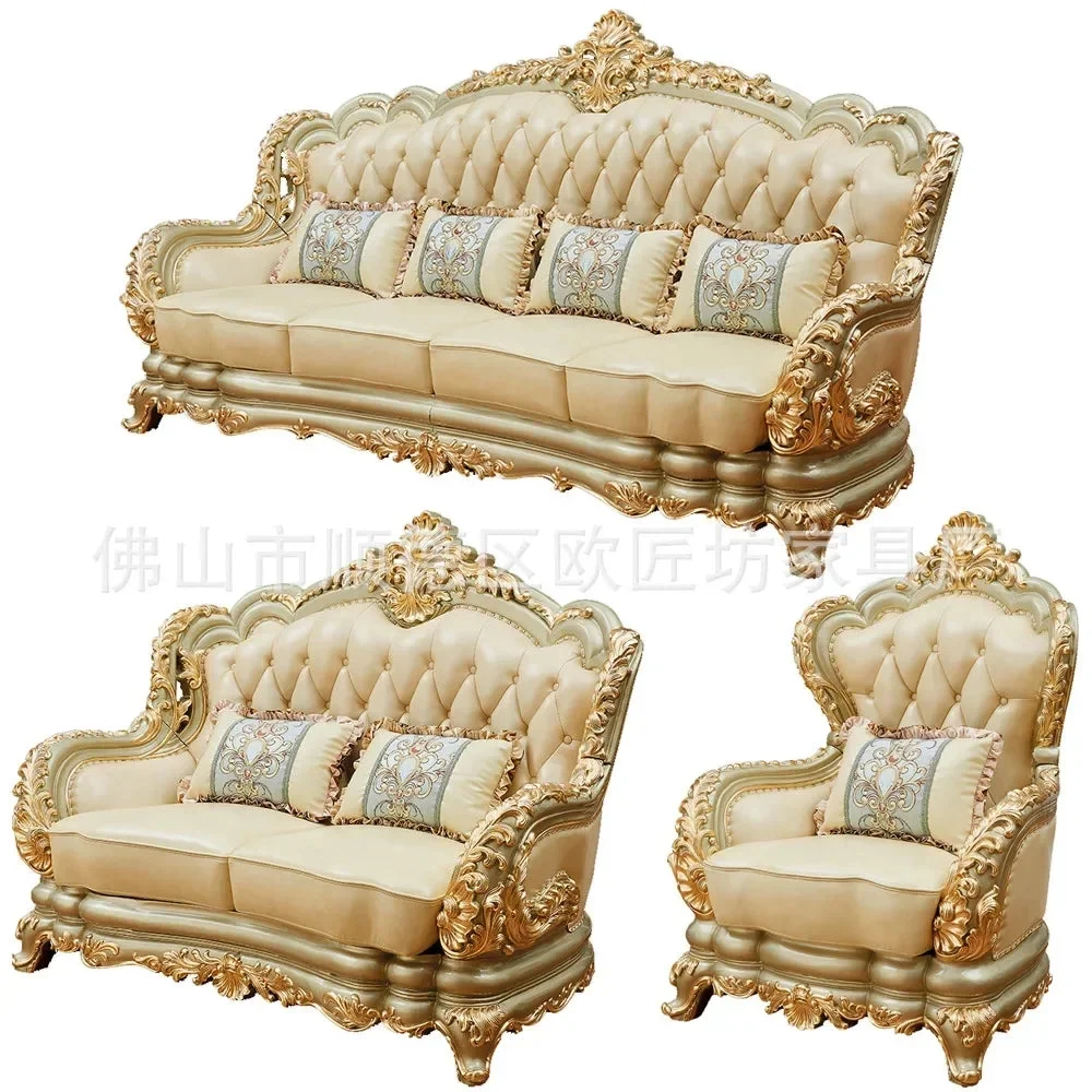 Furniture Leather Sofa Combination Living Room Double-Sided Solid Wood Carved Villa High-End Sofa