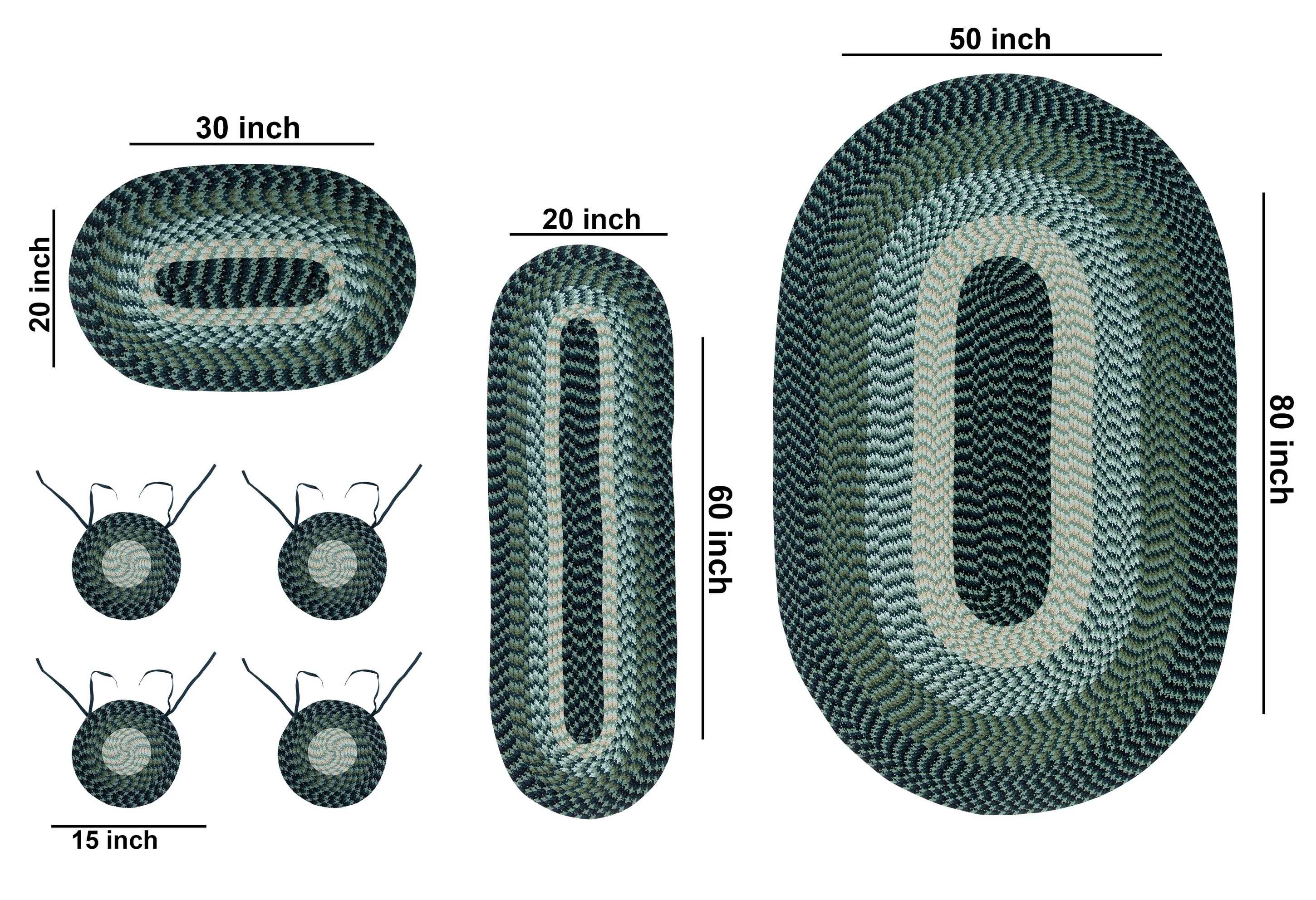 Better Trends Alpine Braid Reversible Indoor Area Utility Rug 100% Polypropylene, 7 Piece Set, Hunter Stripe