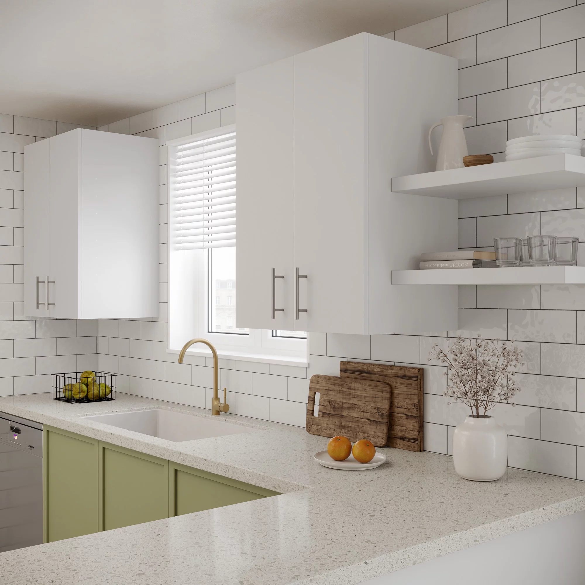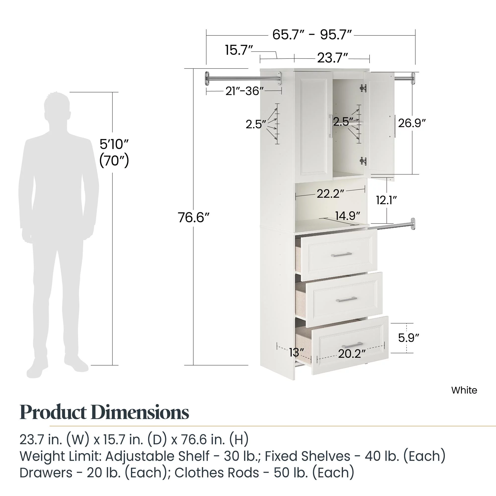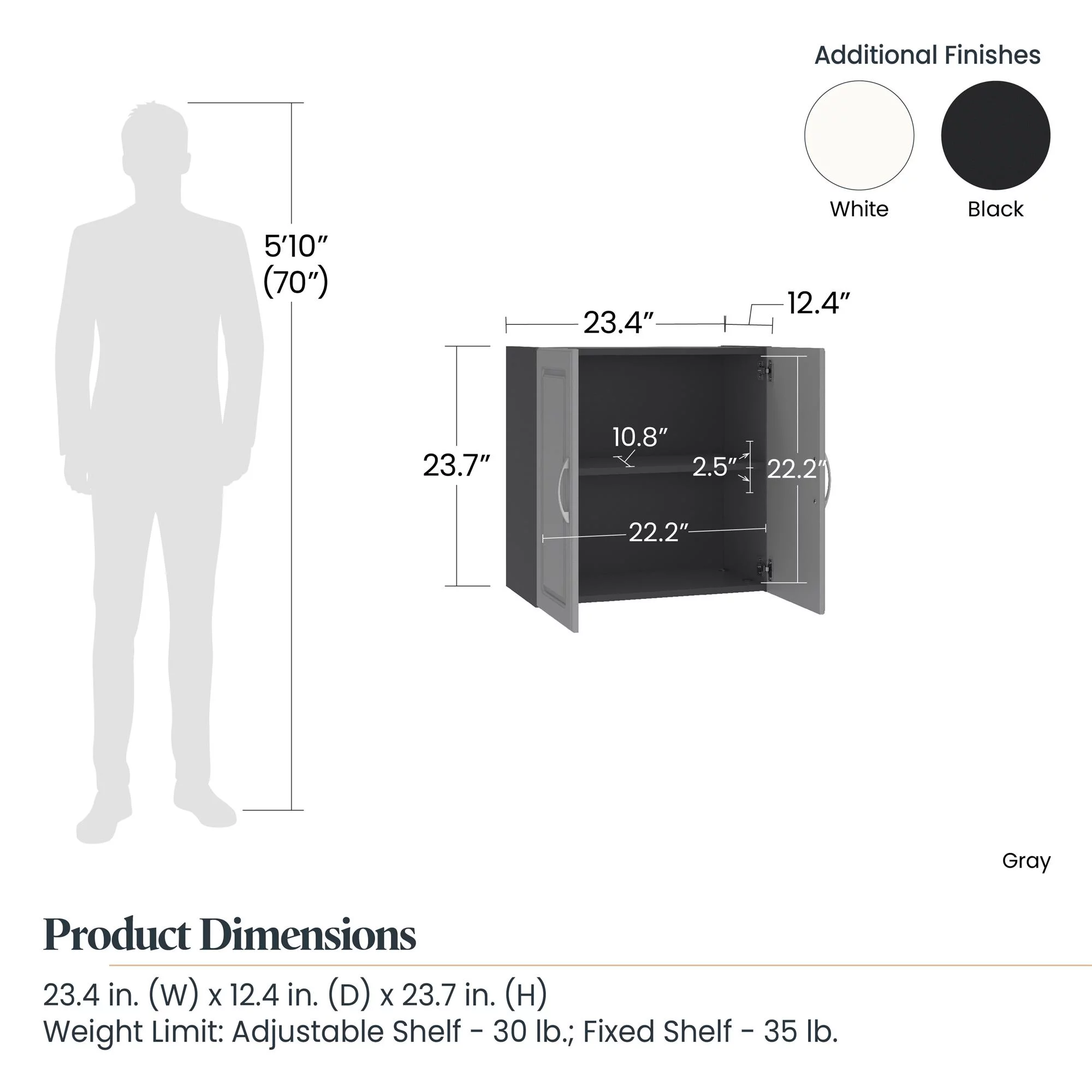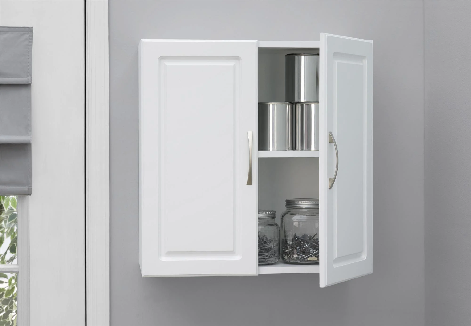 RiverRidge Home Somerset Collection 2-Door Bathroom Storage Wall Cabinet with 1 Open Shelf and 2 Interior Shelves, White