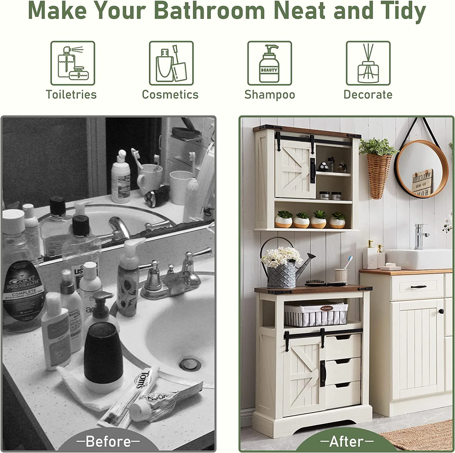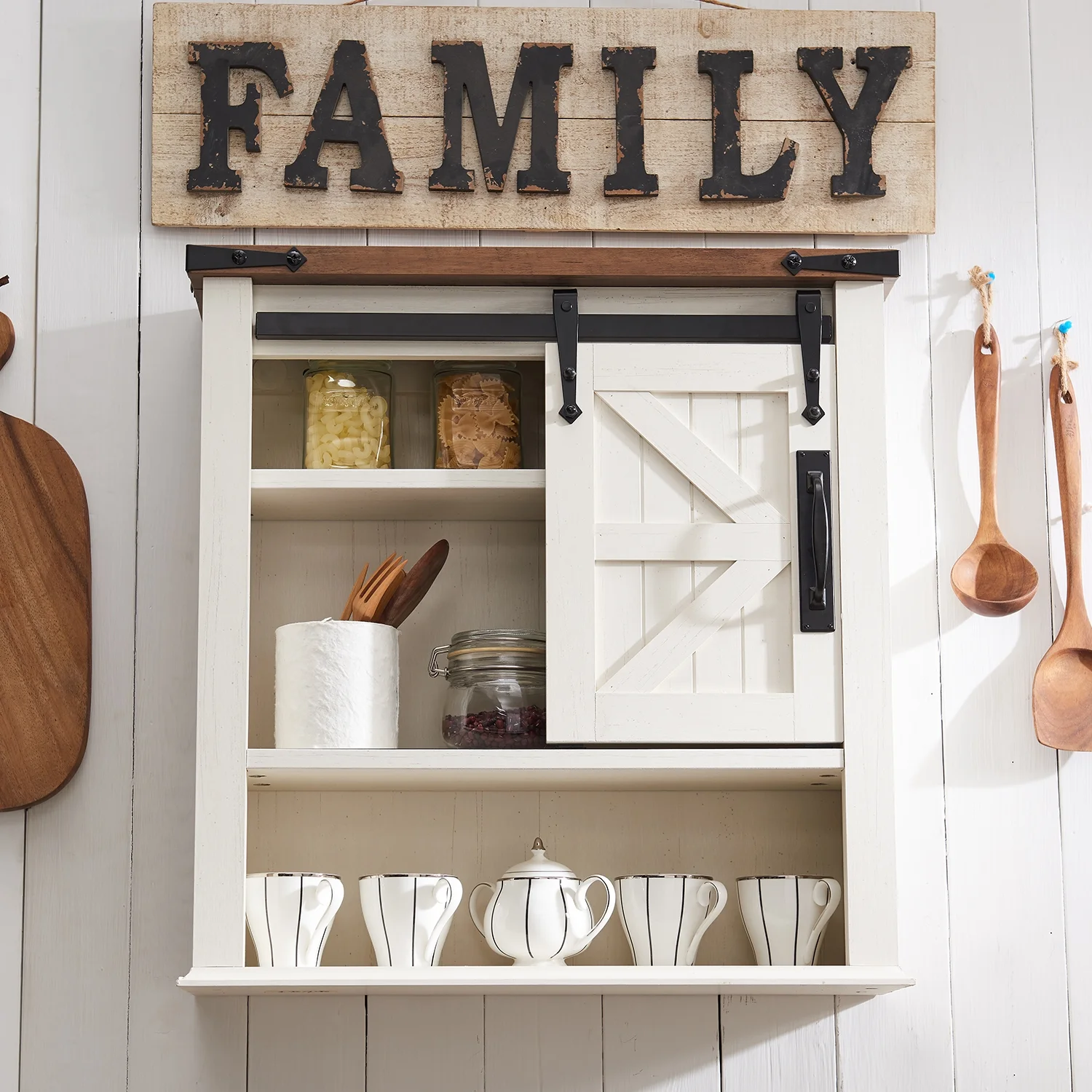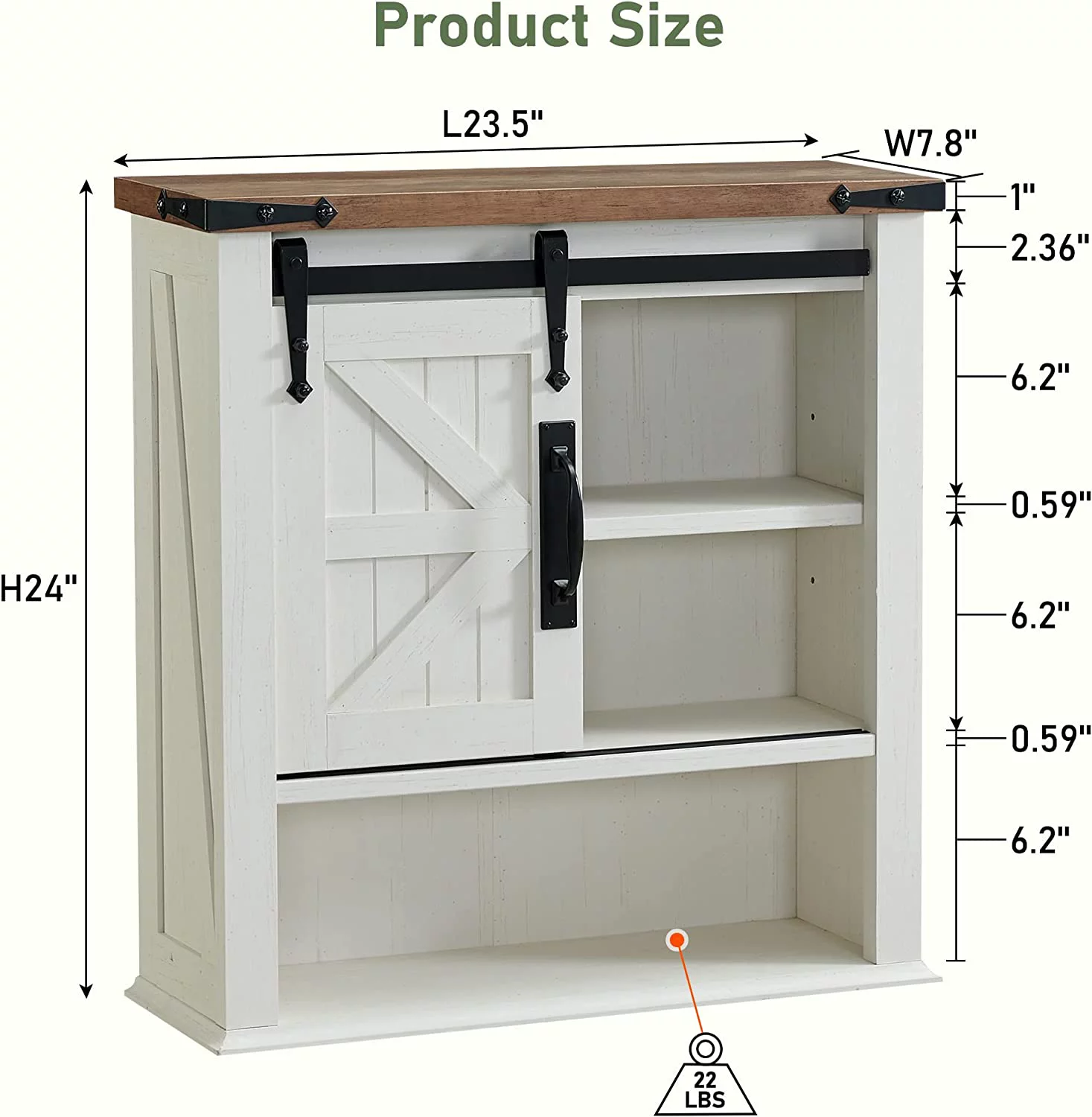 OKD Bathroom Wall Cabinet, 23.5'' W over The Toilet Storage Cabinet with Barn Door and Adjustable Shelf, Antique White