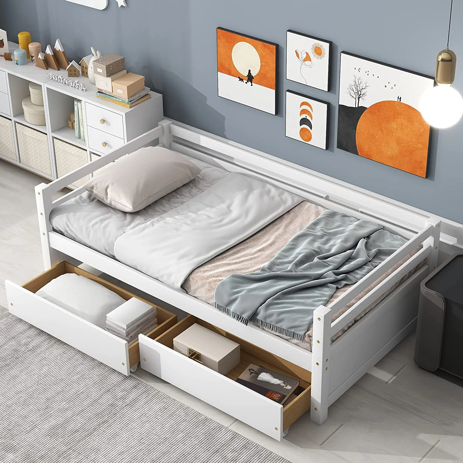 Size Wooden Daybed With Two Storage Drawers, Daybed Sofa Bed With Slats, No Box Spring Needed, Easy Assembly (White)