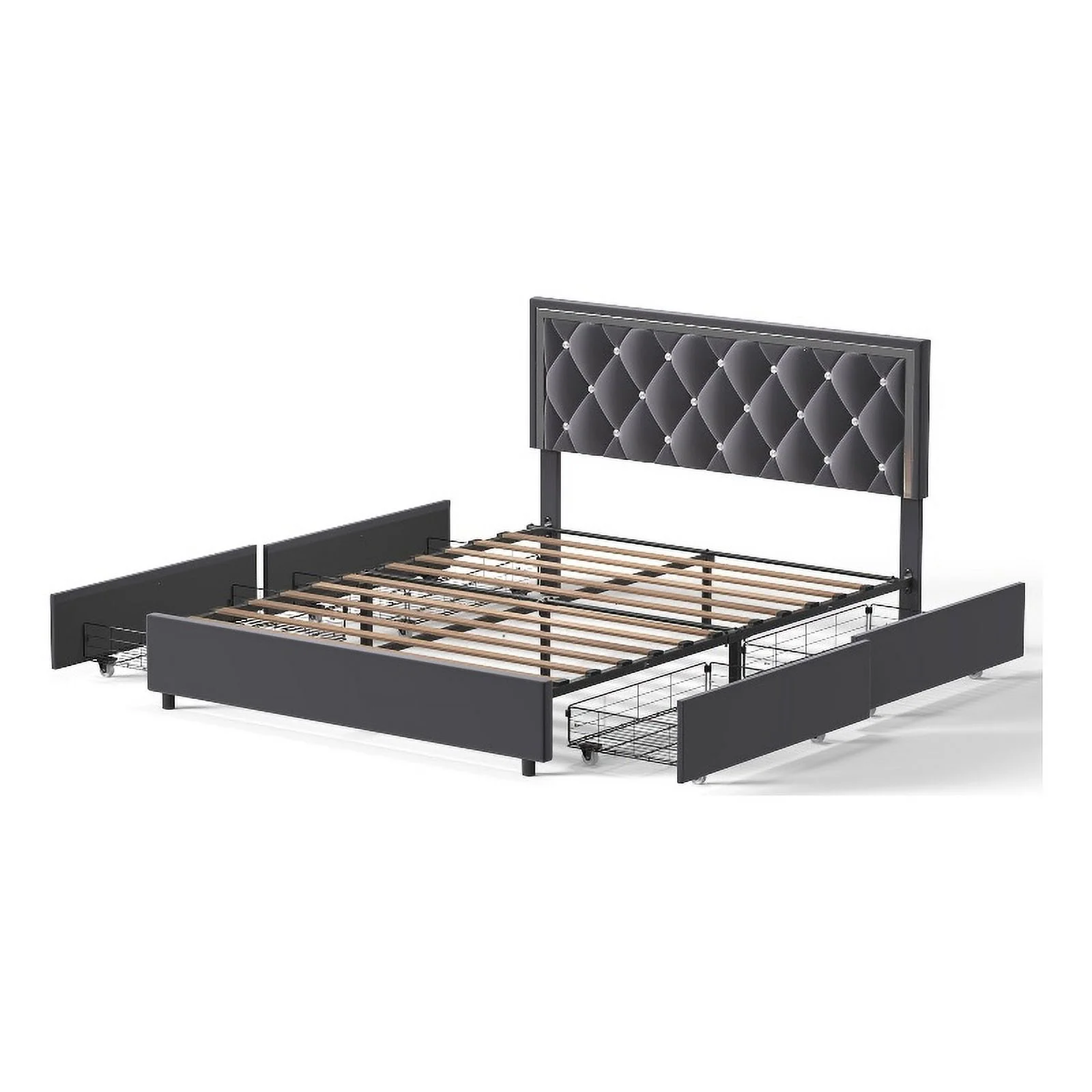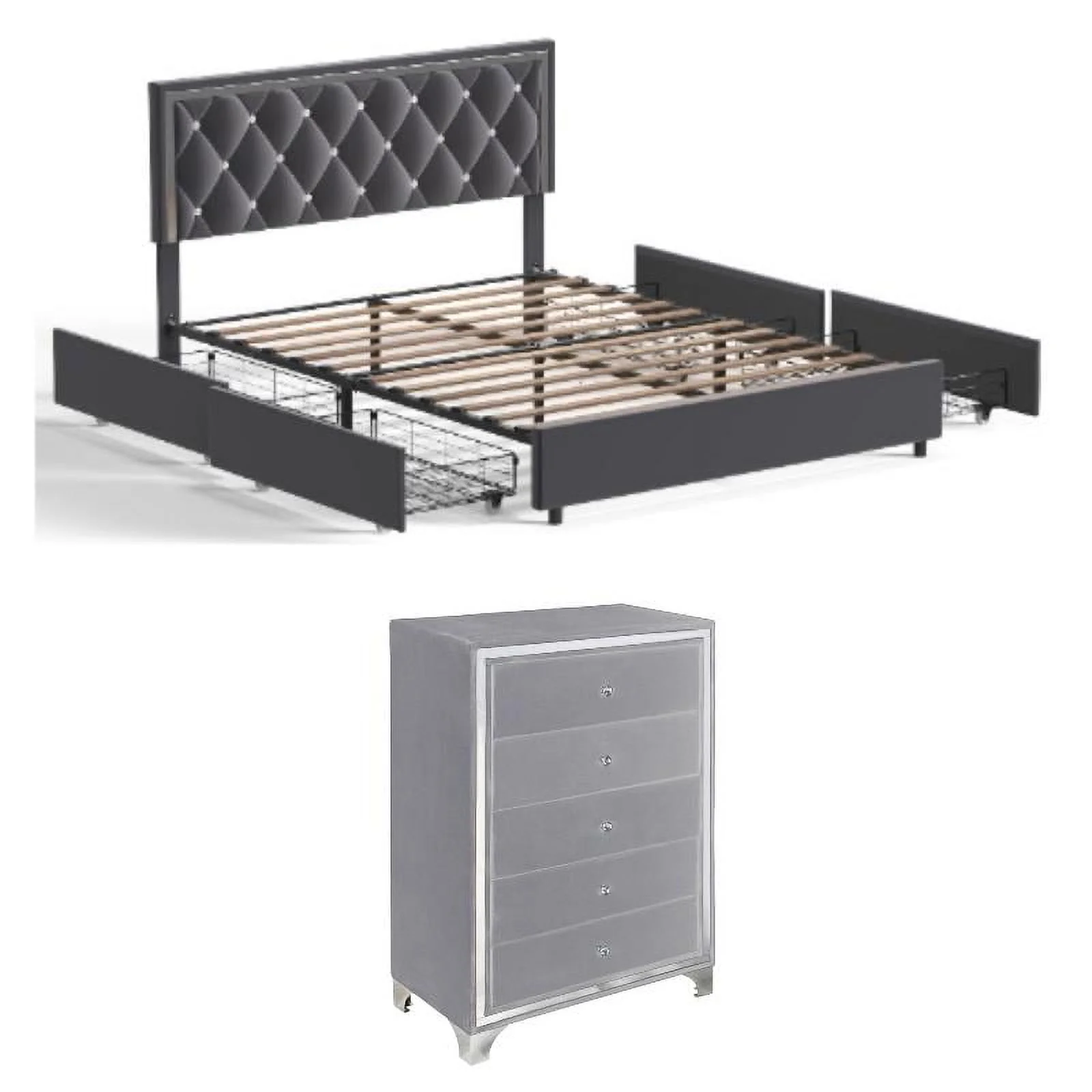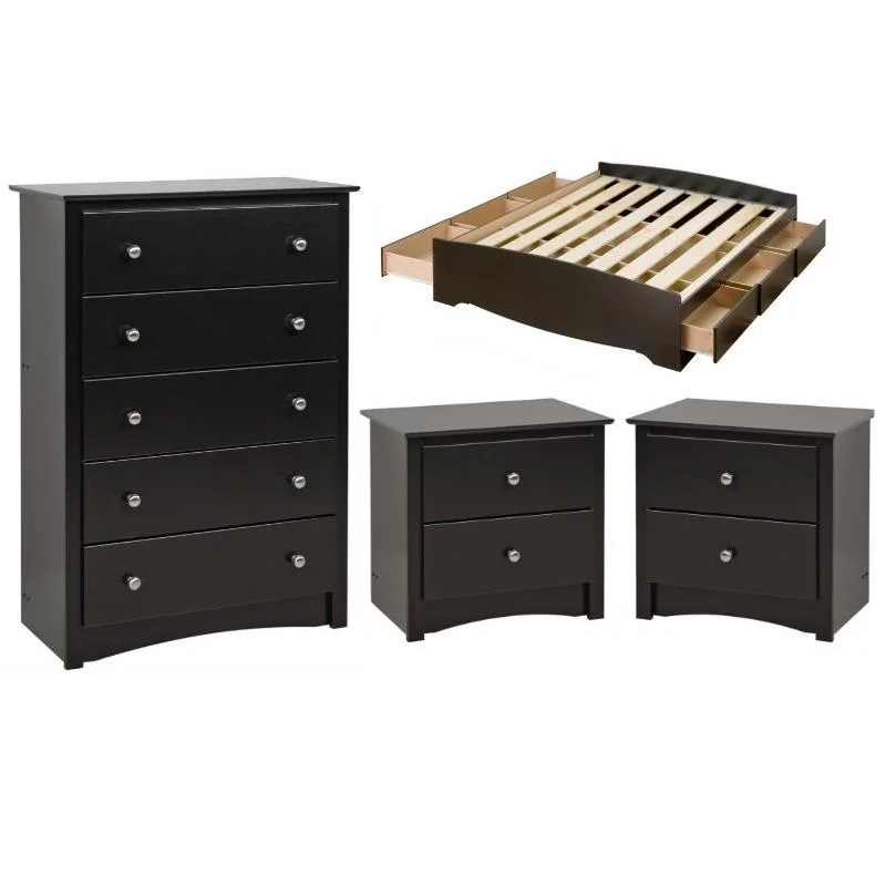 Home Square 4-Piece Set with Queen Storage Bed 5-Drawer Chest & 2 Nightstands