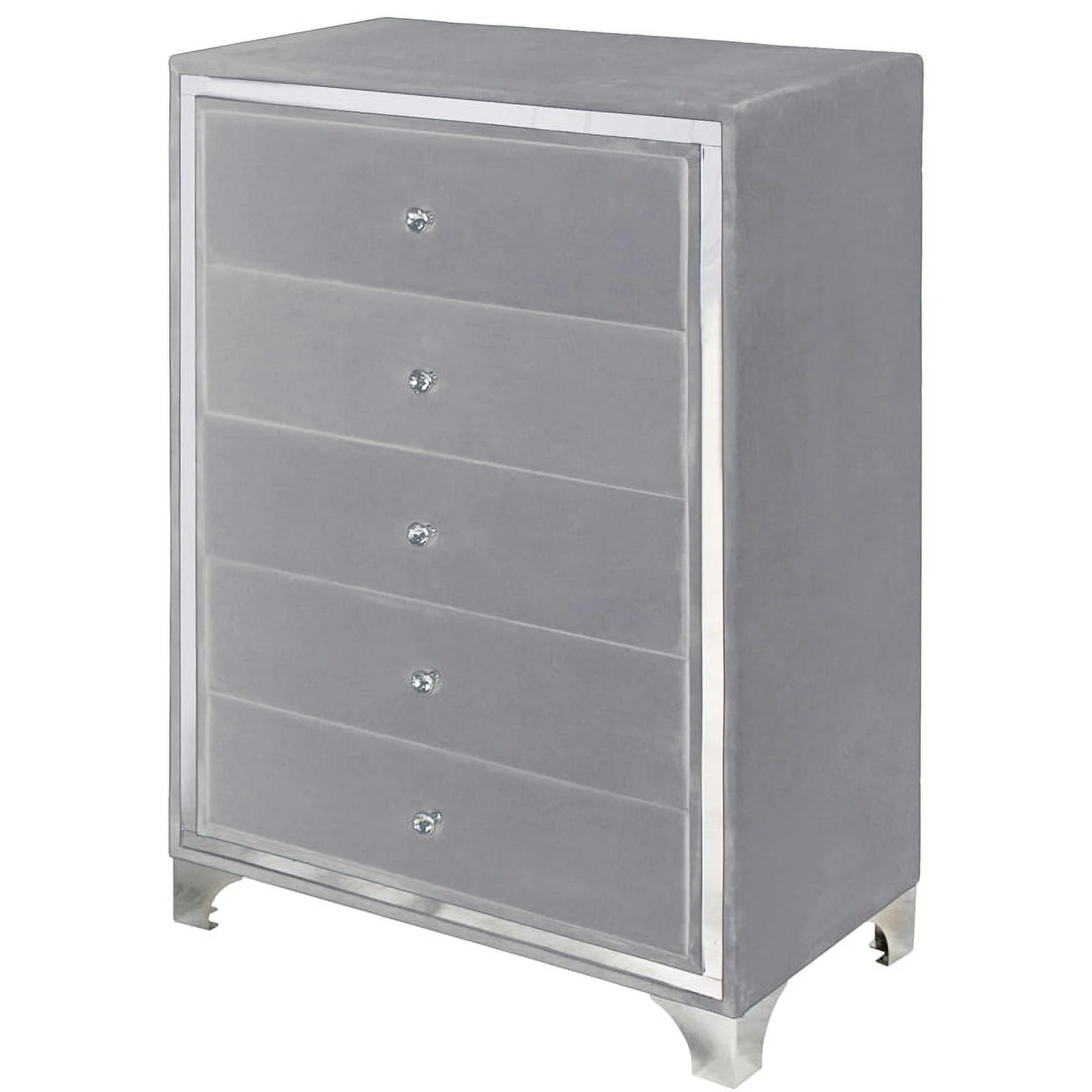 Home Square 2-Piece Set with 5 Drawer Chest & Queen Size Platform Bed in Gray