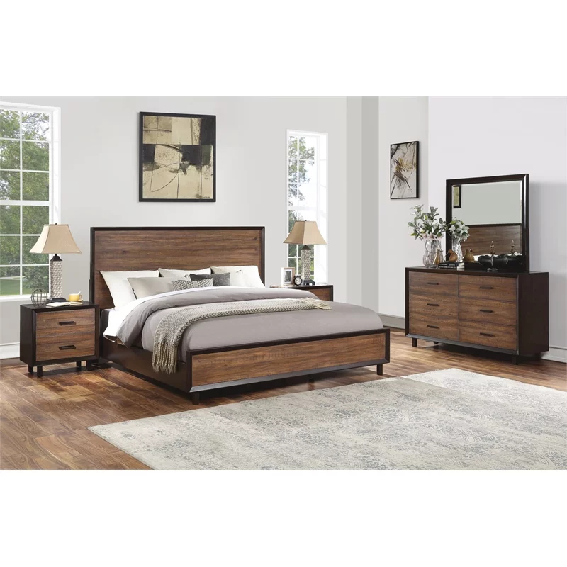Home Square 2-Piece Set with Queen Platform Bed & 6-Drawer Dresser in Walnut
