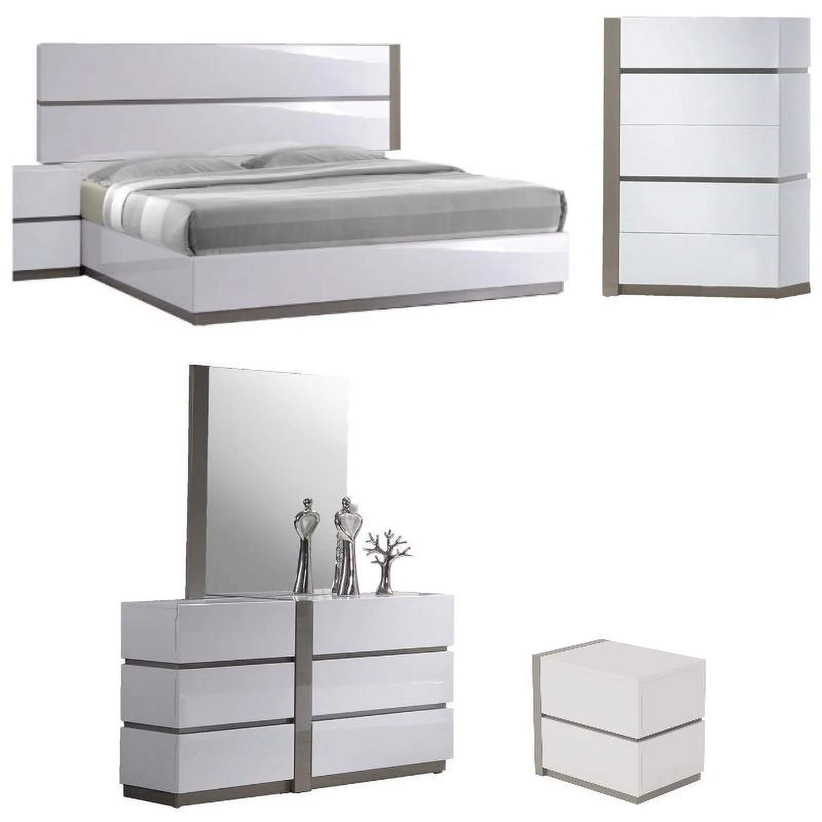 Passion Queen 6 PC Bed Room Set Nightstand Dresser Chest Cabinet Cupboard Forcer Milky White with Led Bedroom Furniture