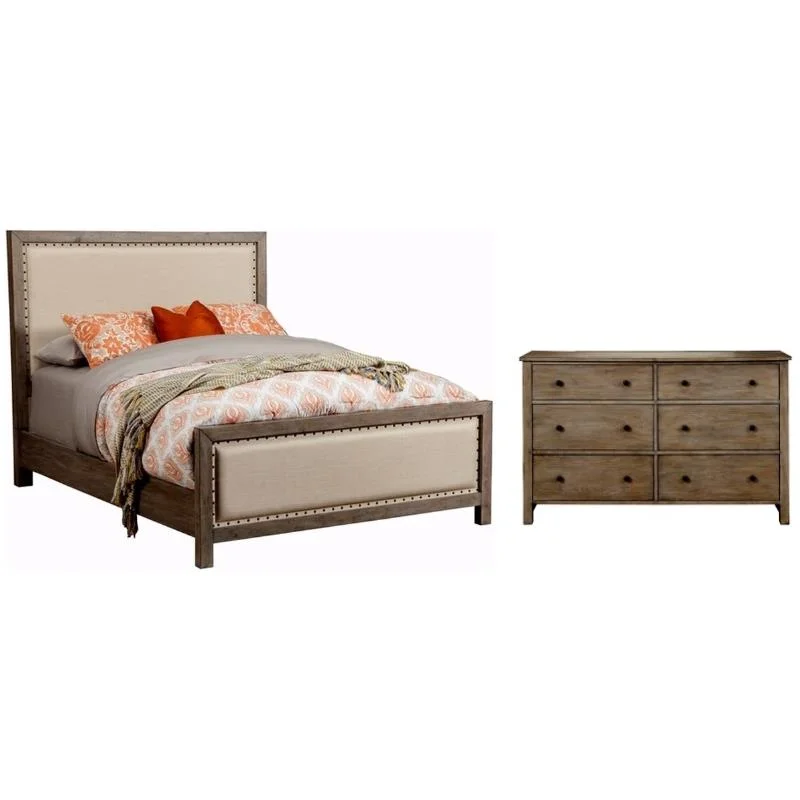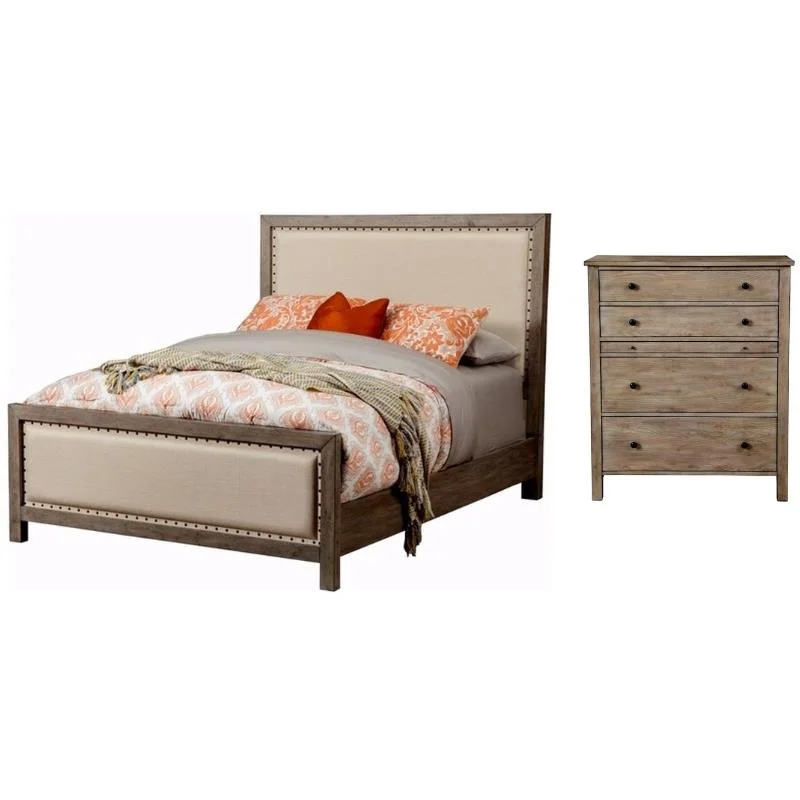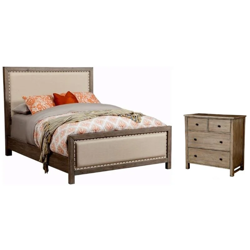 Home Square 2-Piece Set with Classic Queen Bed & 4 Drawer Chest in Natural Gray