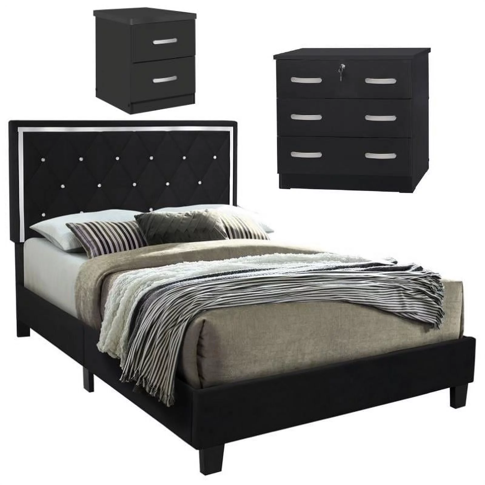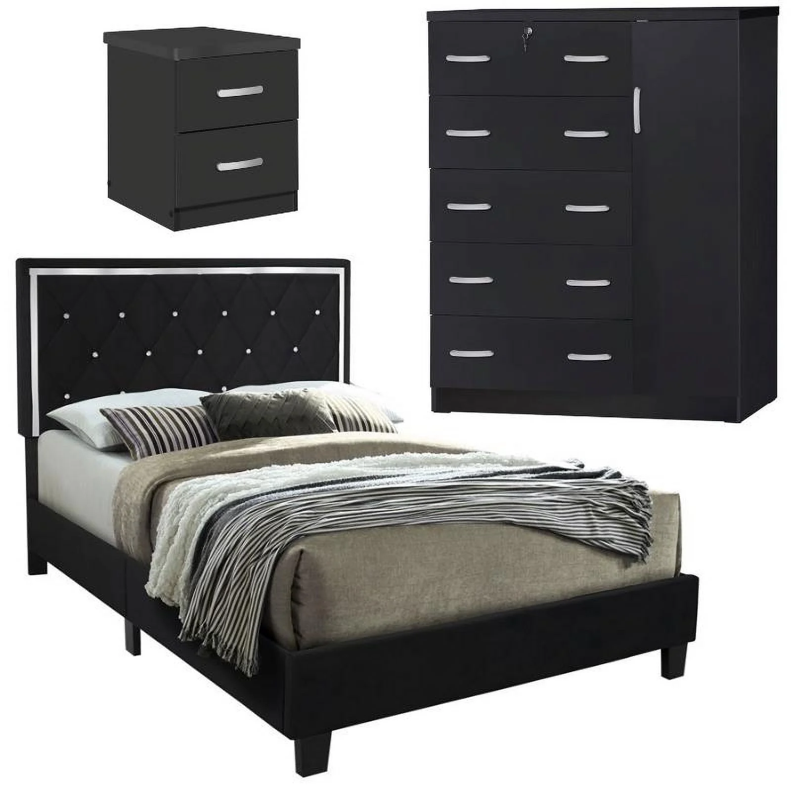 Home Square 3-Piece Set with Queen Bed Chest Dresser and 2-Drawer Nightstand