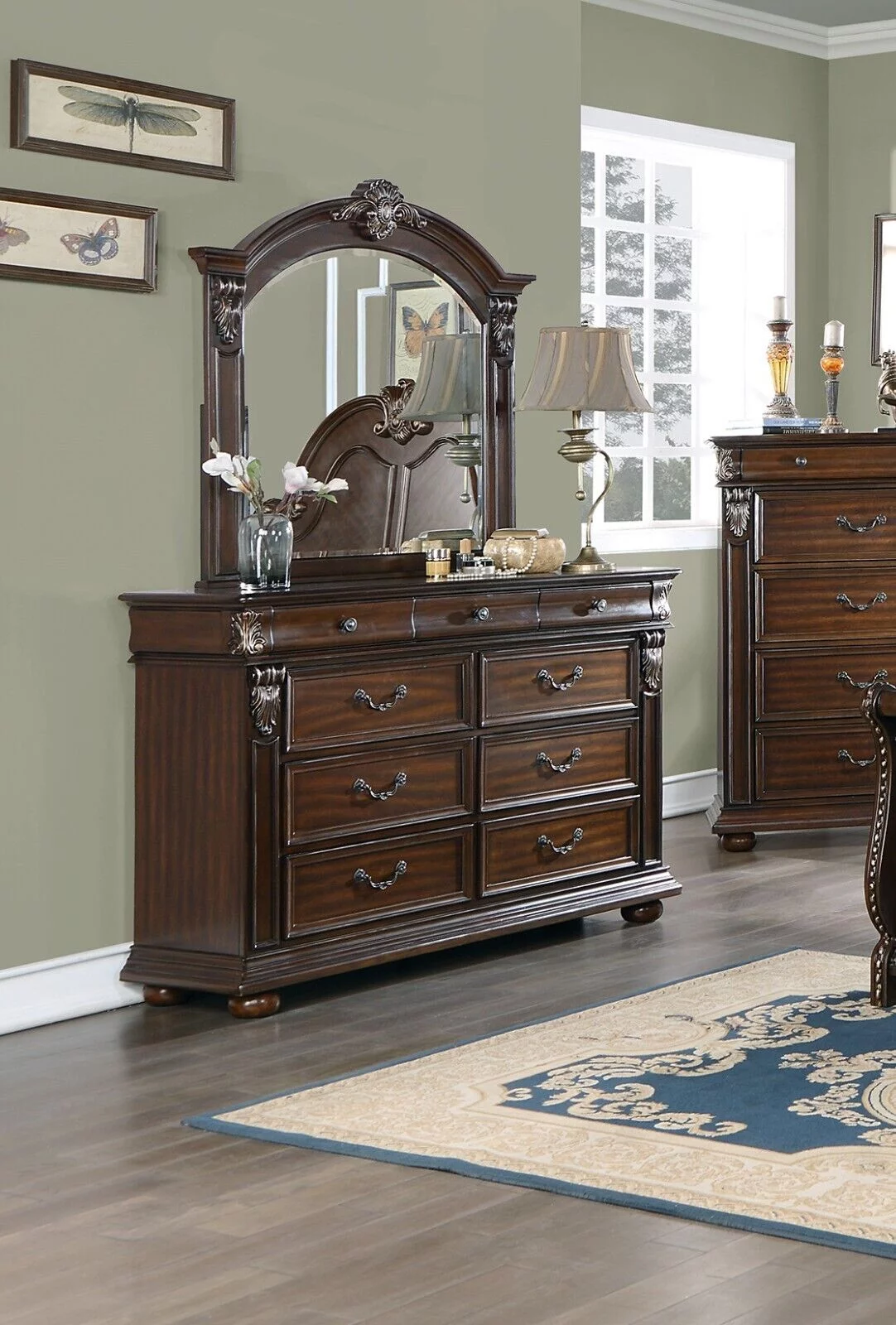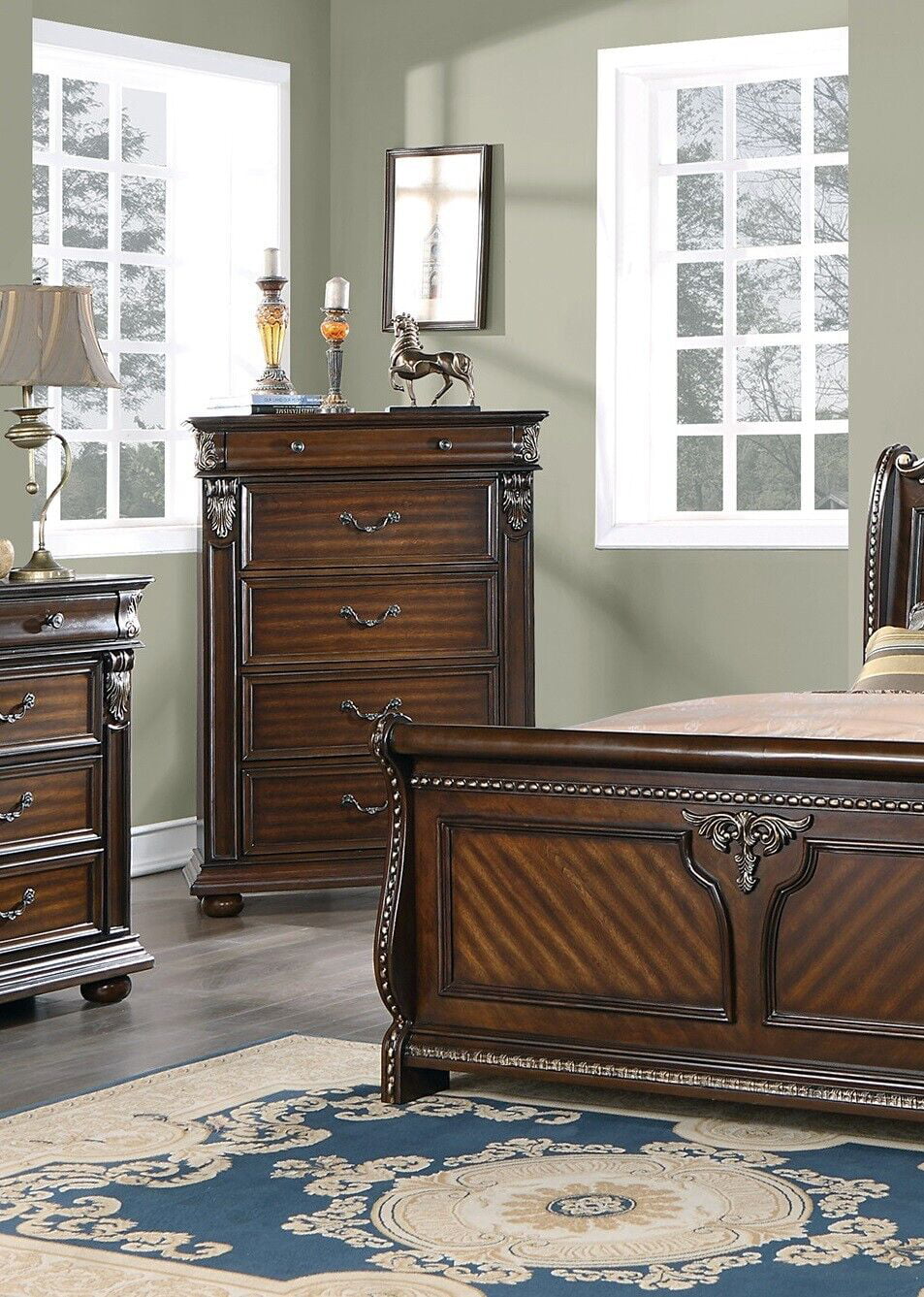 Queen Size Bed Dresser Mirror 2x Nightstands Chest 6pc Bedroom Furniture Traditional Majestic Brown Cherry Finish Wooden