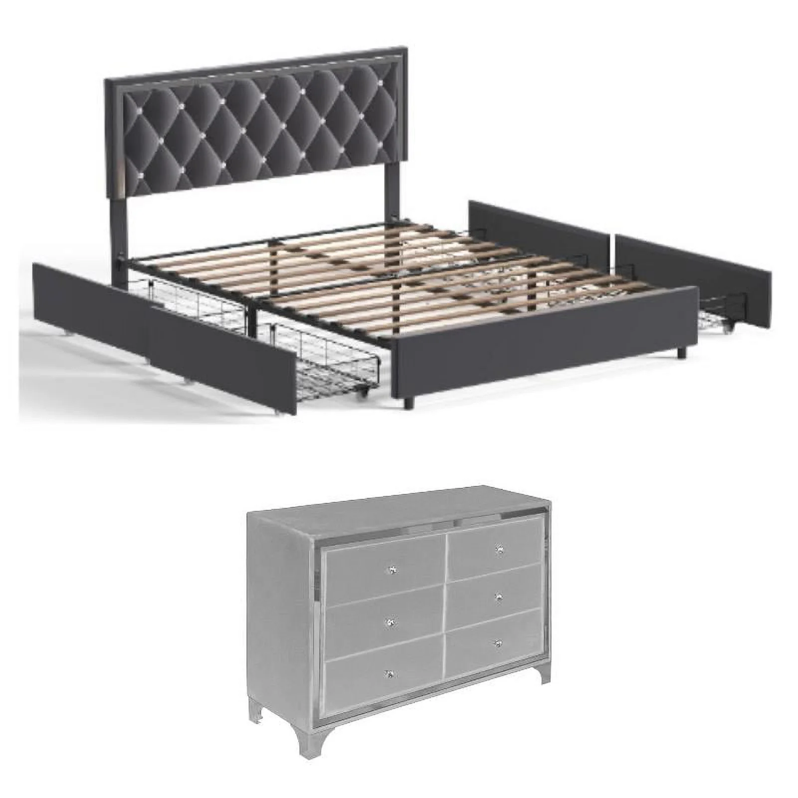 Home Square 2-Piece Set with Double Dresser & Queen Size Platform Bed in Gray