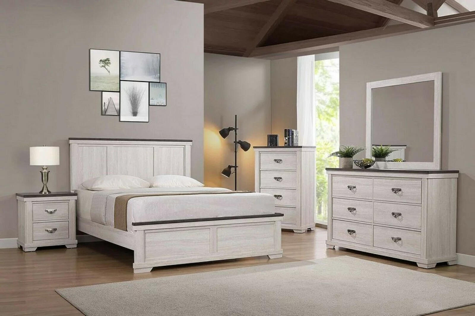 Transitional Style Two-tone Grey White Finish Queen Size 5pc Bed Dresser Mirror Nightstand Chest Wooden Bedroom Furniture
