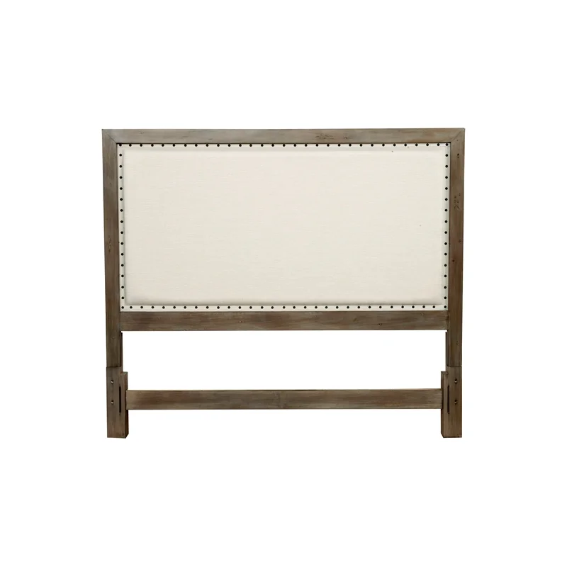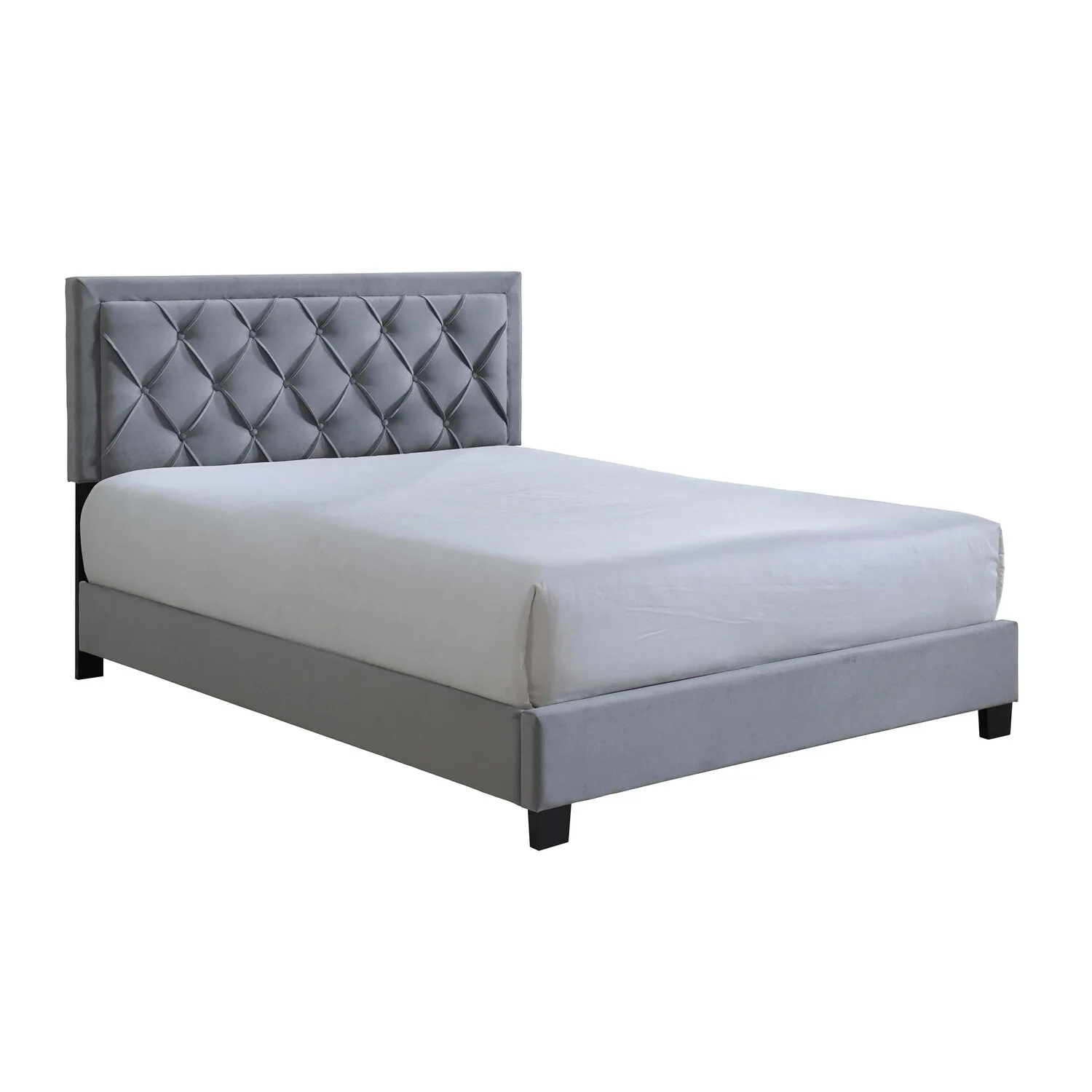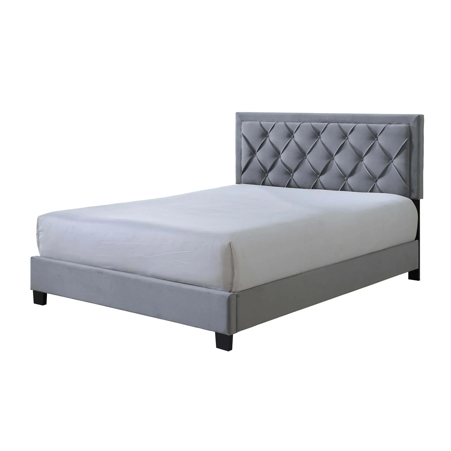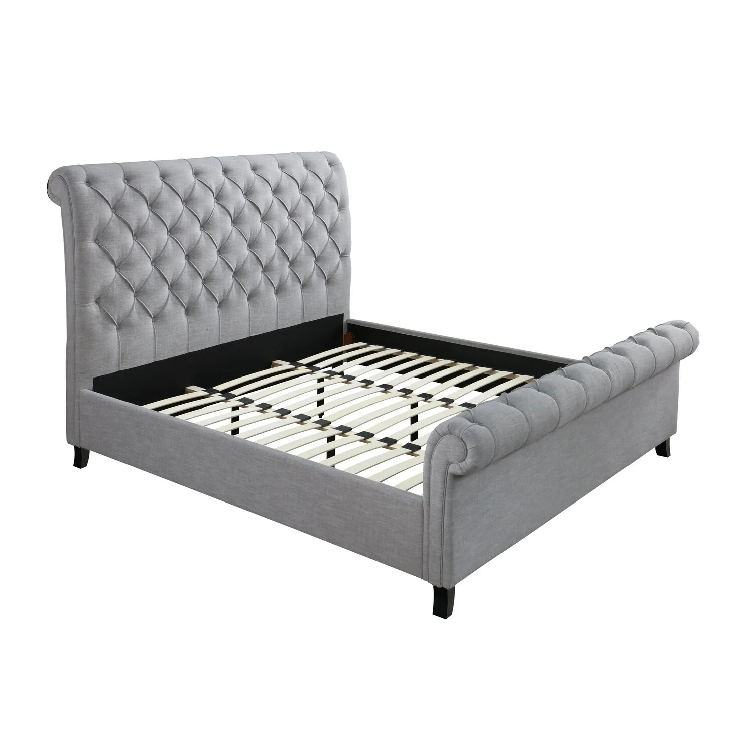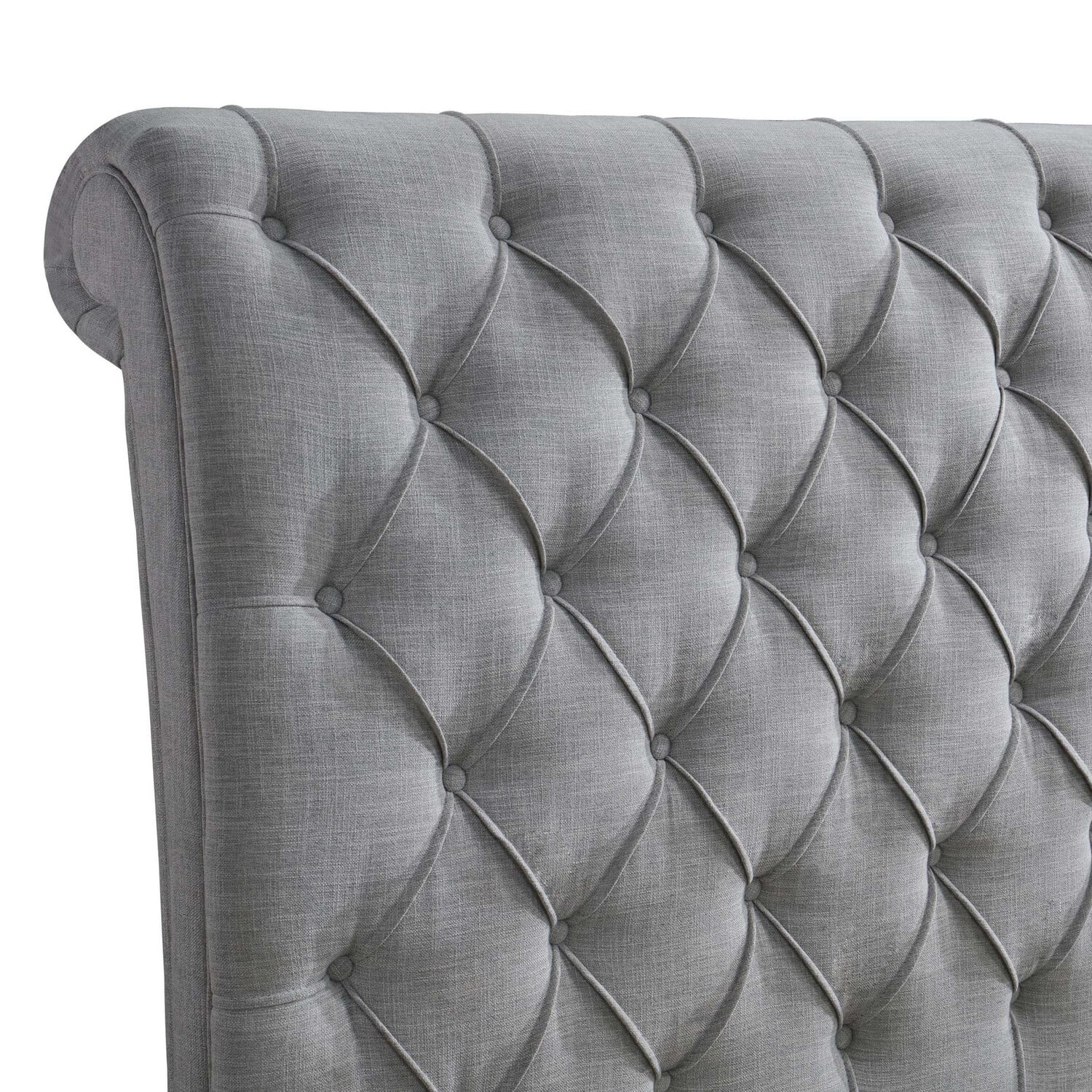 Benjara Magnolia King Size Bed, Tufted Upholstered Rolled Top Headboard, Gray