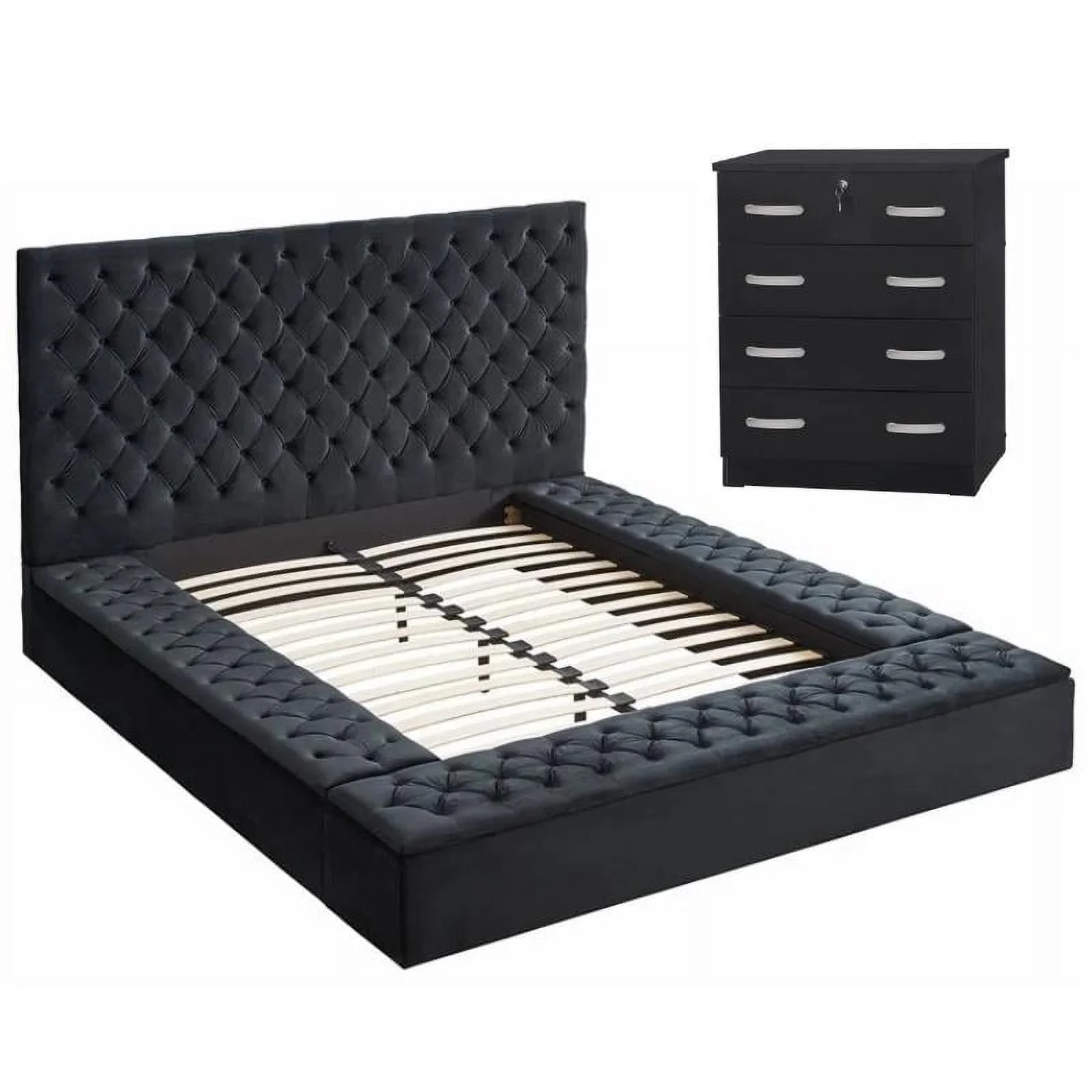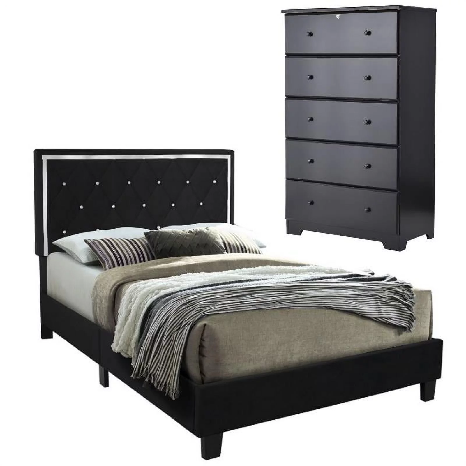 Home Square 2-Piece Set with Full Bed and Chest Bedroom Dresser in Black