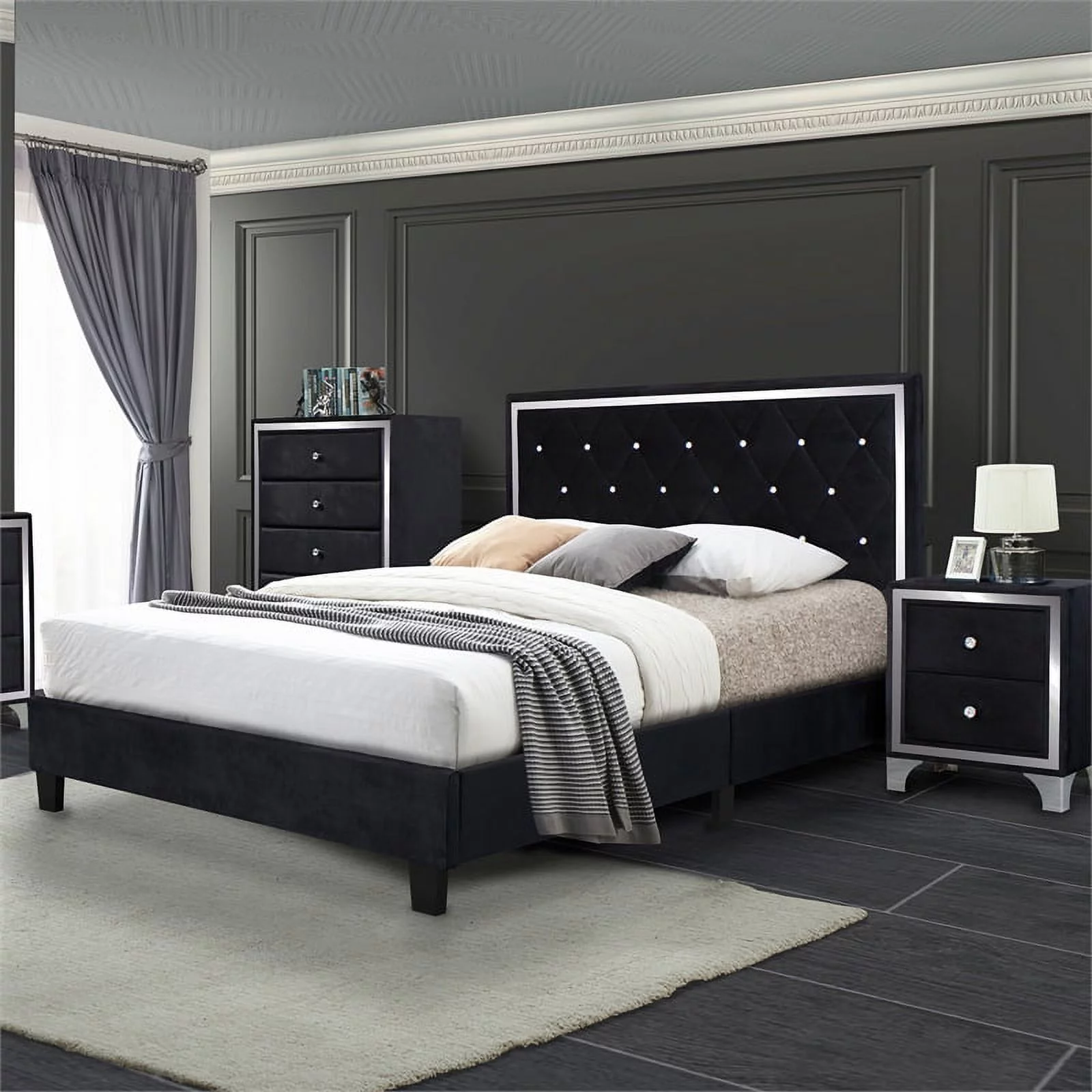 Home Square 2-Piece Set with Queen Bed & 3-Drawer Chest Bedroom Dresser in Black