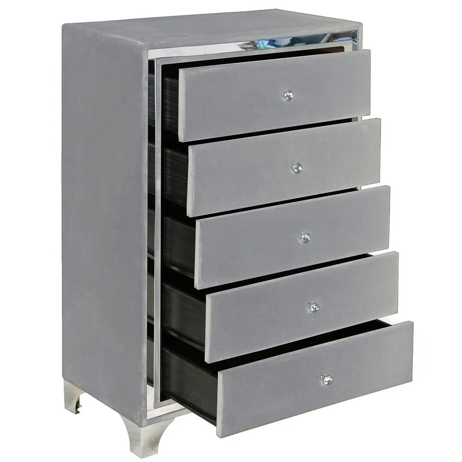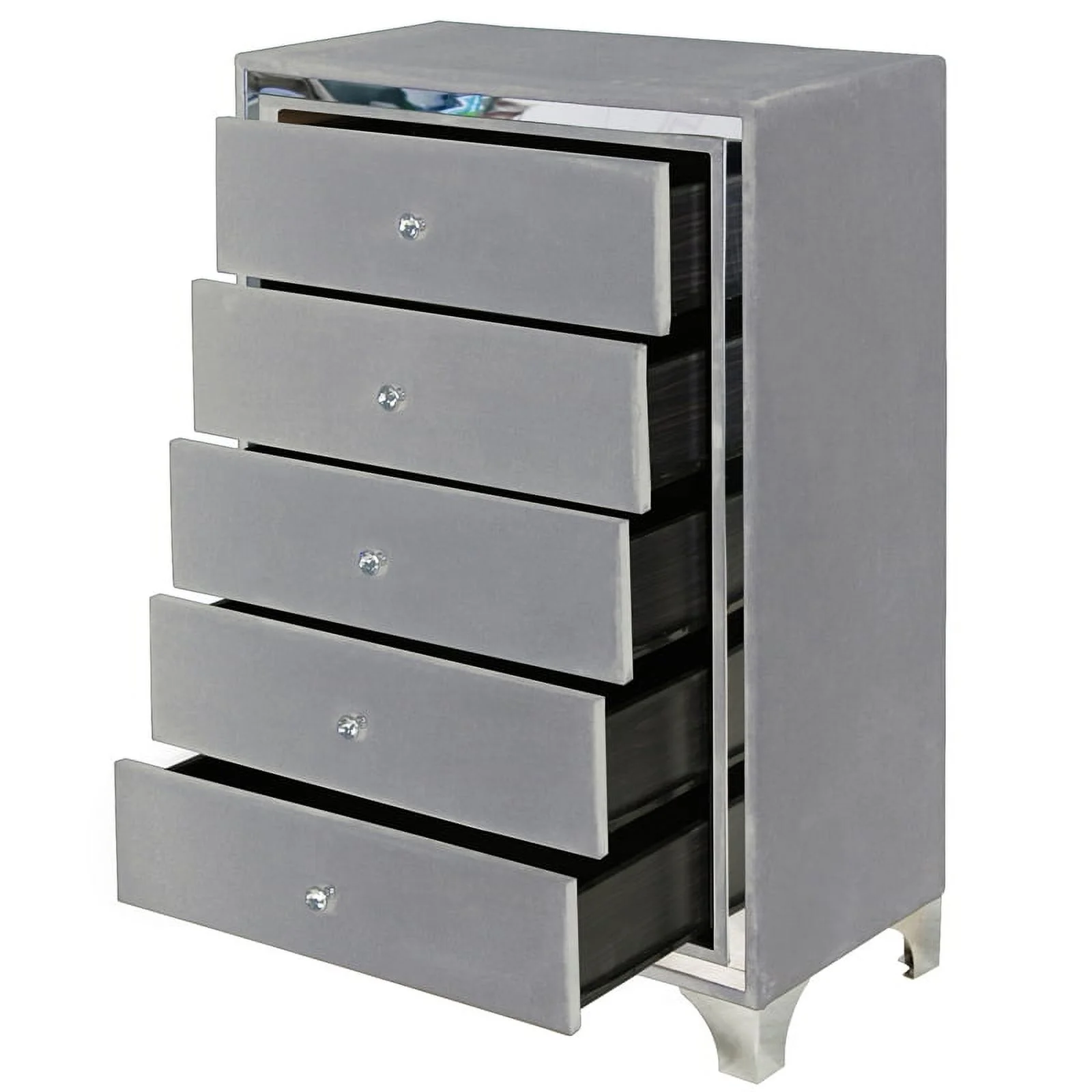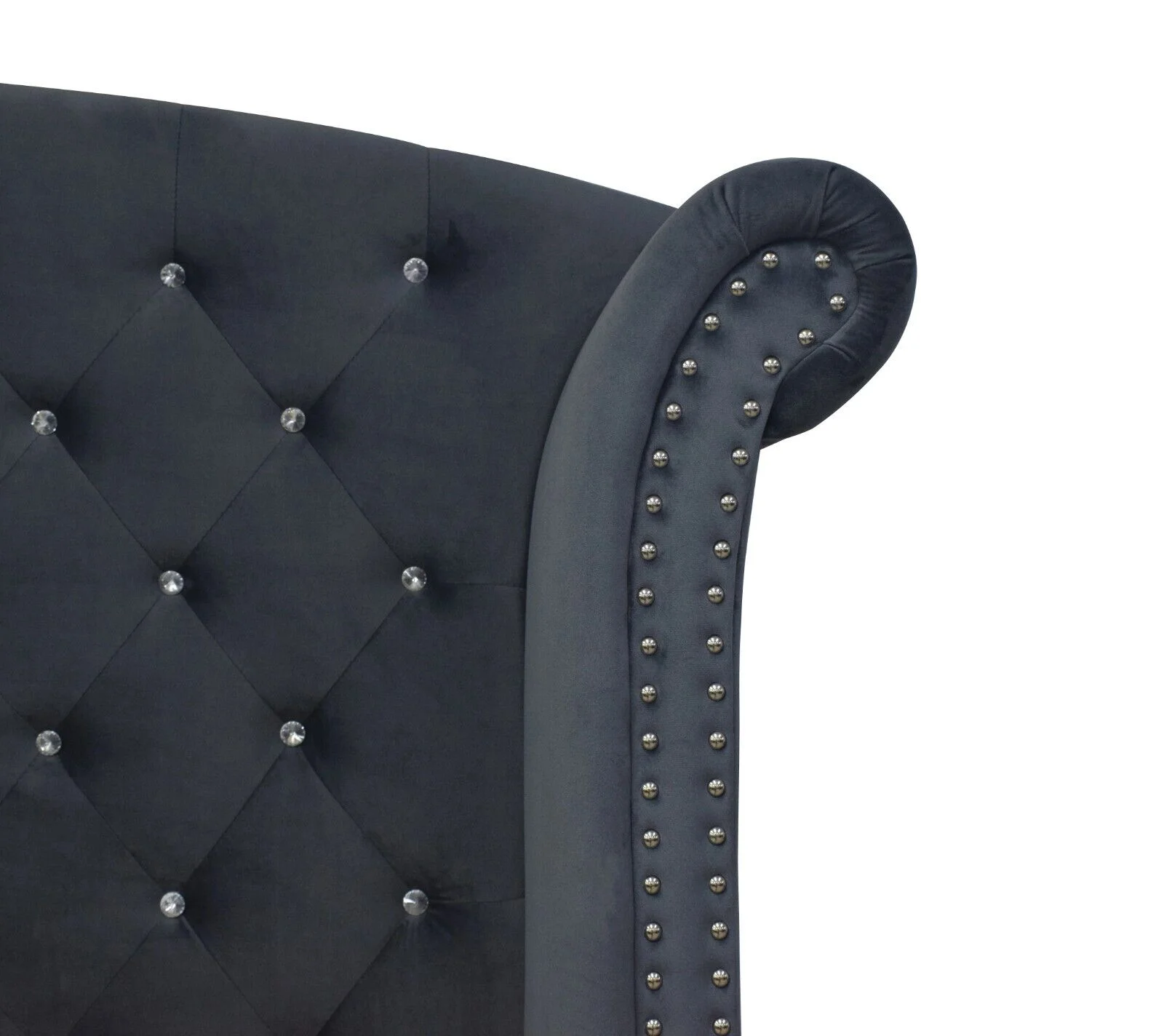 Modern Glamourous 6pc Queen Size Bed Dresser Mirror Nightstands Chest Bedroom Set Dark Gray Velvet Upholstery Furniture
