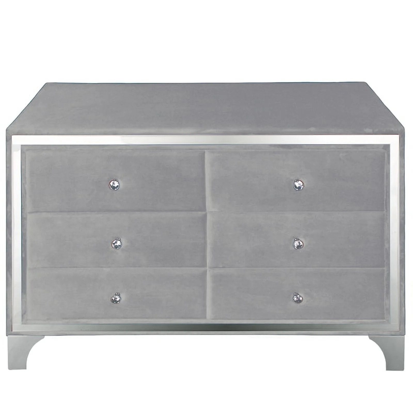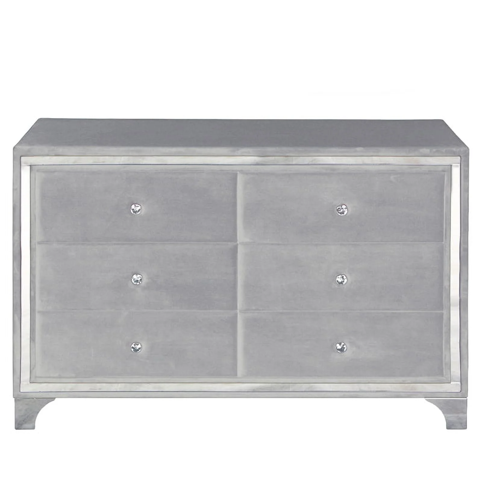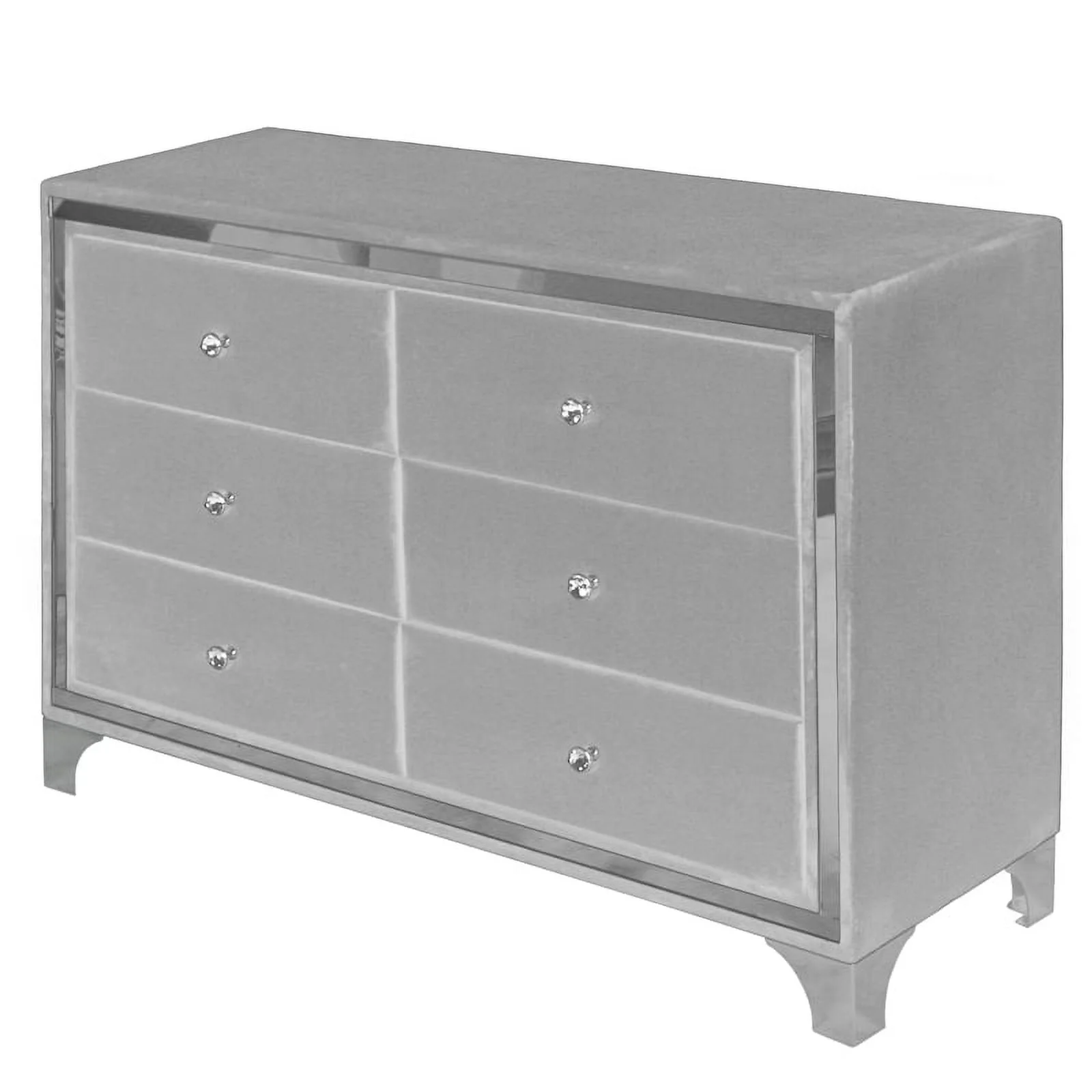 Modern Glamourous 6pc Queen Size Bed Dresser Mirror Nightstands Chest Bedroom Set Dark Gray Velvet Upholstery Furniture