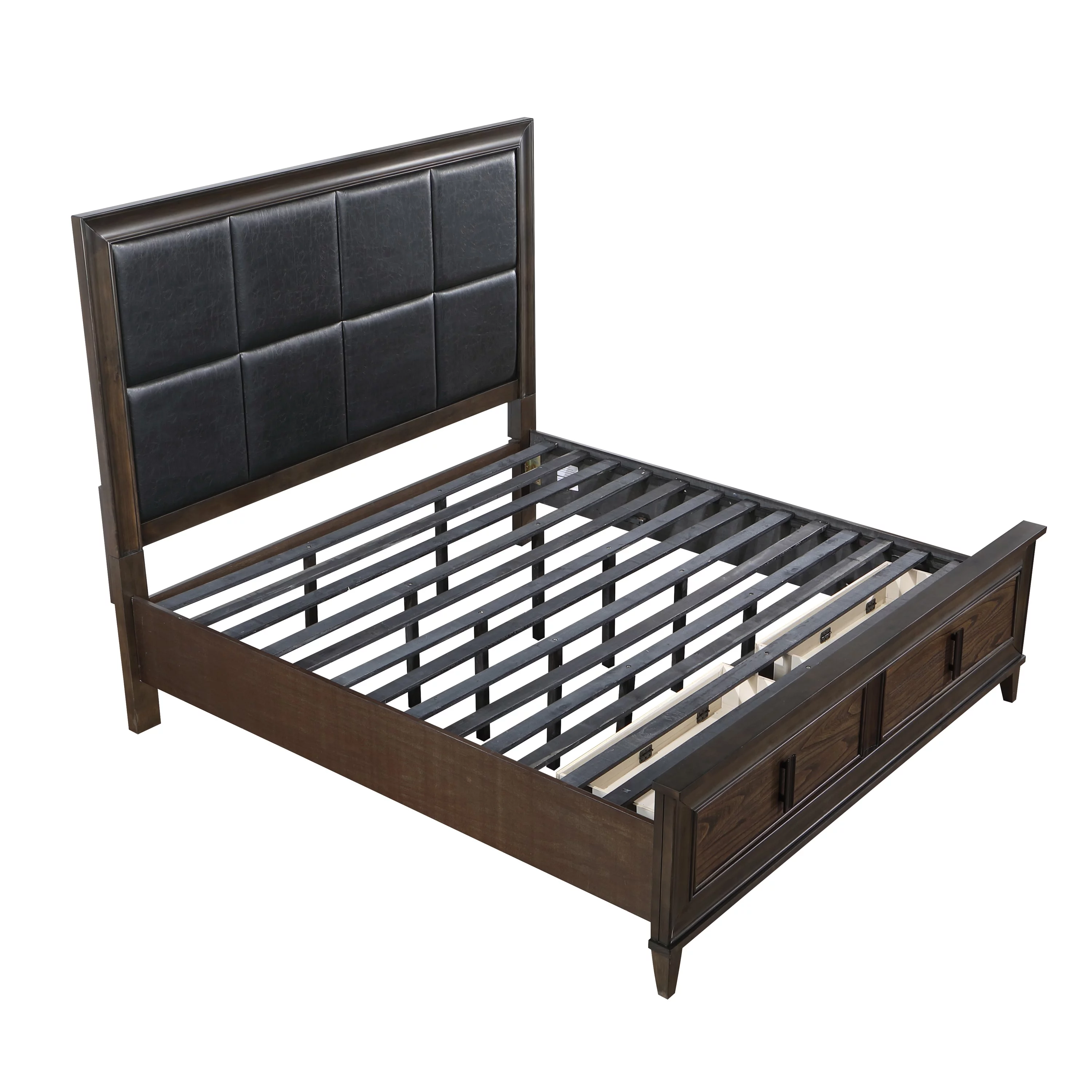 Roundhill Aetheria Contemporary Wood 6-Piece Upholstered Storage Bedroom Set in Dark Brown