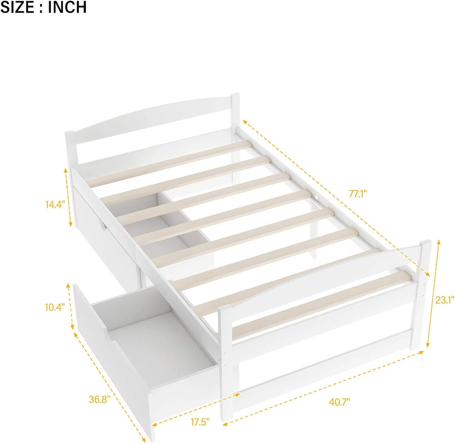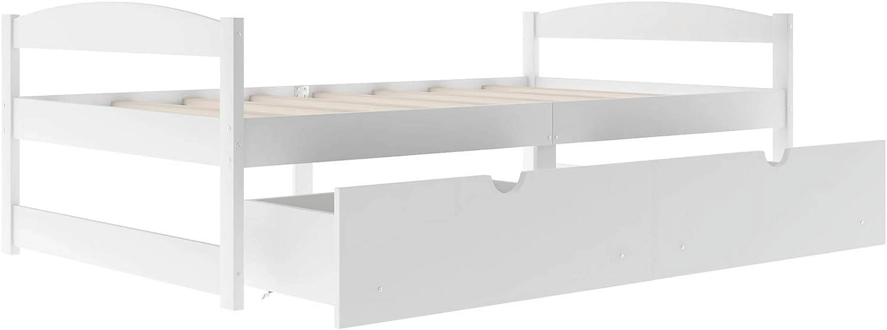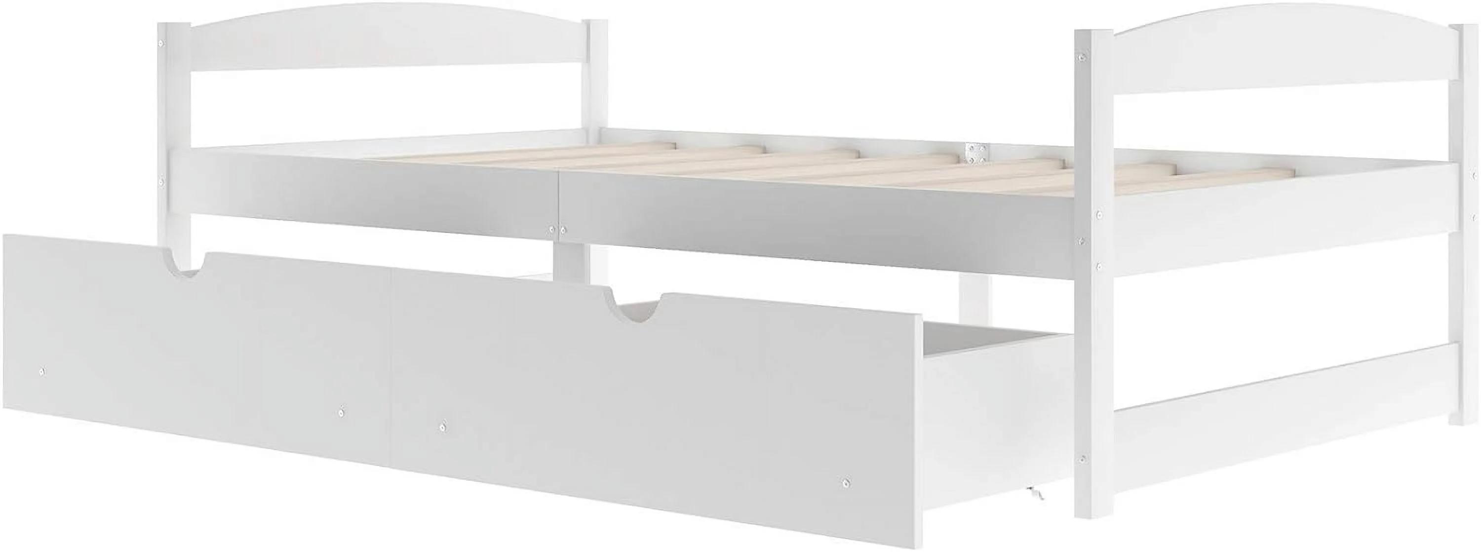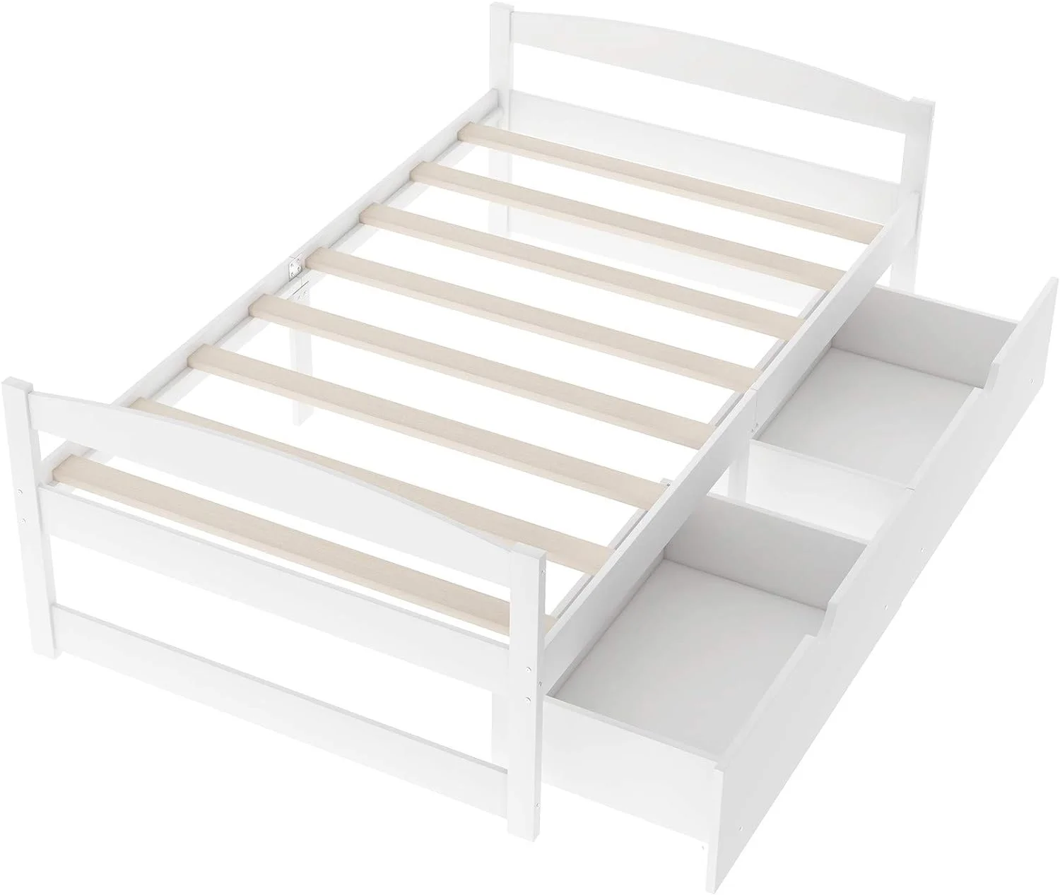 Platform Bed With Two Drawers/Wood Daybed Frame/Wood Slat Support/No Box Spring Needed/Easy Assembly, White