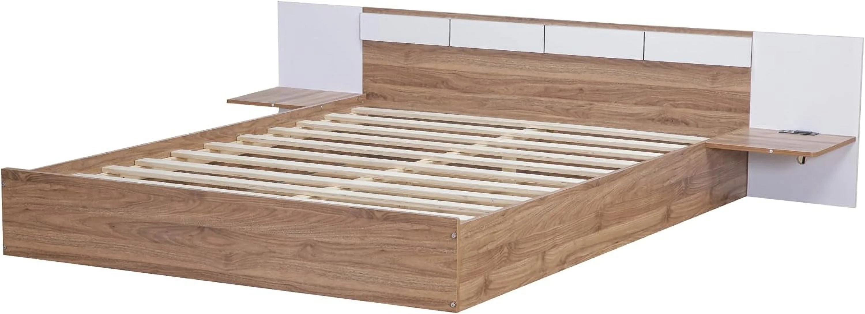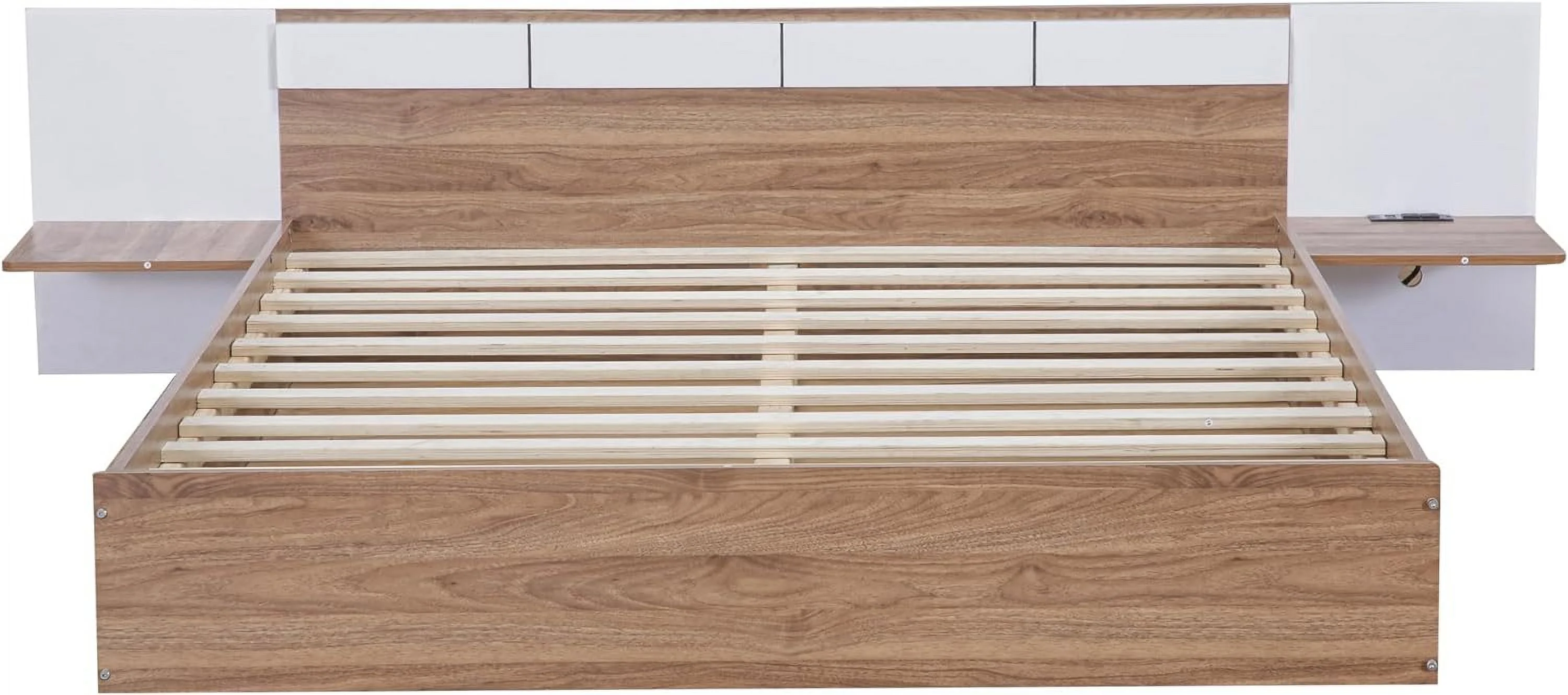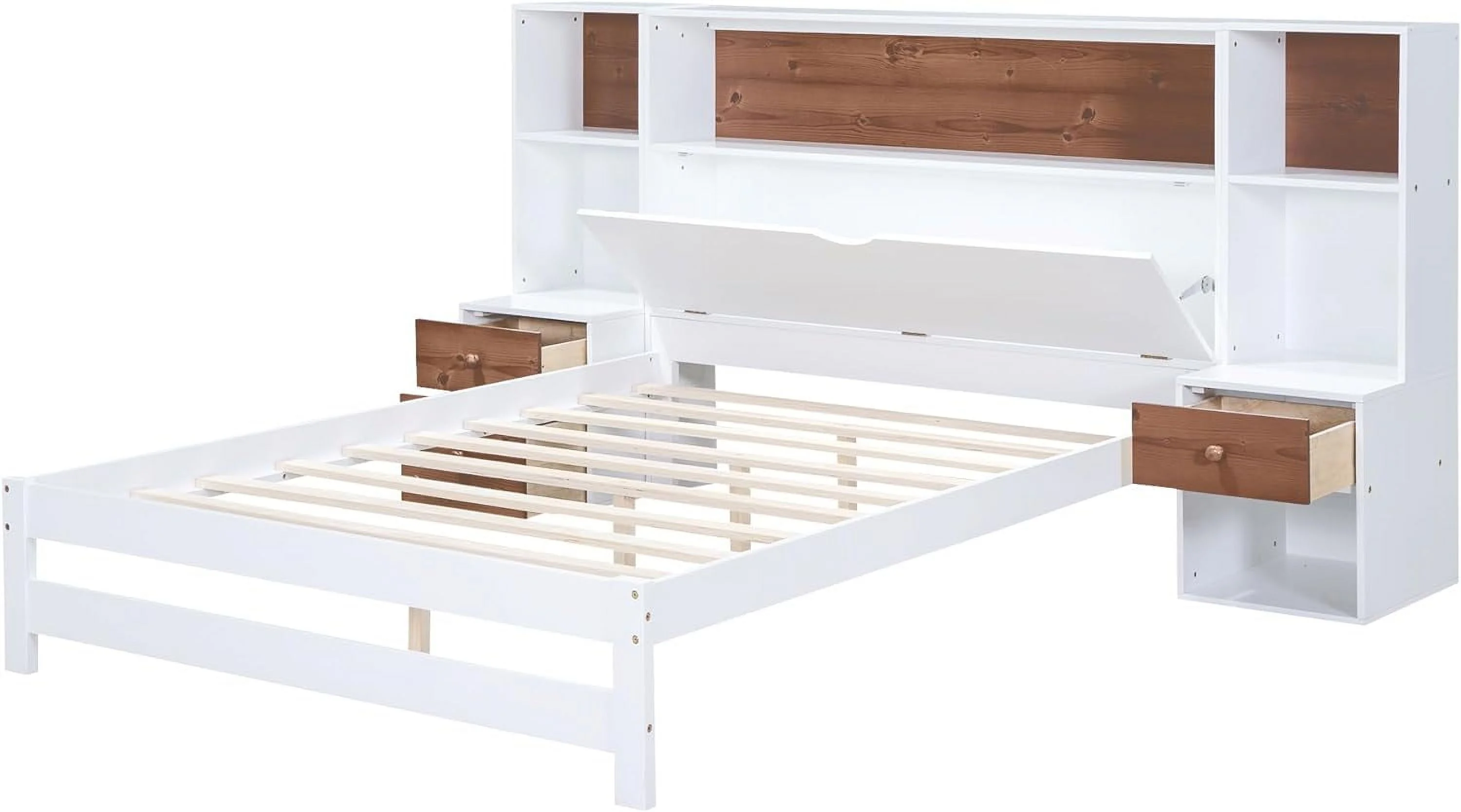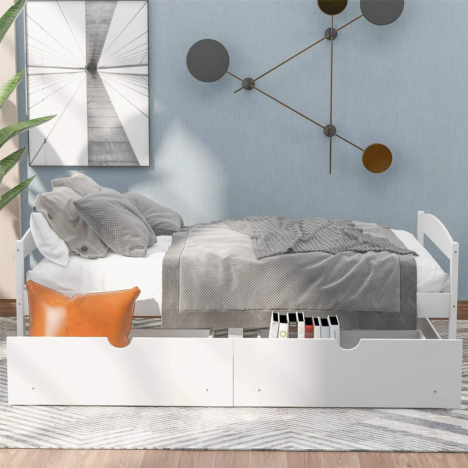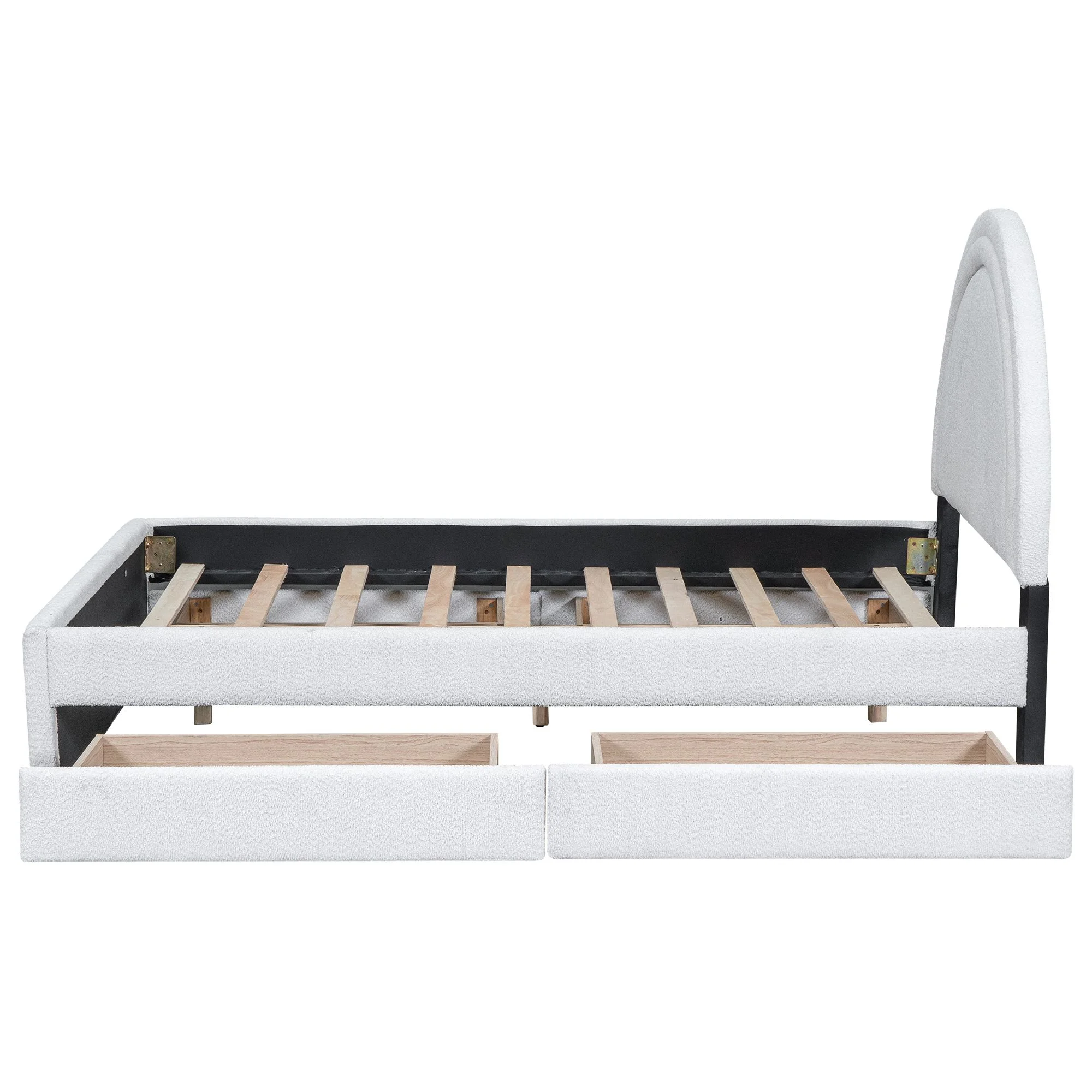 Platform Bed With Two Drawers/Wood Daybed Frame/Wood Slat Support/No Box Spring Needed/Easy Assembly, White