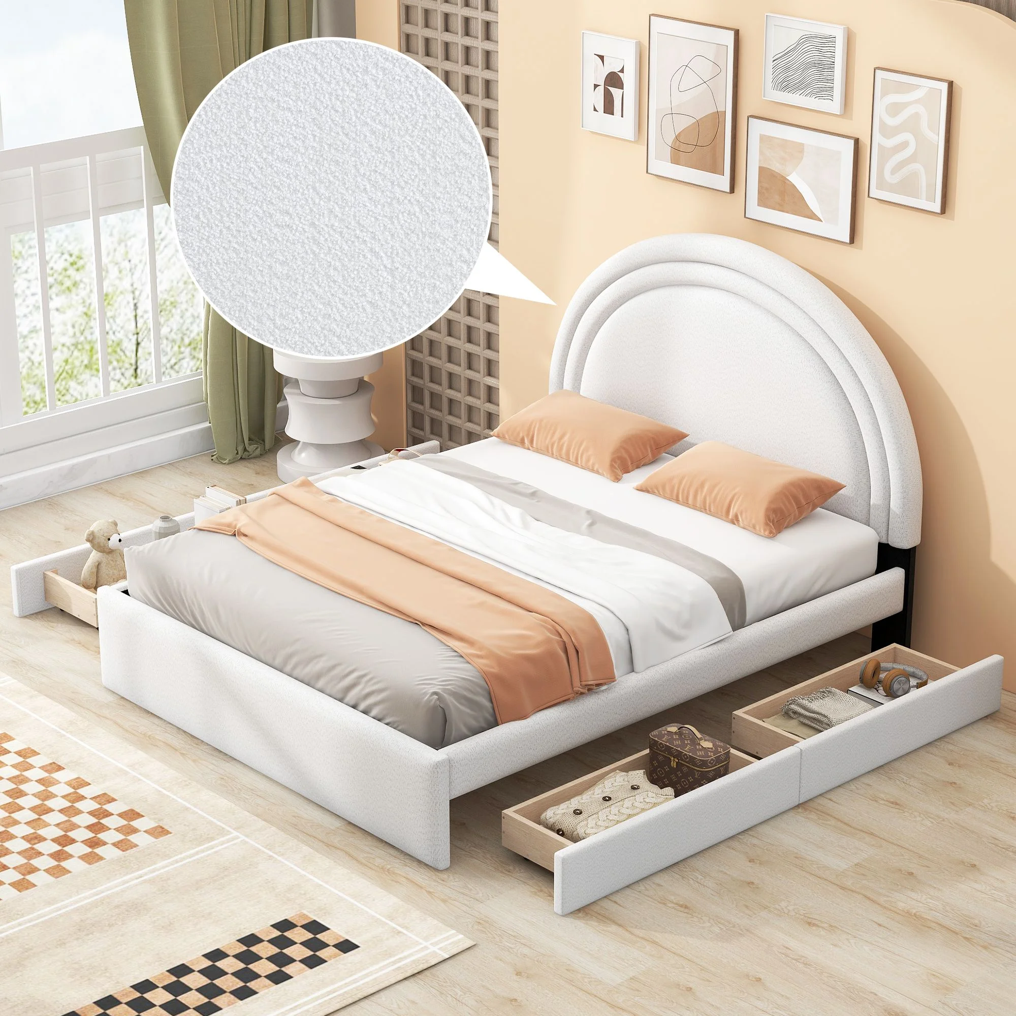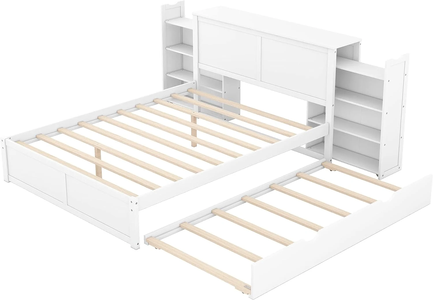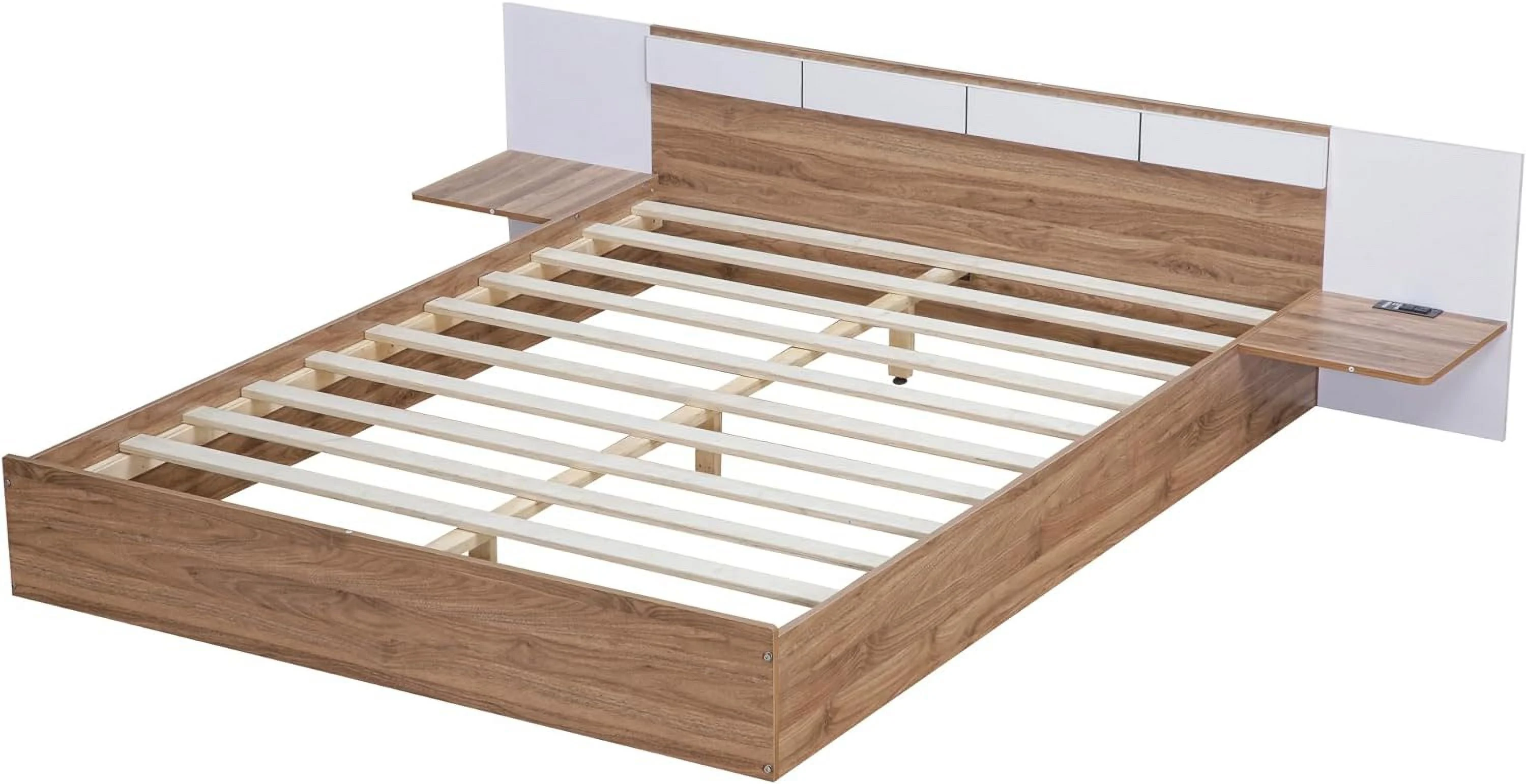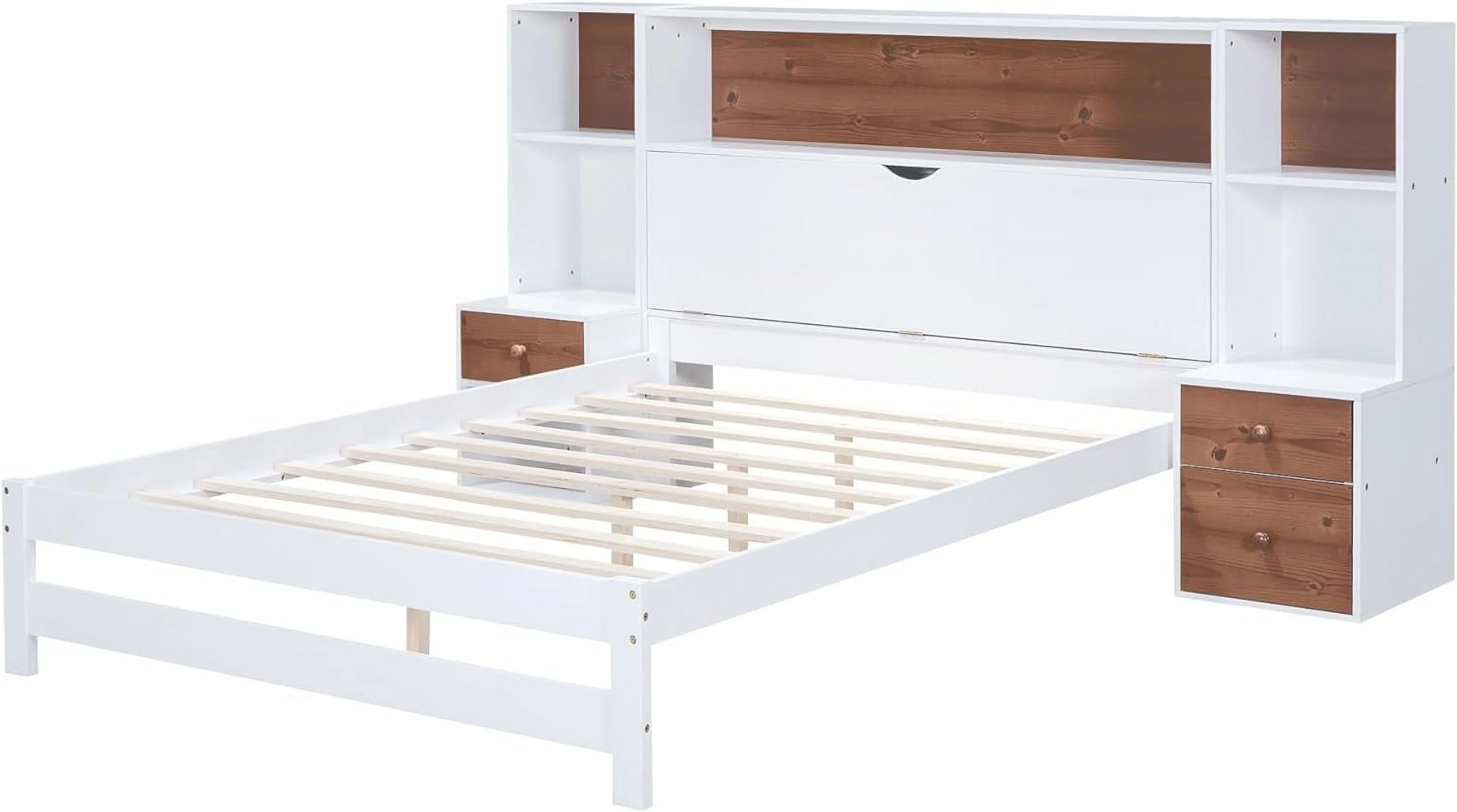 Platform Bed With Two Drawers/Wood Daybed Frame/Wood Slat Support/No Box Spring Needed/Easy Assembly, White