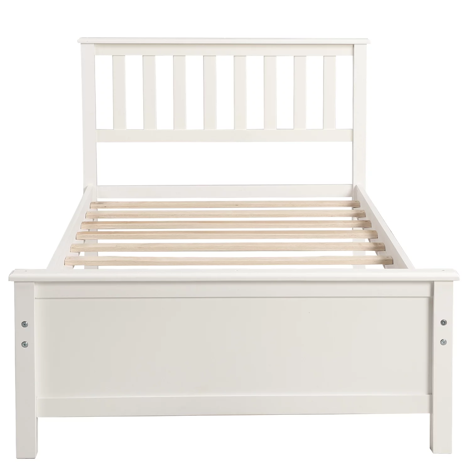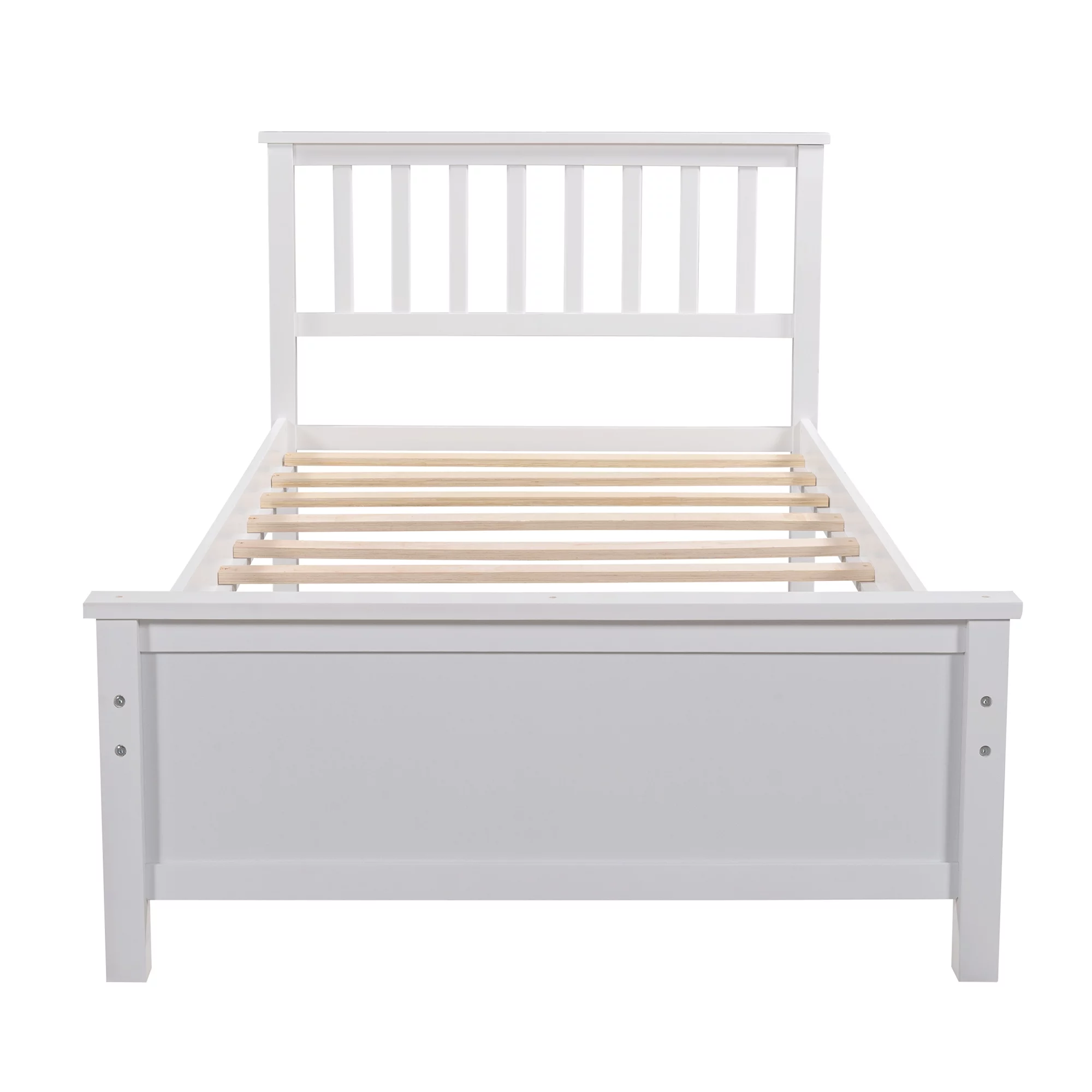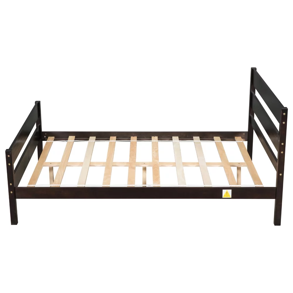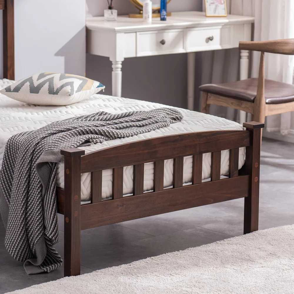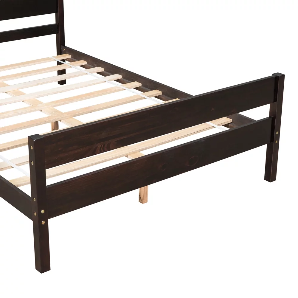 Solid Wood Twin Size Bed Wood Platform Bed with Headboard, Footboard and Wood Slat Support No Box Spring Needed