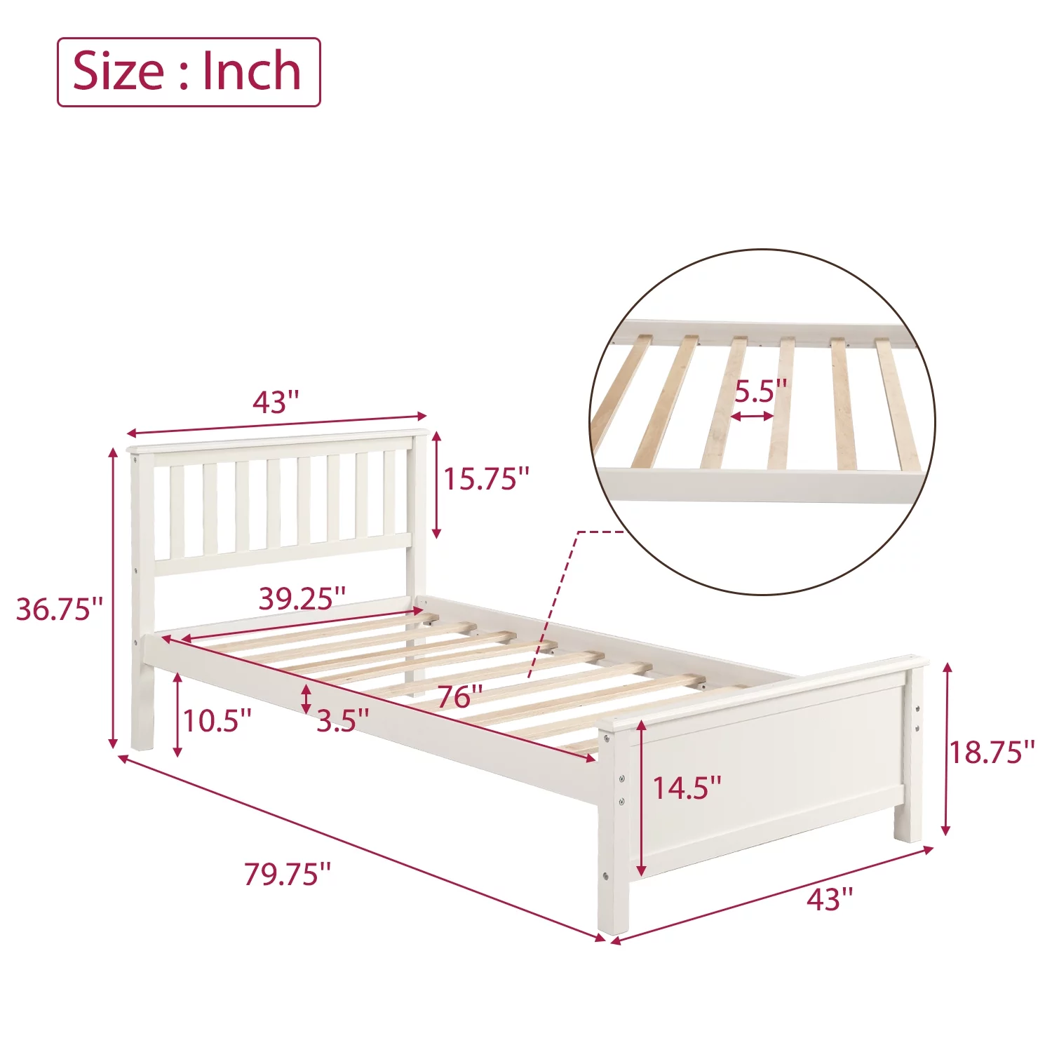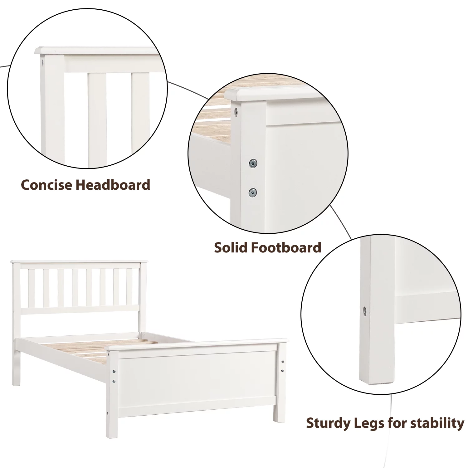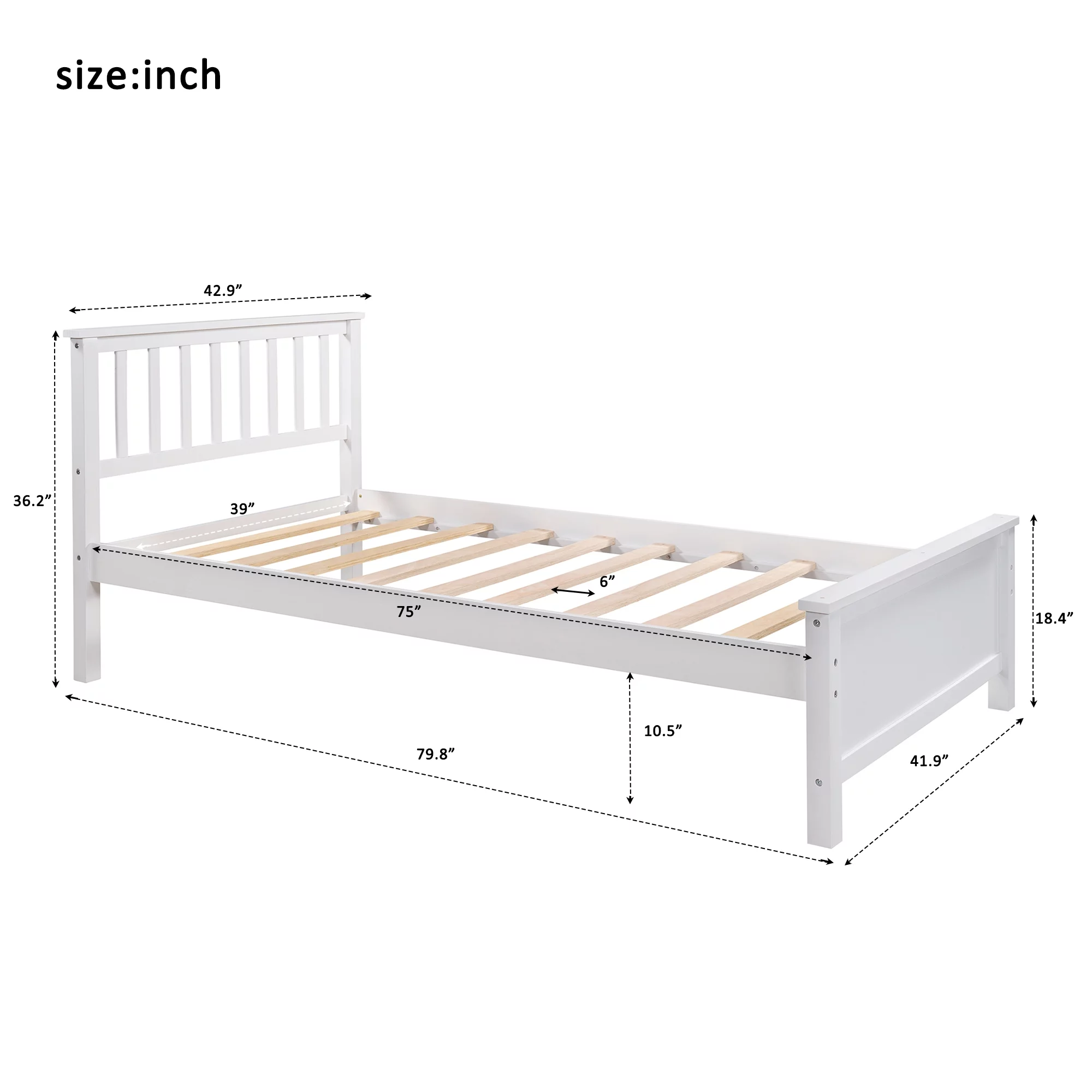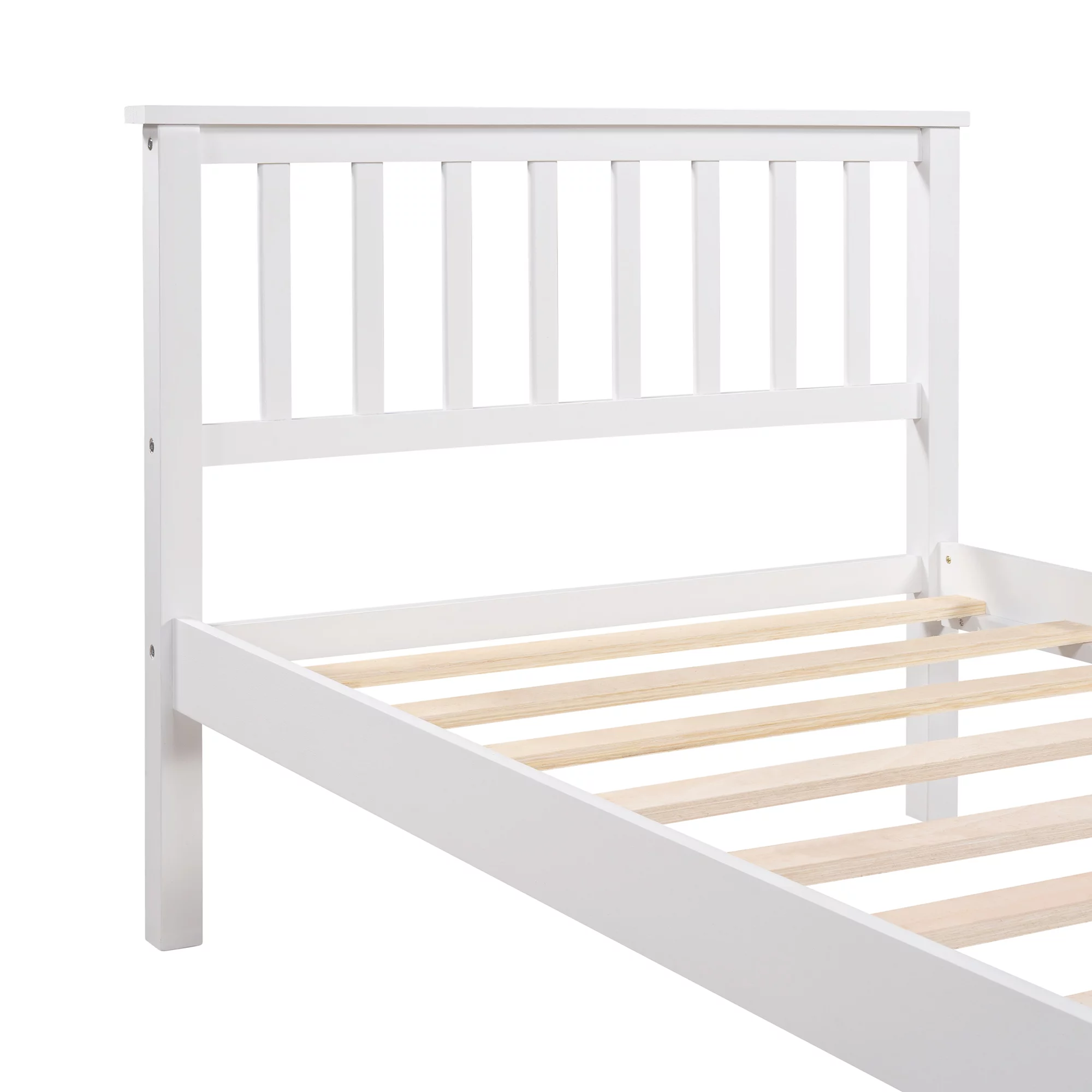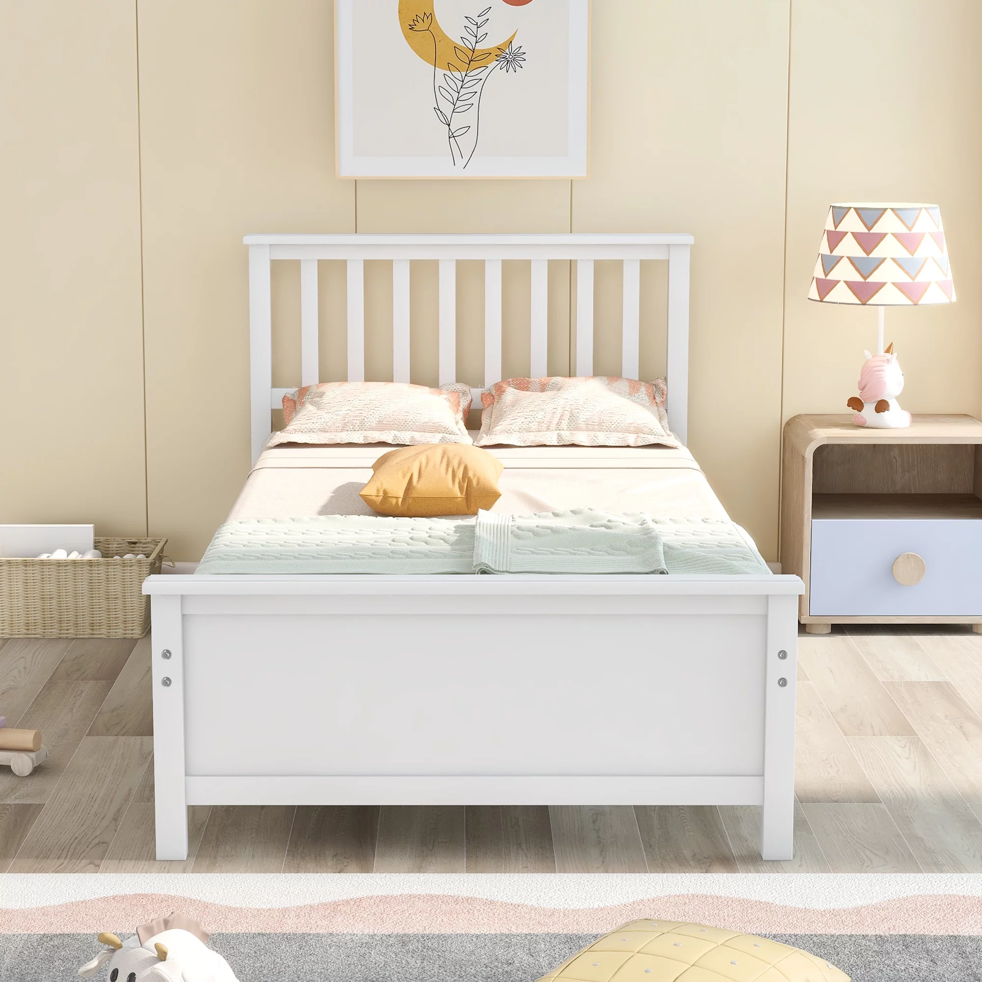 Solid Wood Twin Size Bed Wood Platform Bed with Headboard, Footboard and Wood Slat Support No Box Spring Needed