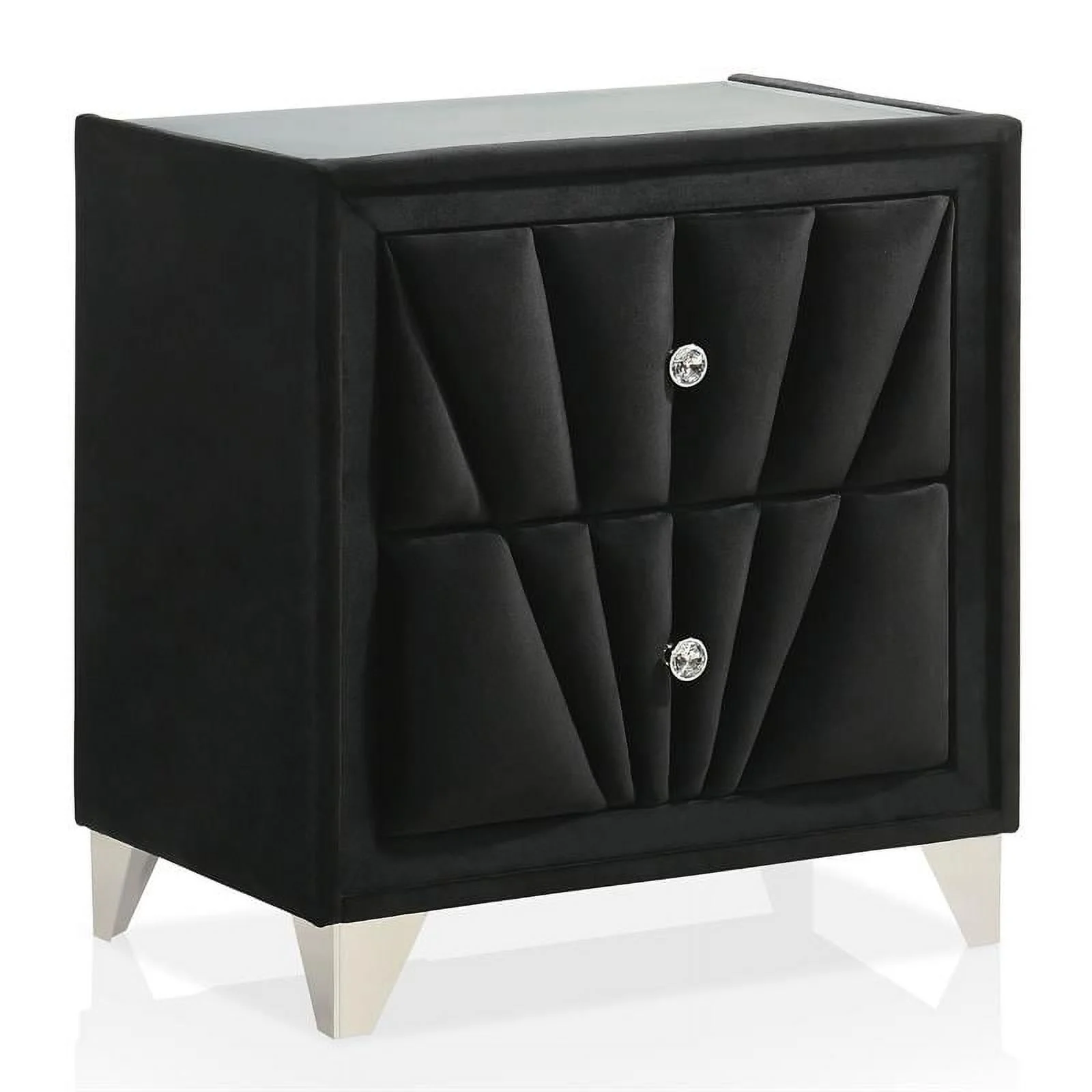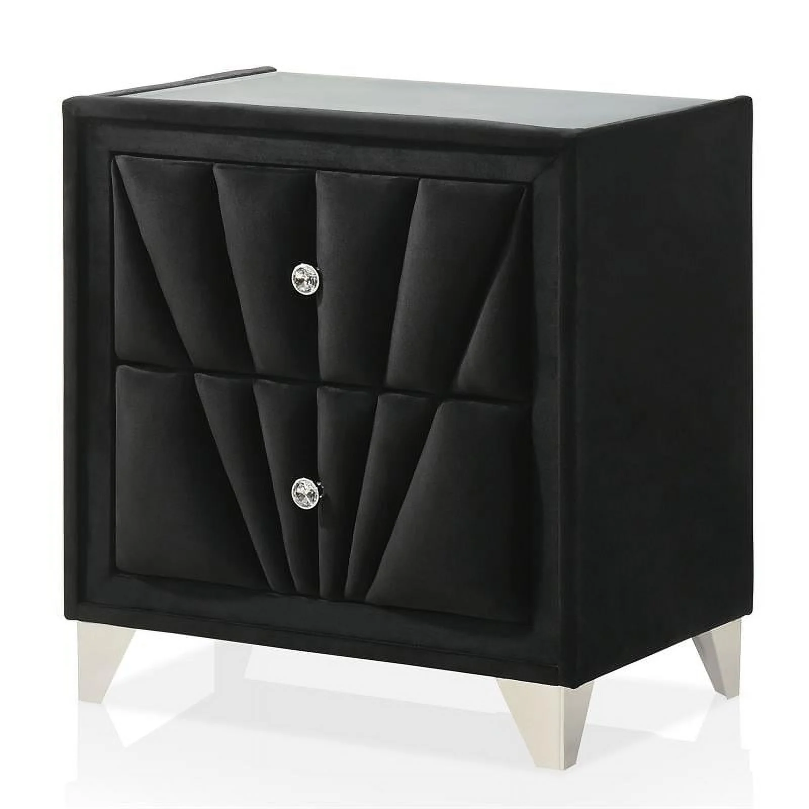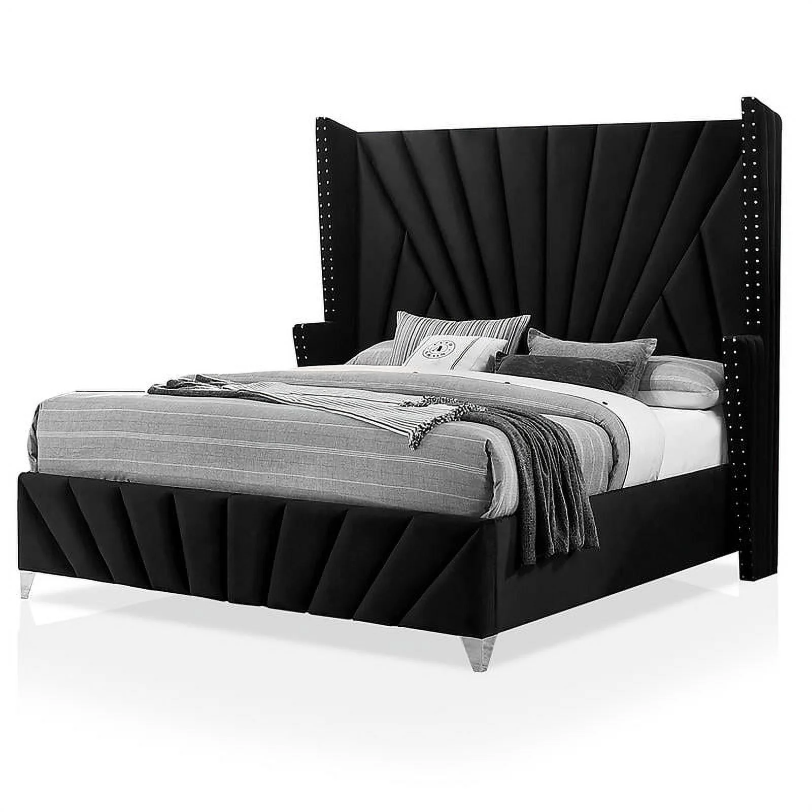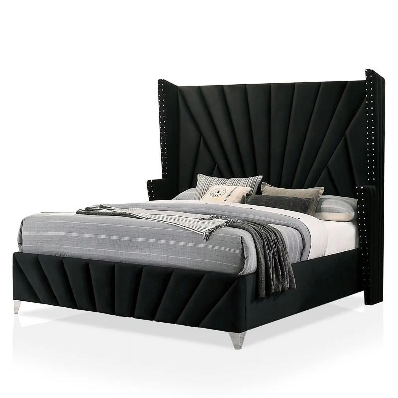 FOA Sakan 6pc Black Fabric Bed Set-Queen+2 Nightstands+Chest+Dresser+Mirror