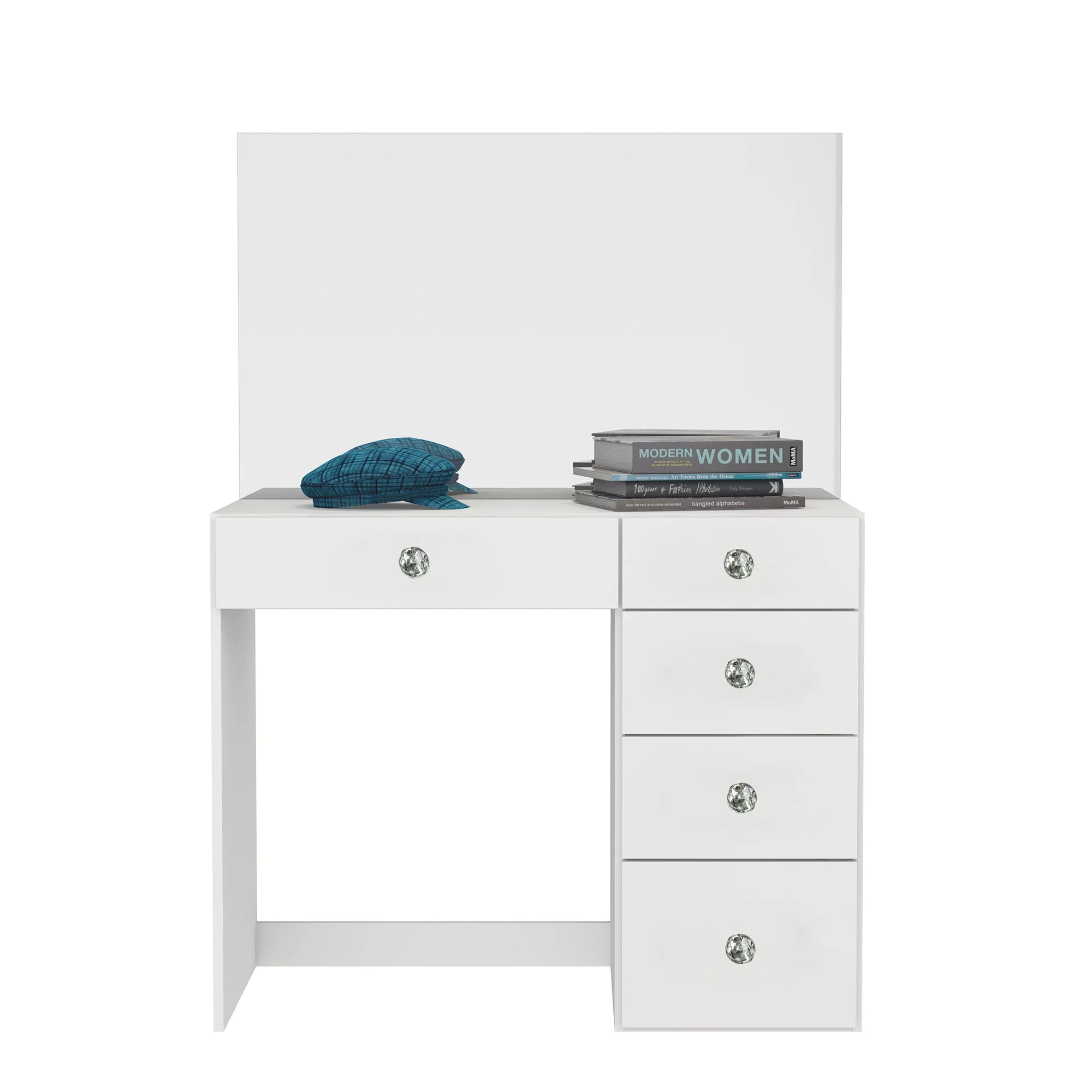 Boahaus Kira PRO Modern Makeup Vanity, 5 Drawers, Mirror, Crystal Knobs, White, for Bedroom