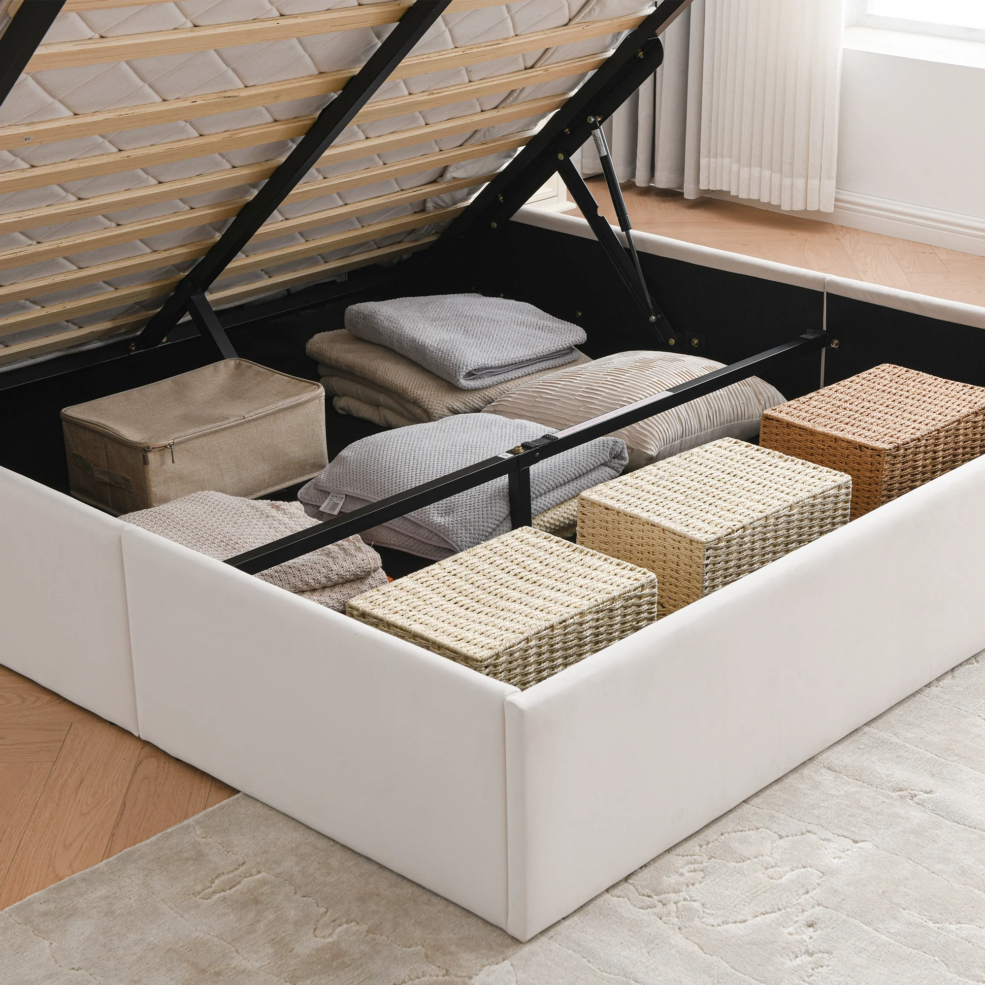 Home Square 4-Piece Set with Queen Storage Bed 6-Drawer Chest & 2 Nightstands