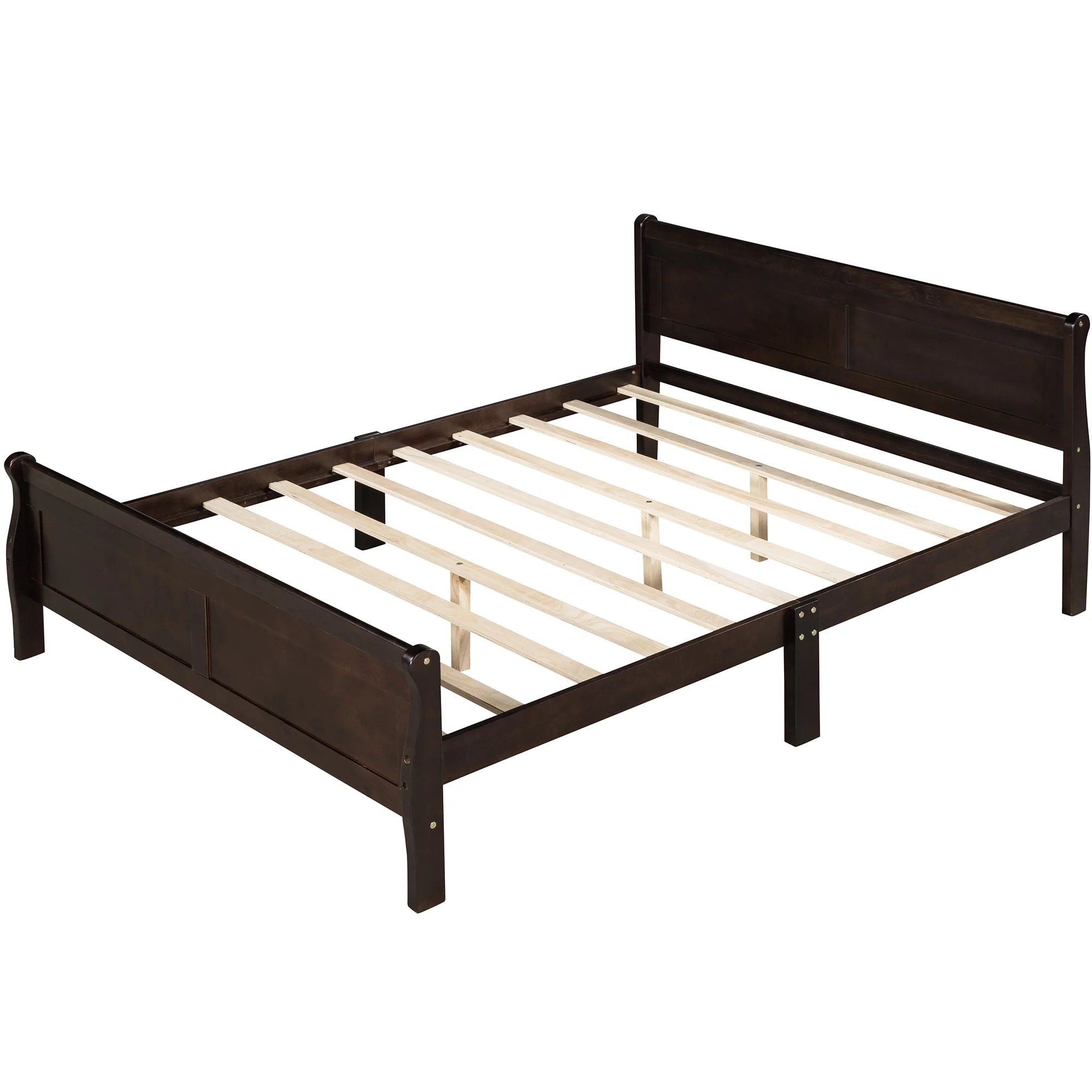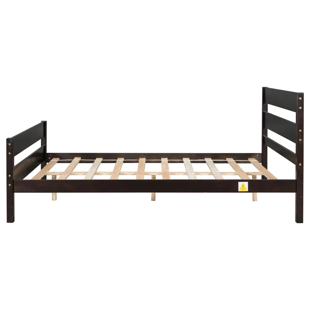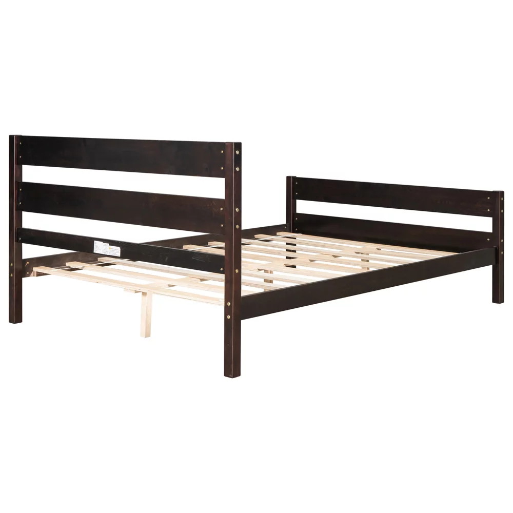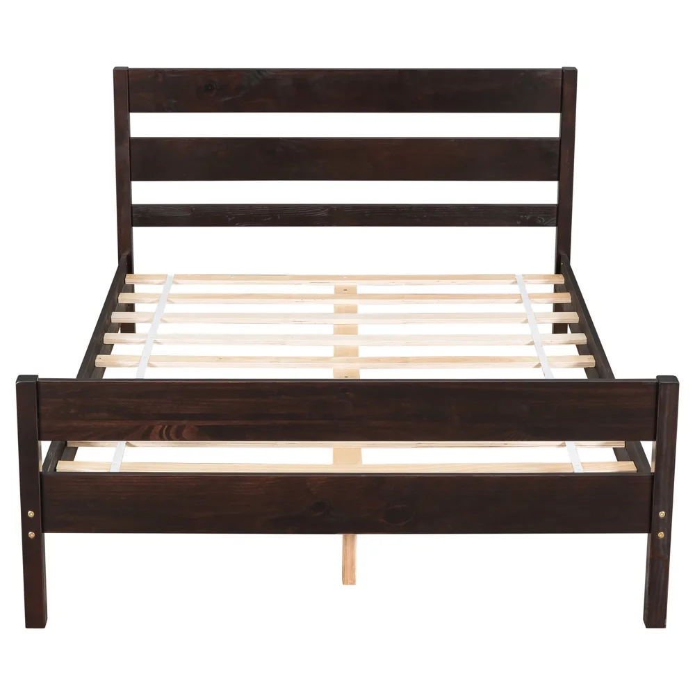 Full Size Wood Platform Bed with Headboard No Box Spring Needed Wood Slat Support