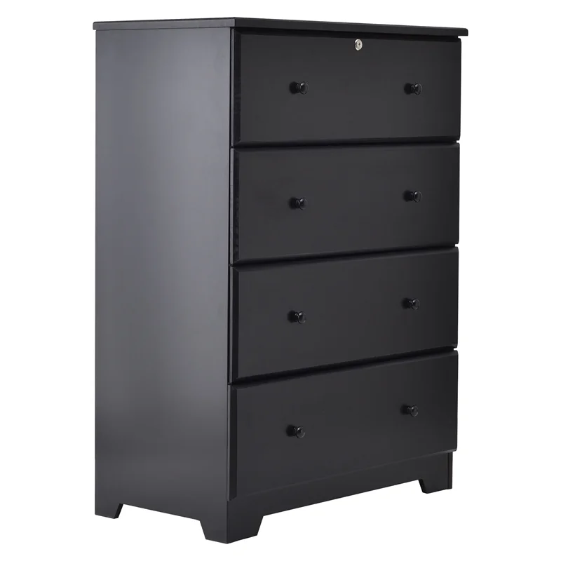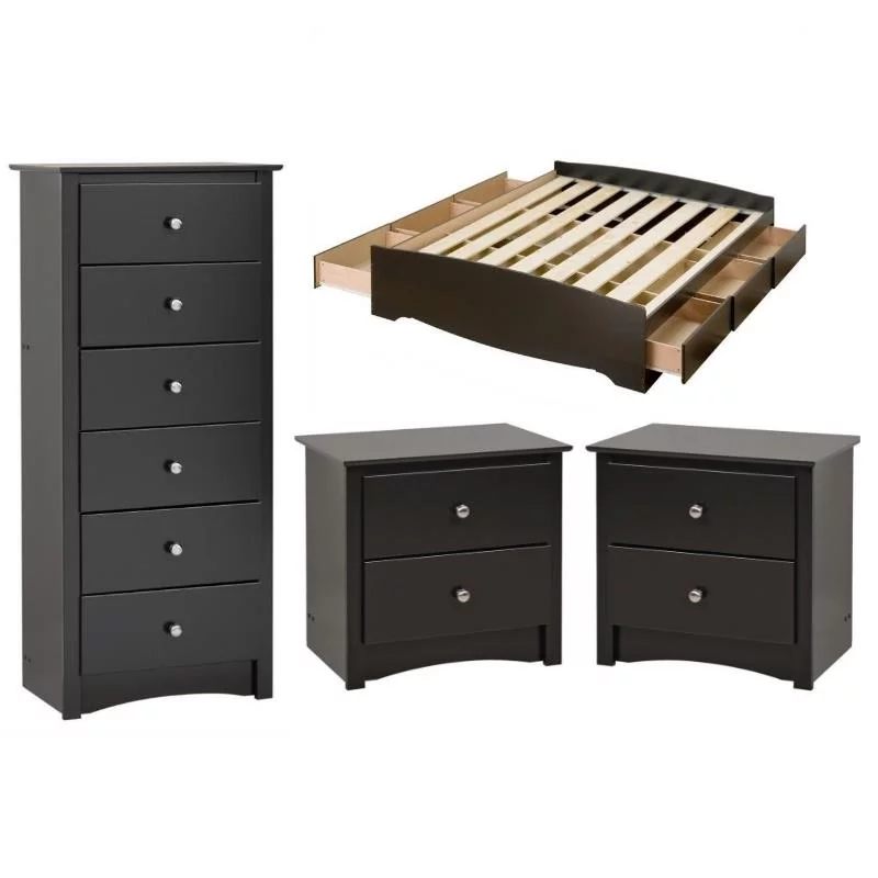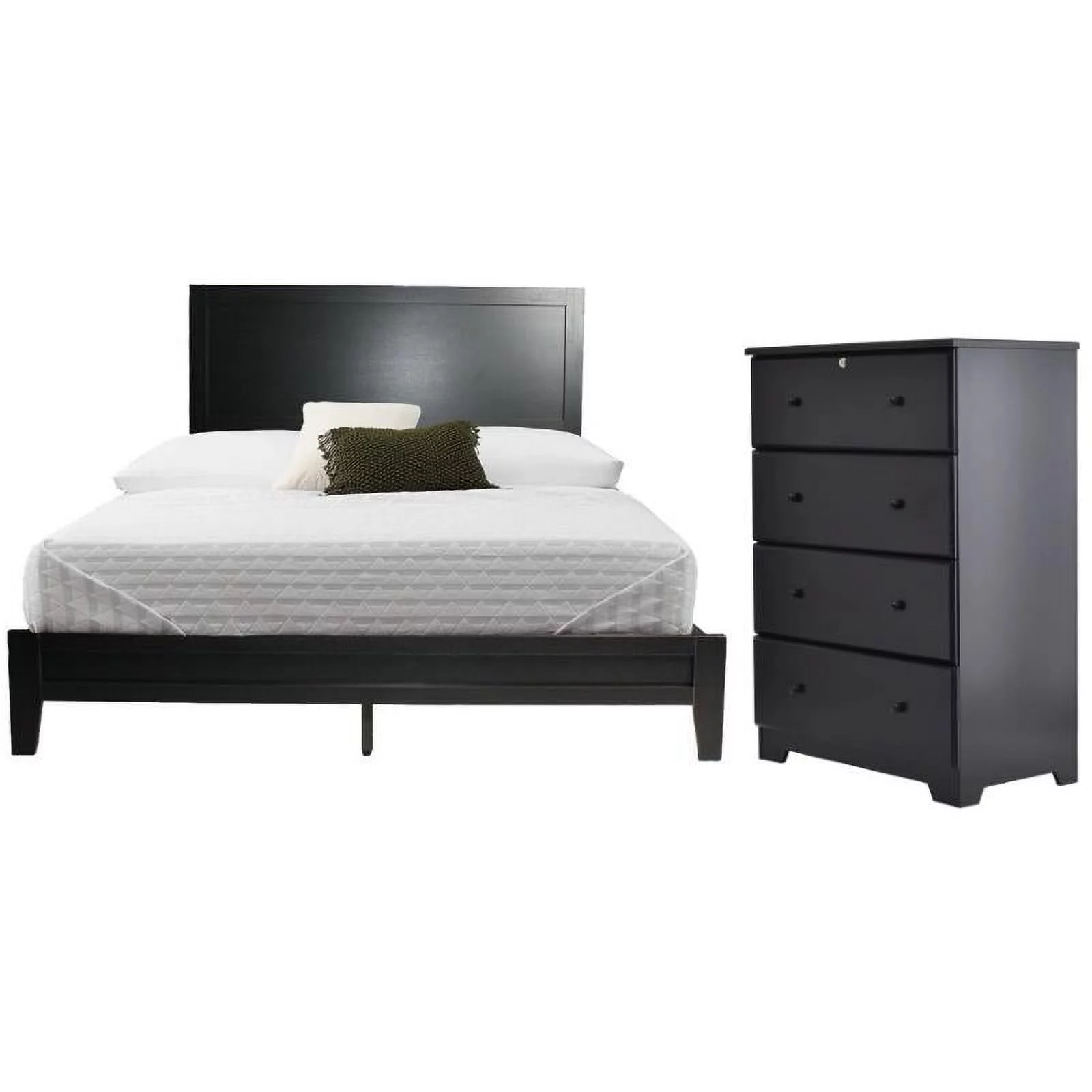 Home Square 2-Piece Set with Queen Platform Bed 4-Drawer Chest Dresser in Black