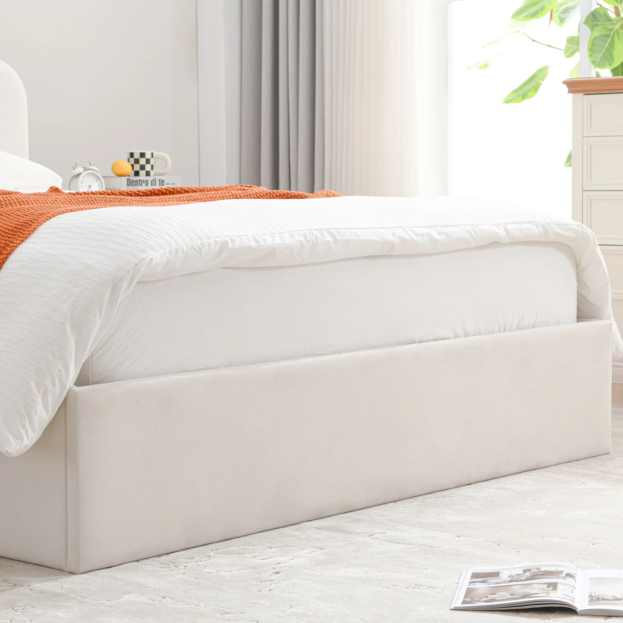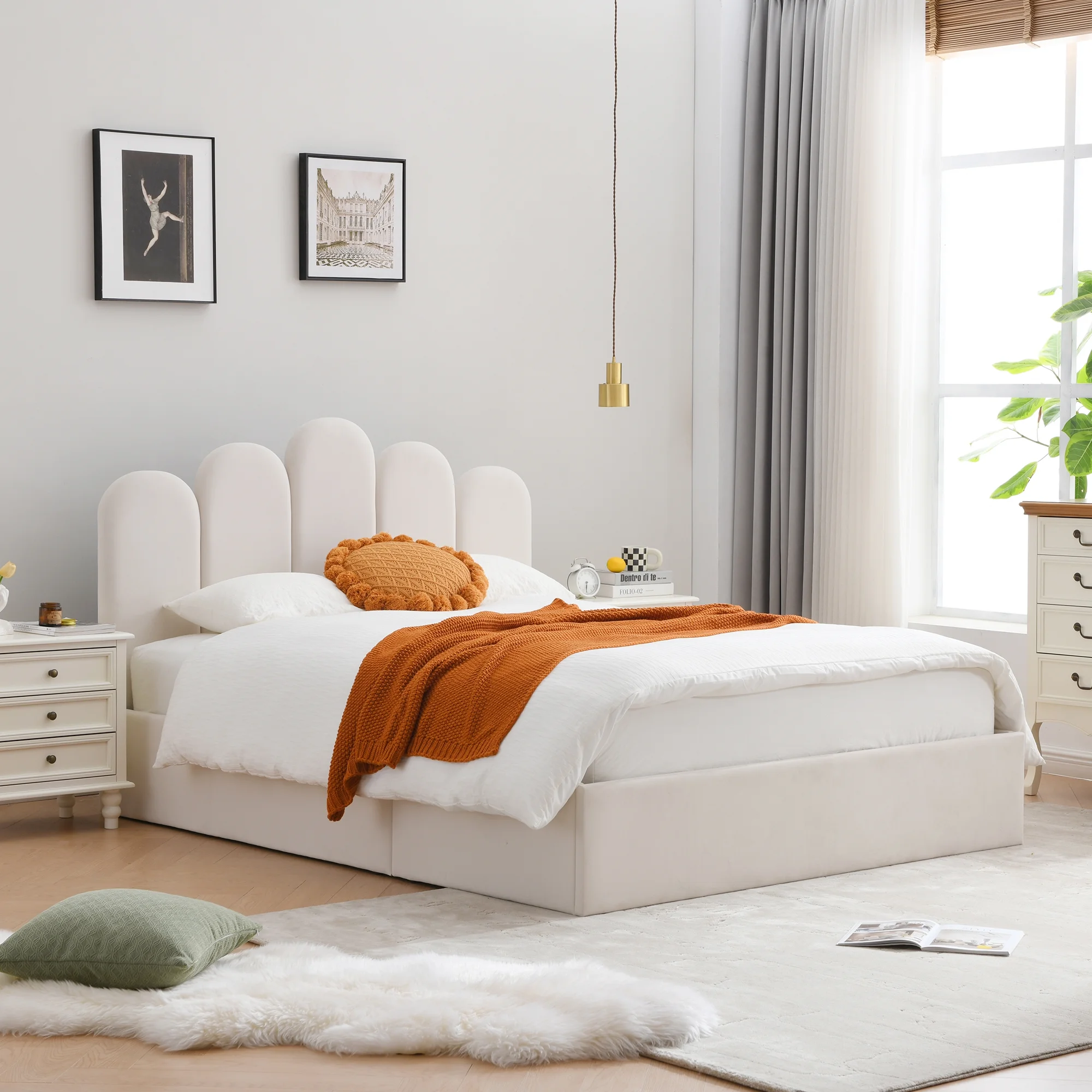 Traditional Cherry Veneer 6pc Bedroom Furniture Queen Size Bed Storage FB Dresser Mirror 2x Nightstands Chest