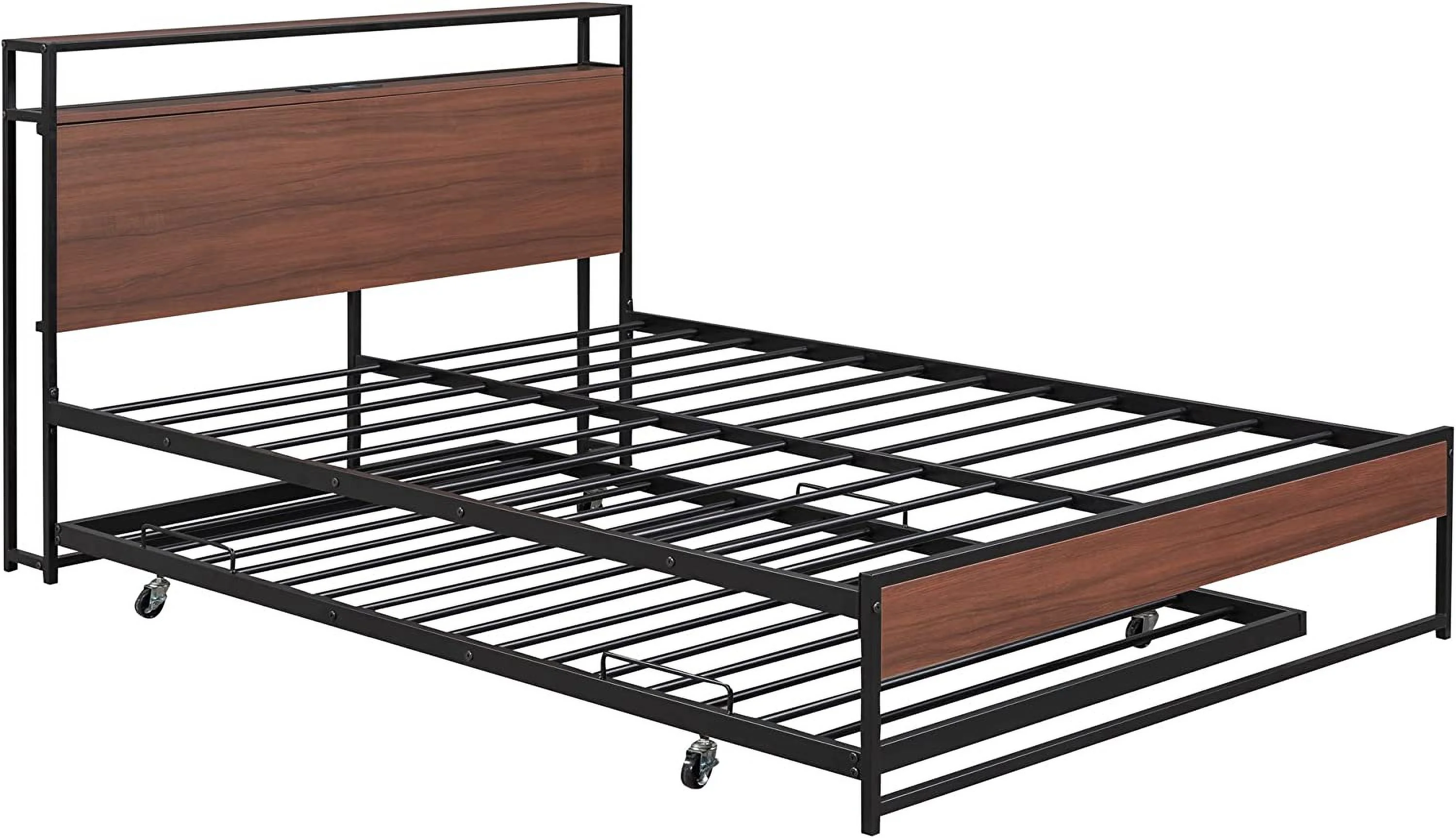 Wood Platform Bed Frame Twin Size with Headboard and Footboard No Box Spring Needed for Boys Girls, Walnut