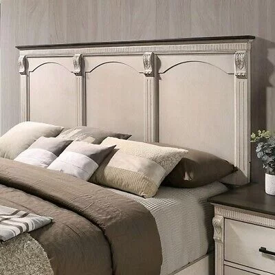 Cal King Size Bed 1pc Antique White Walnut Fluted Panels Headboard Footboard Bedroom Furniture Two Tone Solid wood Contemporary