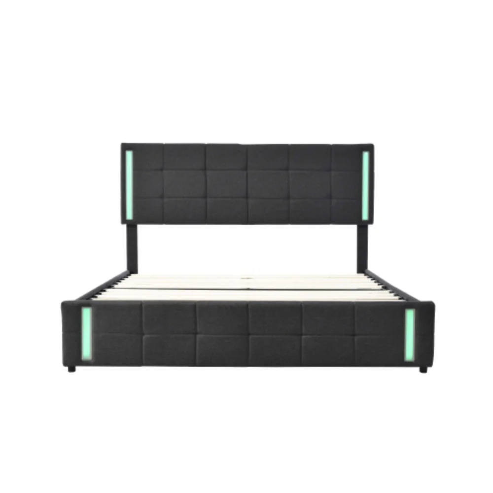 Queen Size Upholstered Platform Bed with LED Lights and USB Charging, Storage Bed with 4 Drawers, Gray(Linen)