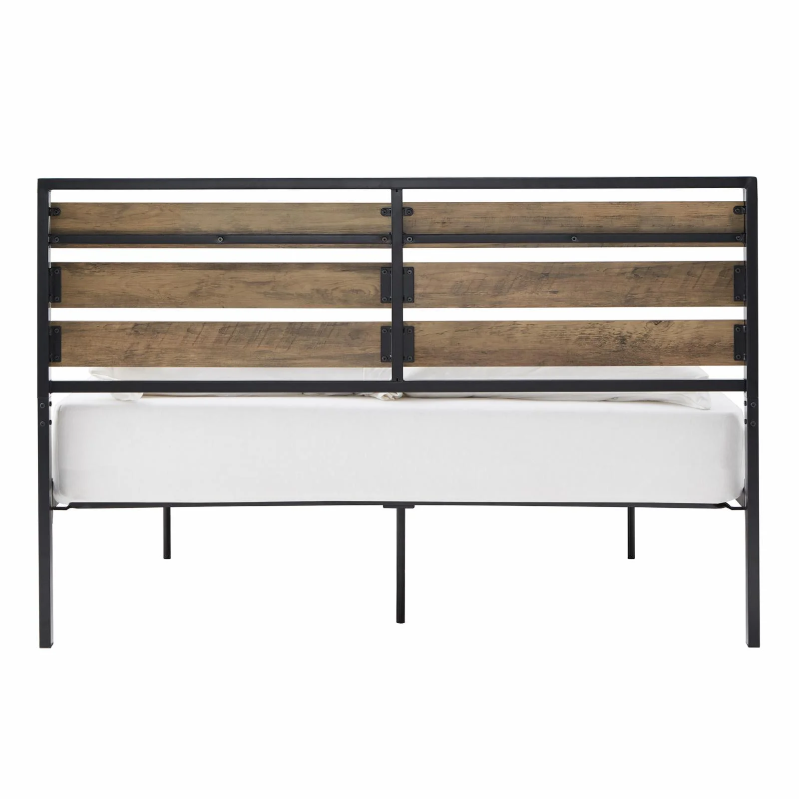 Weston Home Aabir Low Profile Metal and Wood Platform Queen Bed, Brown/Black