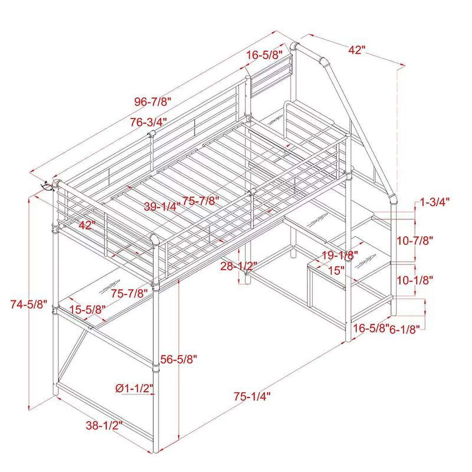 Furniture of America Pico Metal Twin Loft Bed with Workstation in Sand Black