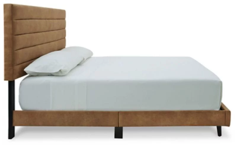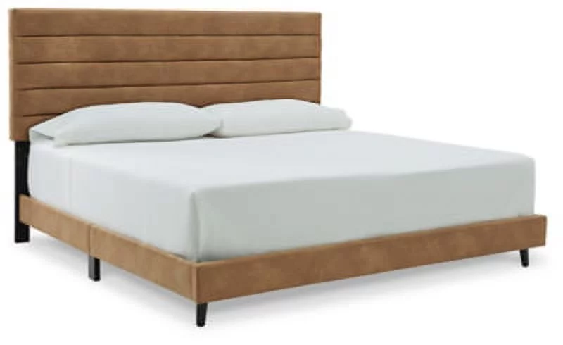 Signature Design by Ashley Vintasso Modern Upholstered Headboard, Footboard, & Roll Slats Bed, King, Light Brown