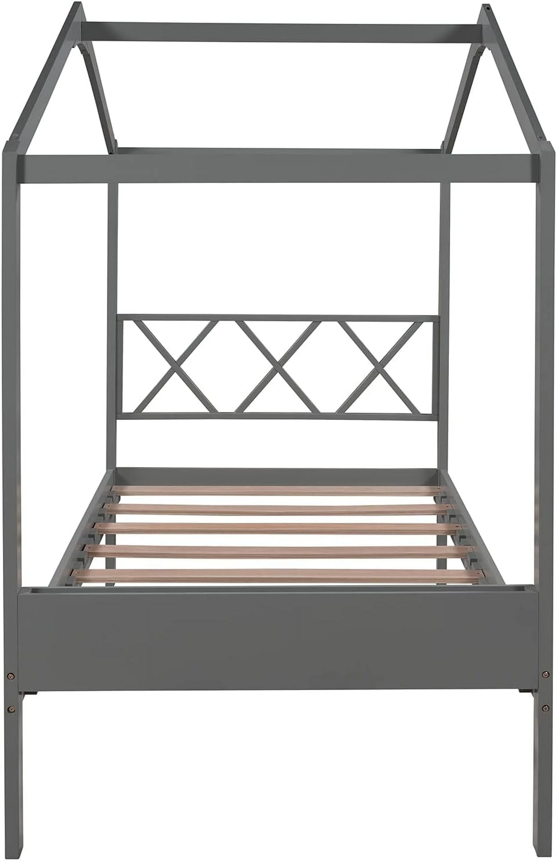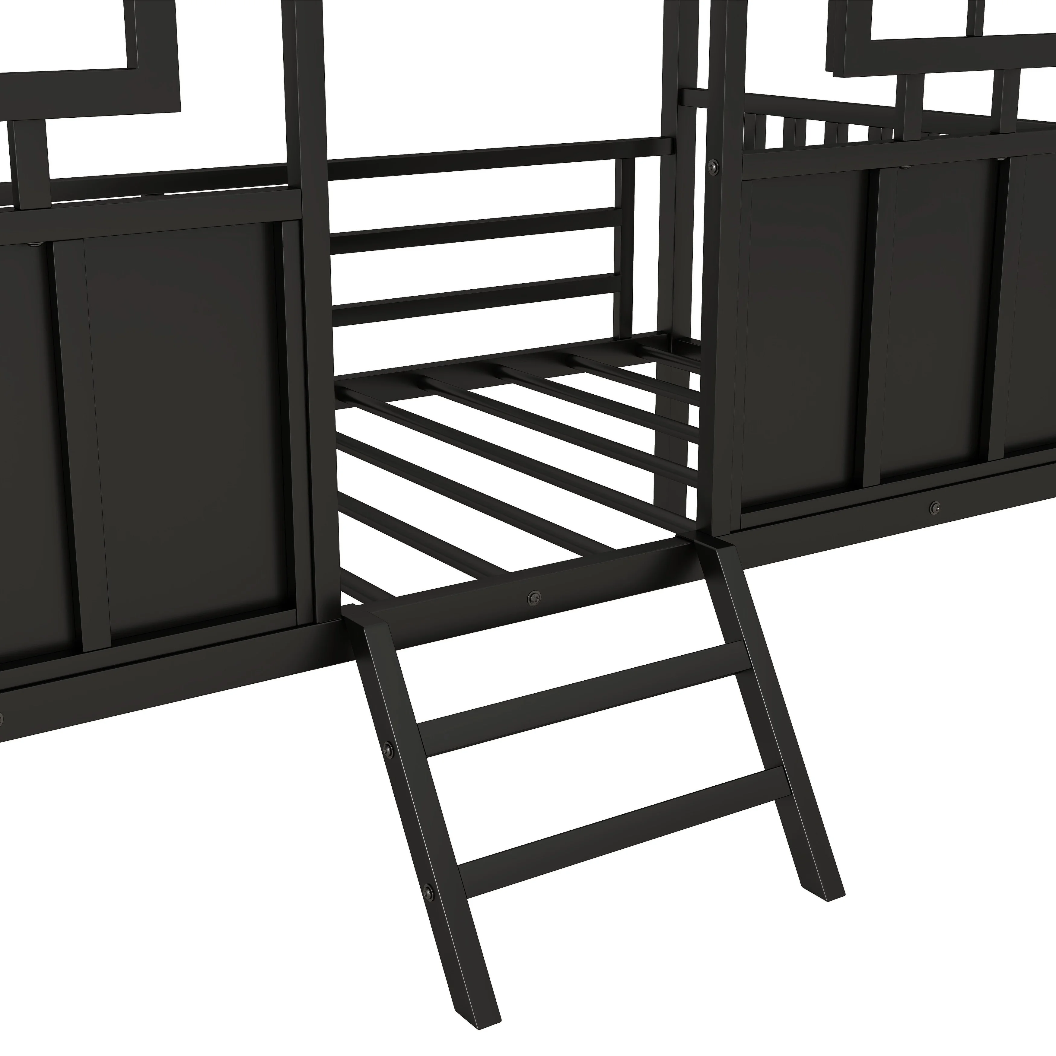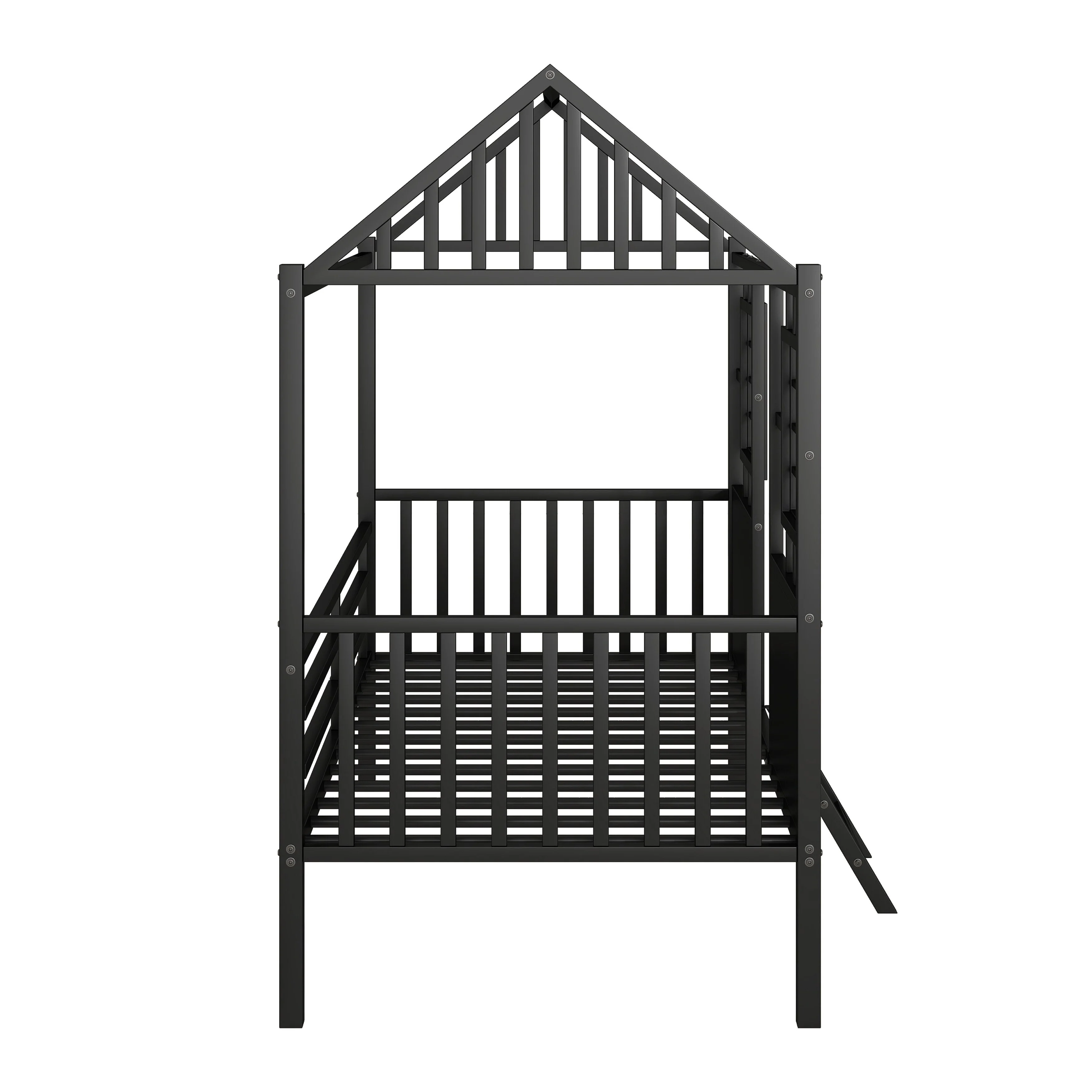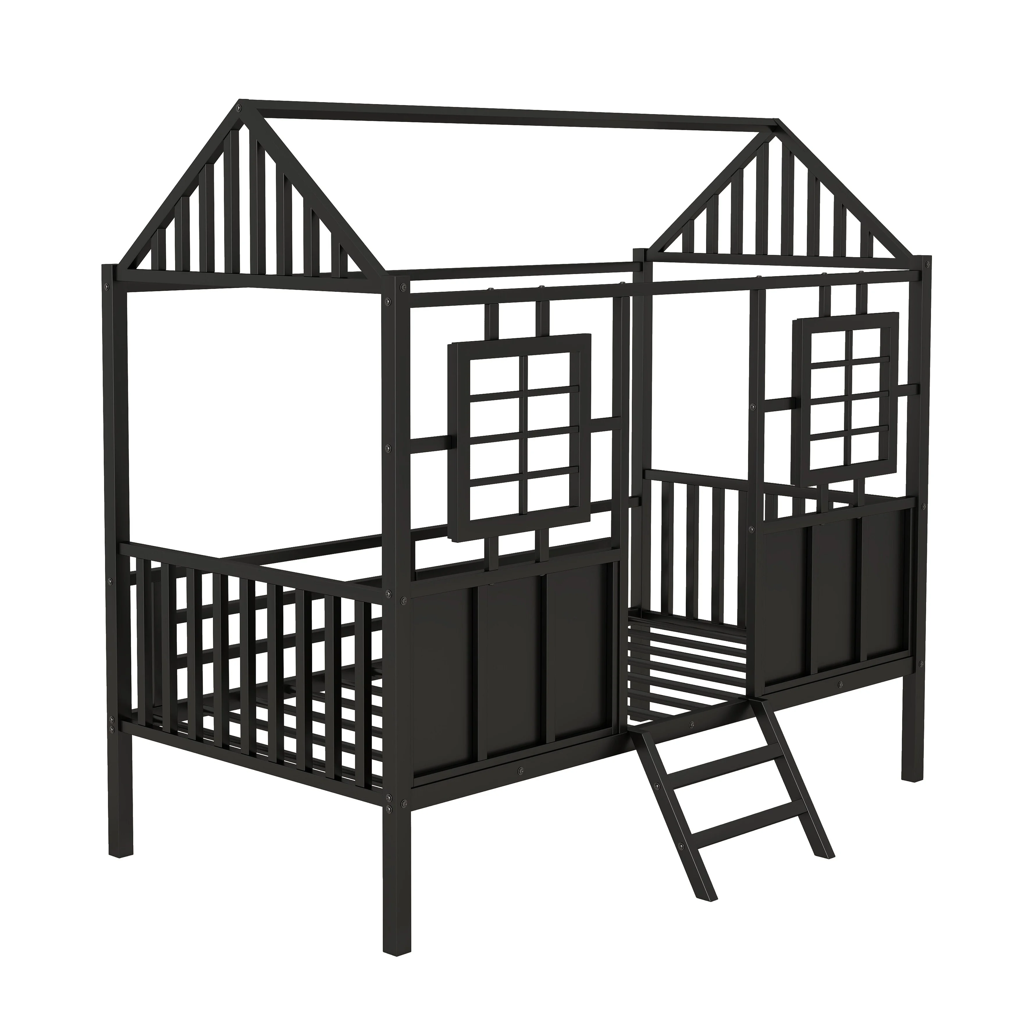 Nestfair Twin Size Metal Low Loft Bed with Roof and Two Front Windows White - Twin