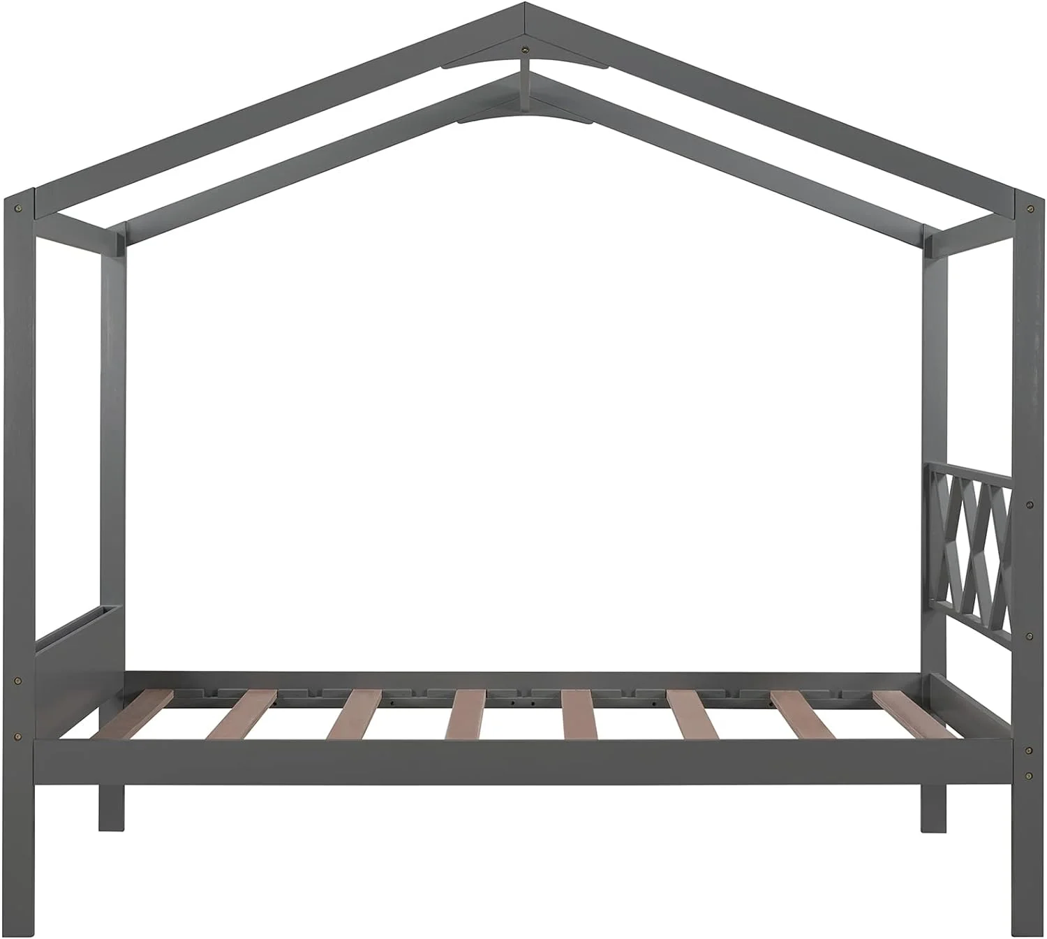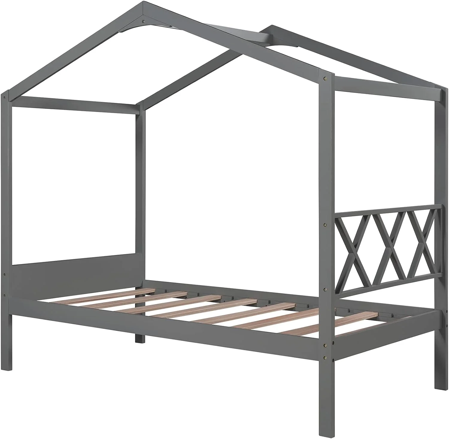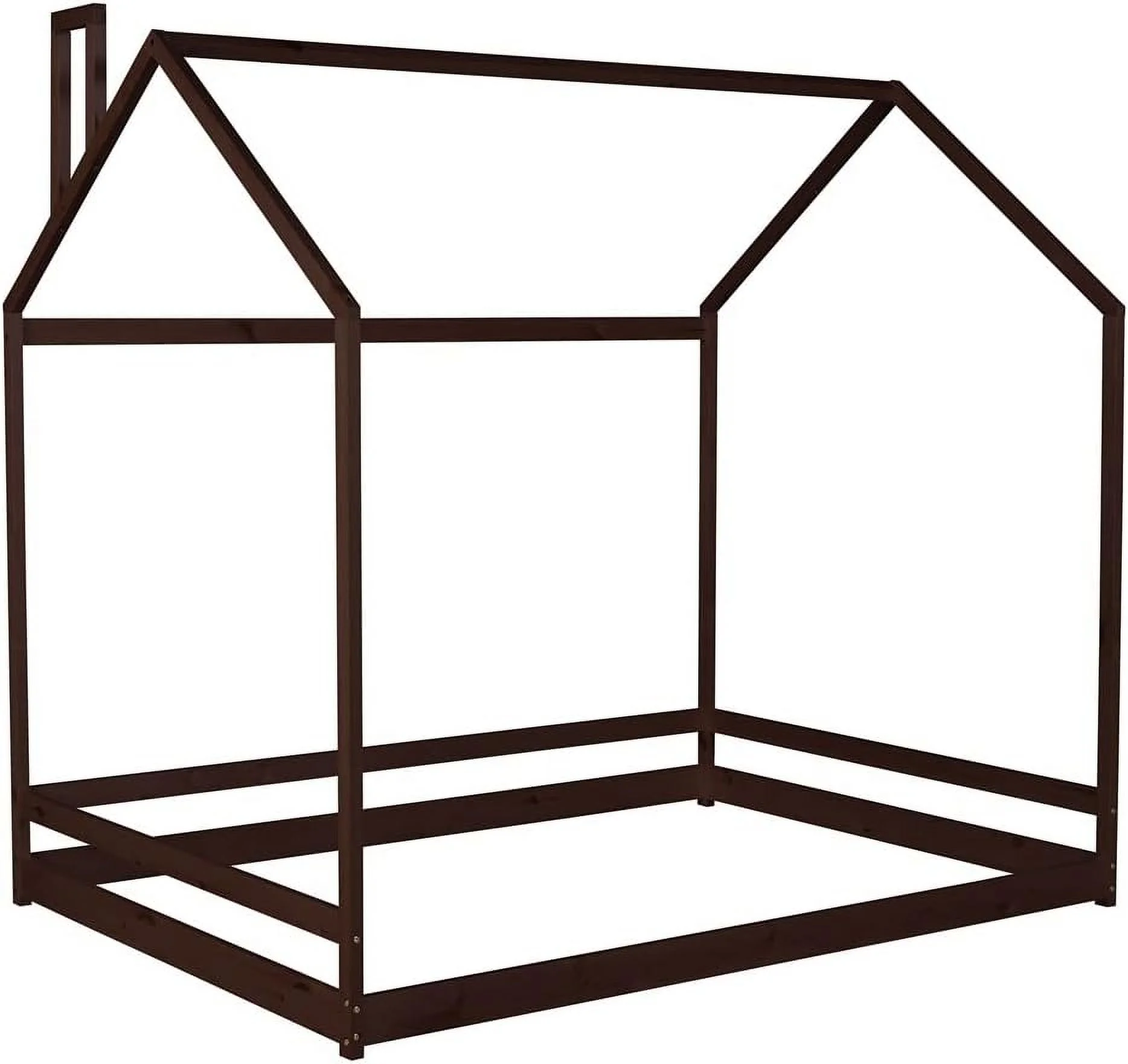 Nestfair Twin Size Metal Low Loft Bed with Roof and Two Front Windows White - Twin