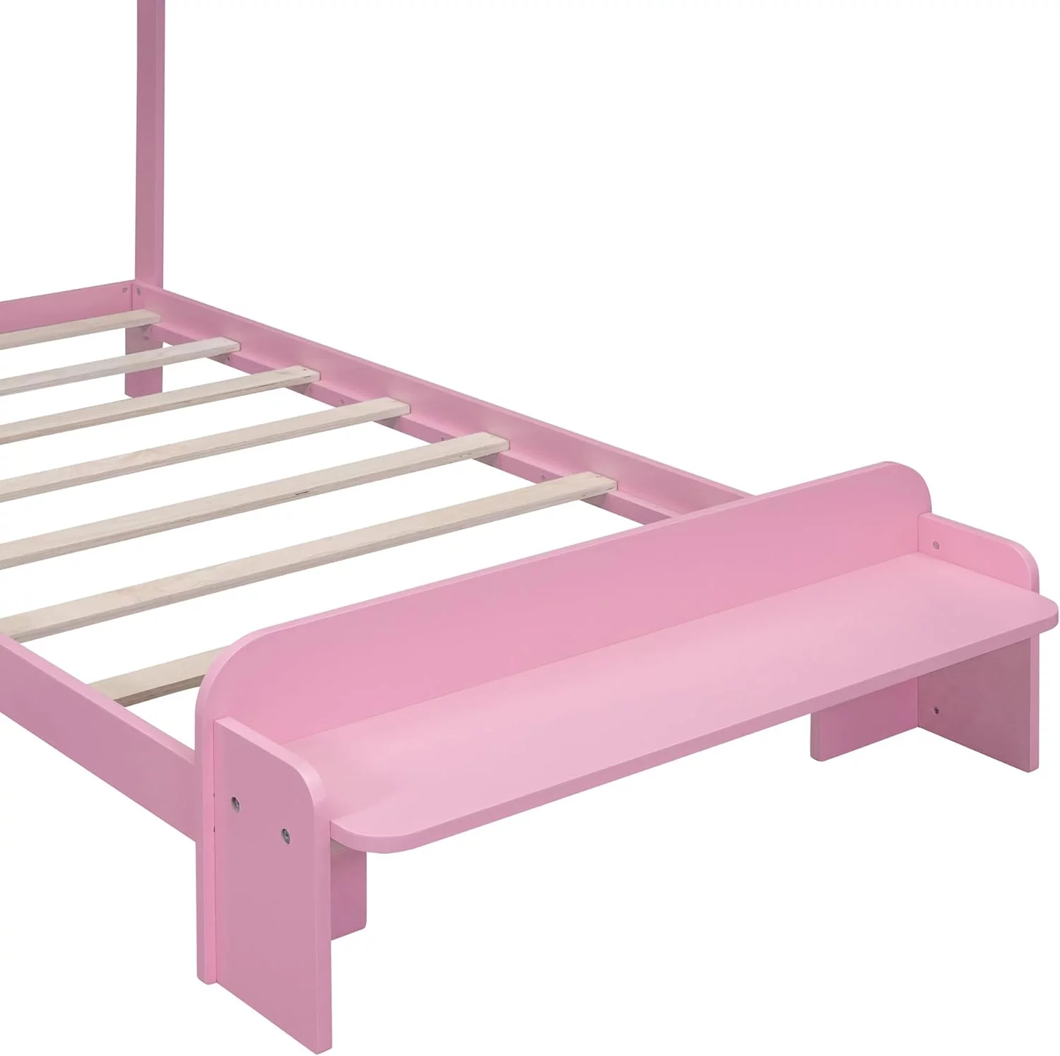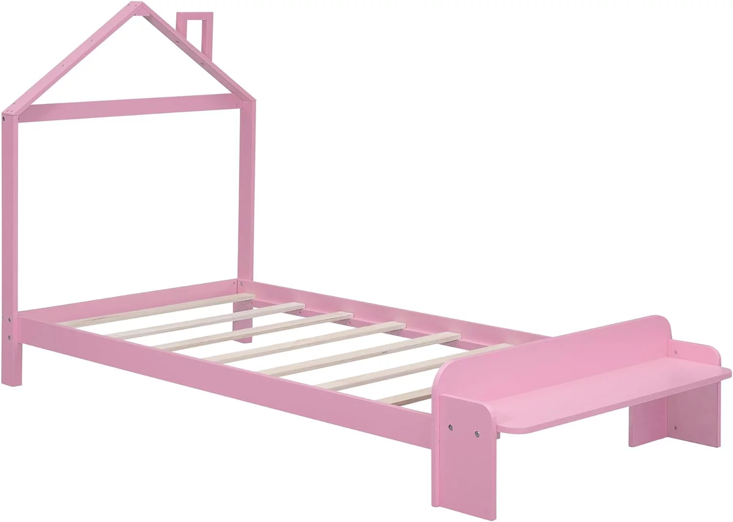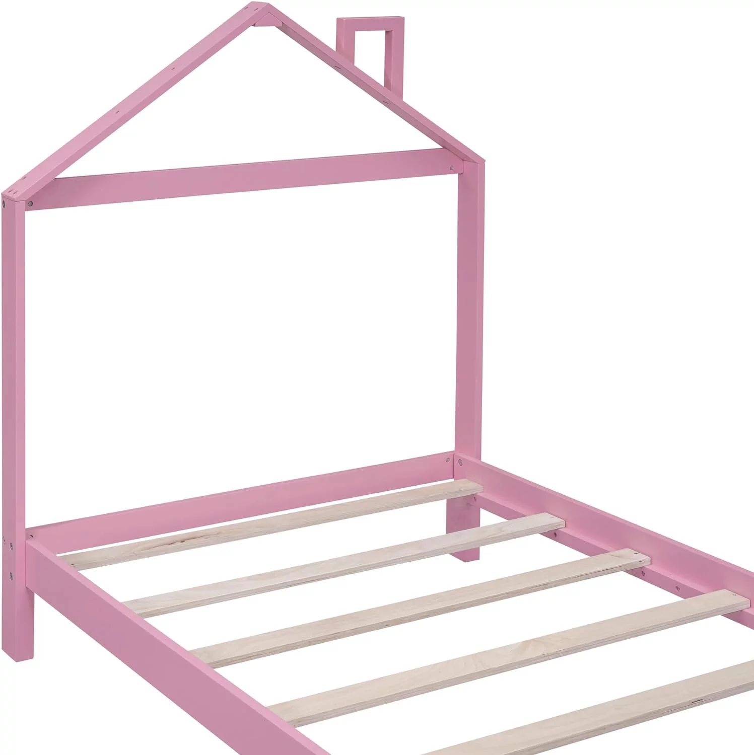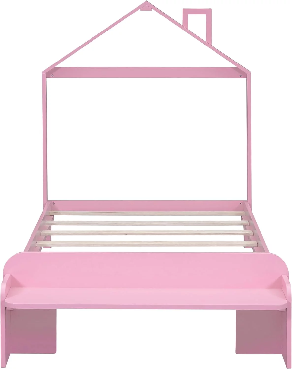 Nestfair Twin Size Metal Low Loft Bed with Roof and Two Front Windows White - Twin